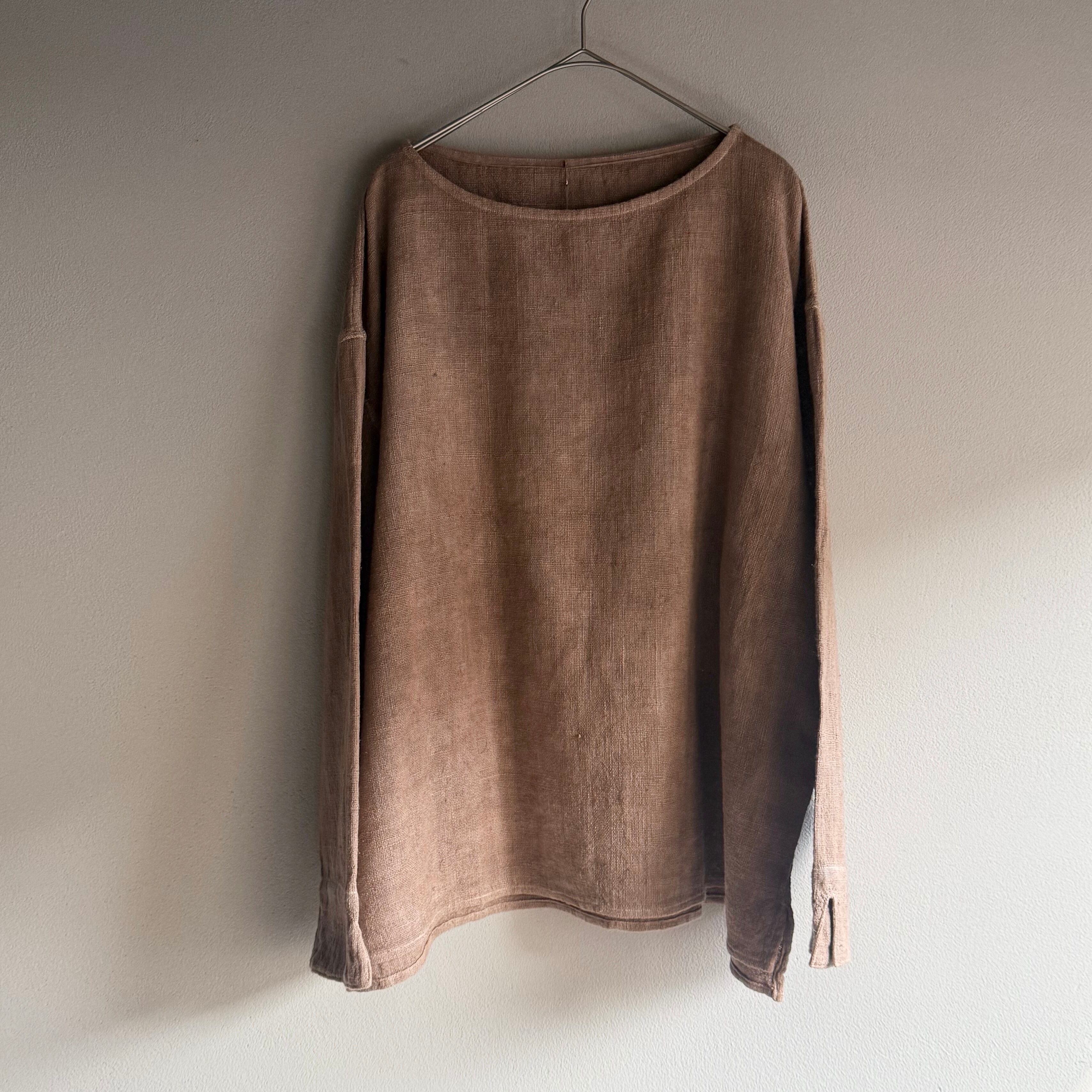 SNチャルカkalaコットン長袖プルオーバー(ベンガラ染)ベンガラ灰茶