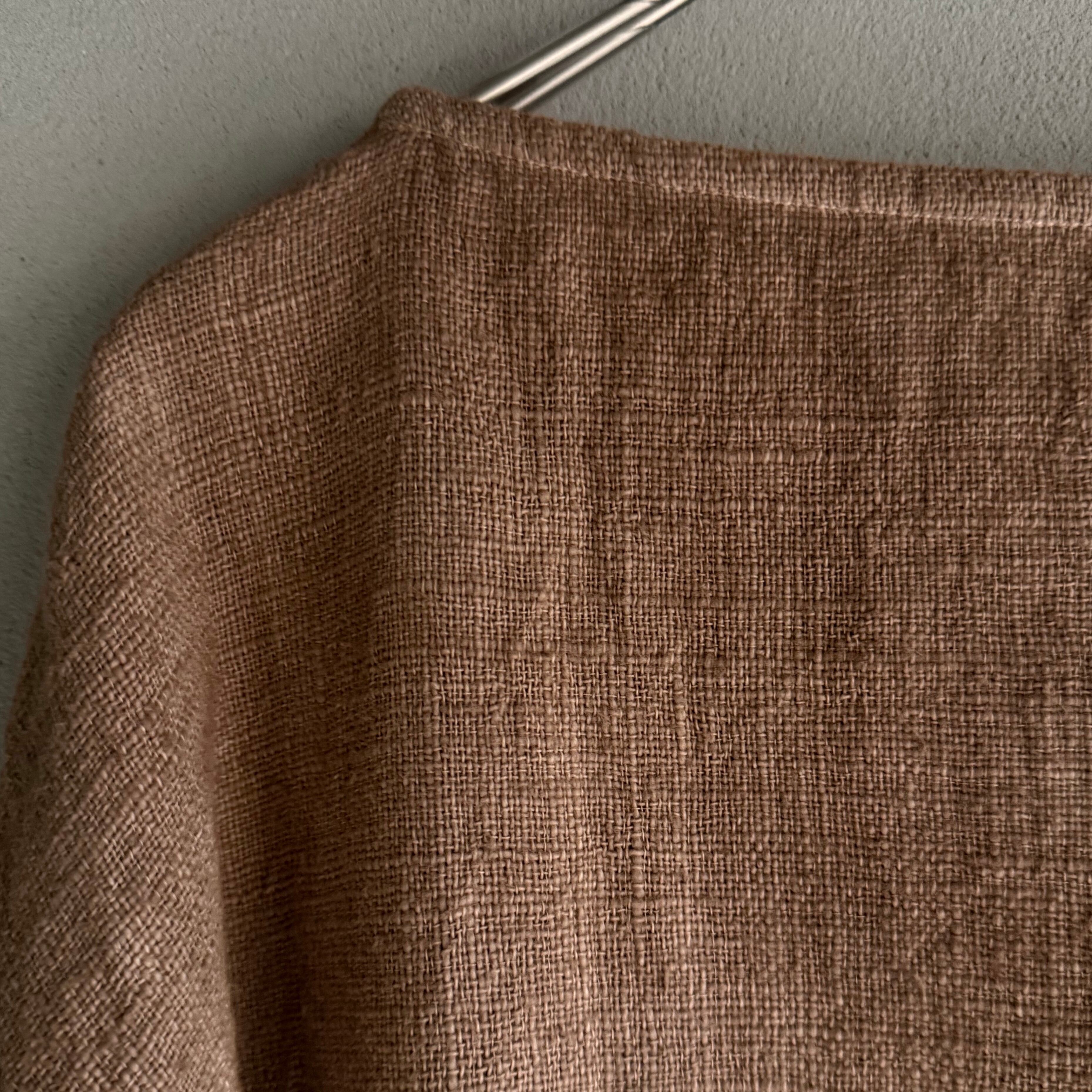 ※手織りの布を使用している為、サイズ感や風合いに個体差があります。織りくせ、糸の節、生じる毛玉などは表情の一部とお考えください。機械織りの生地より強度が低い為、過度の負担は避けてください。随時ケアのご相談も承っております。