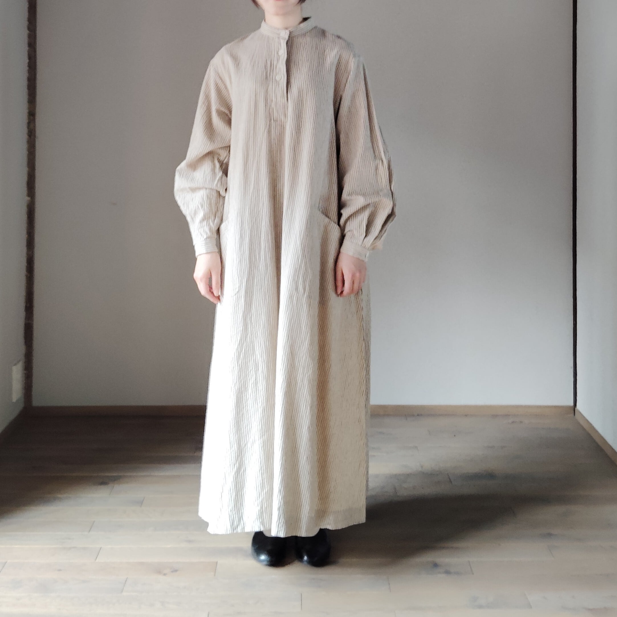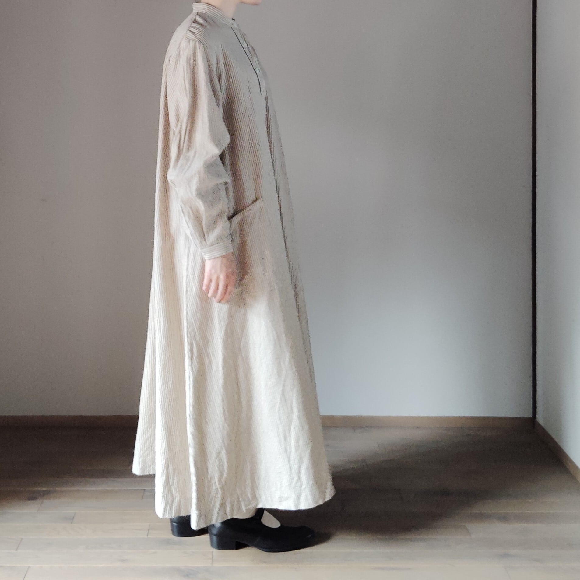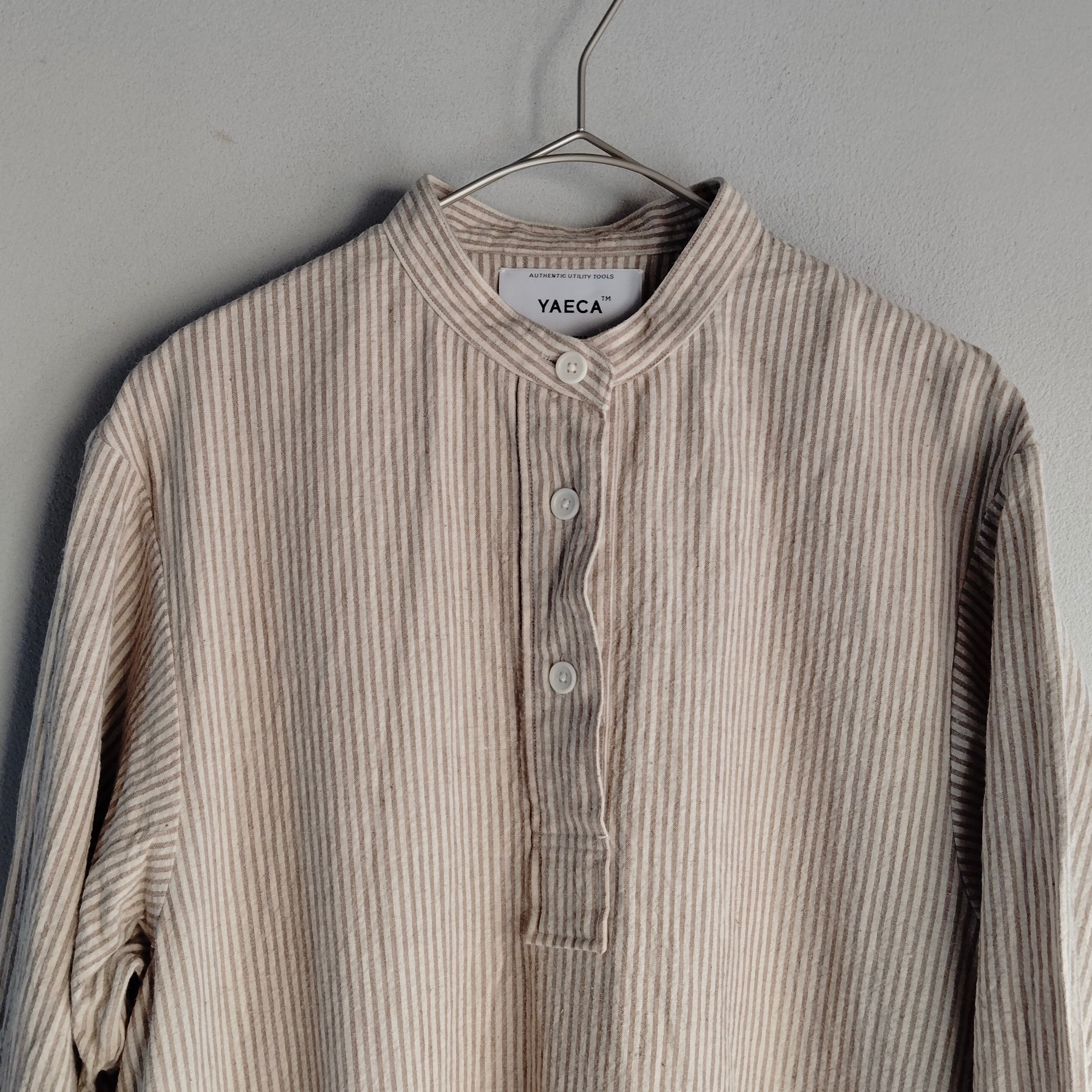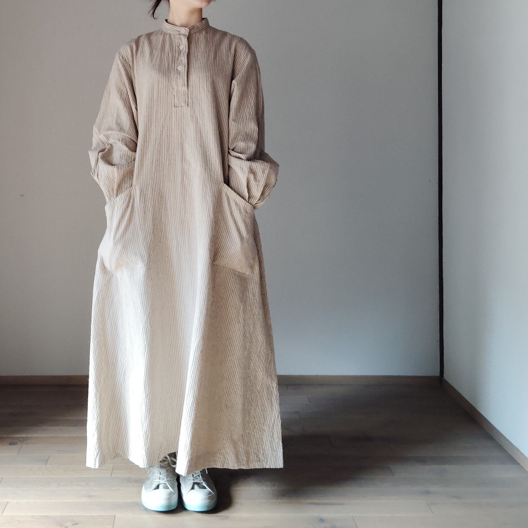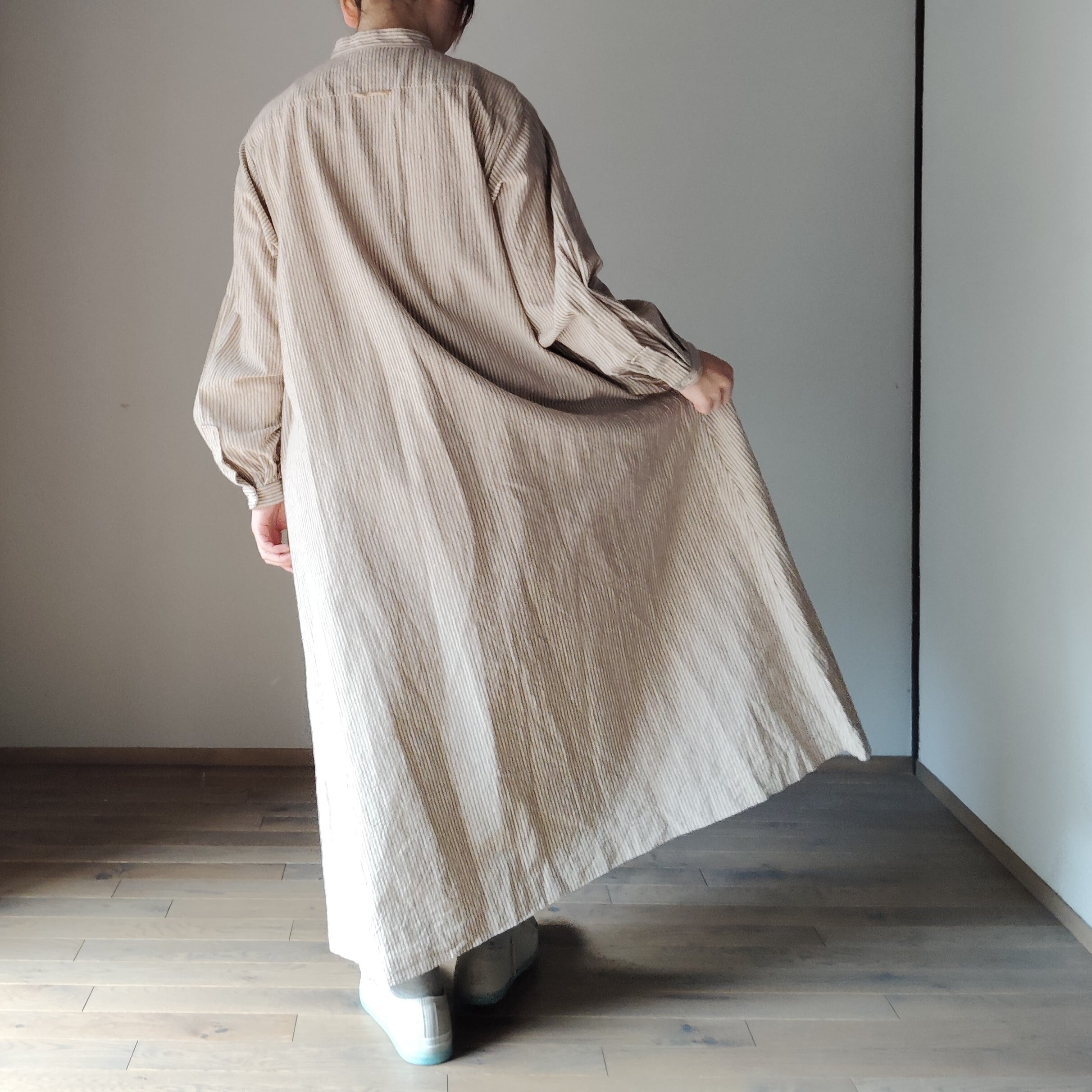 YAECA /ヤエカ Stand collar P/O dress/スタンドカラープルオーバードレス #95702 BROWN STRIPE