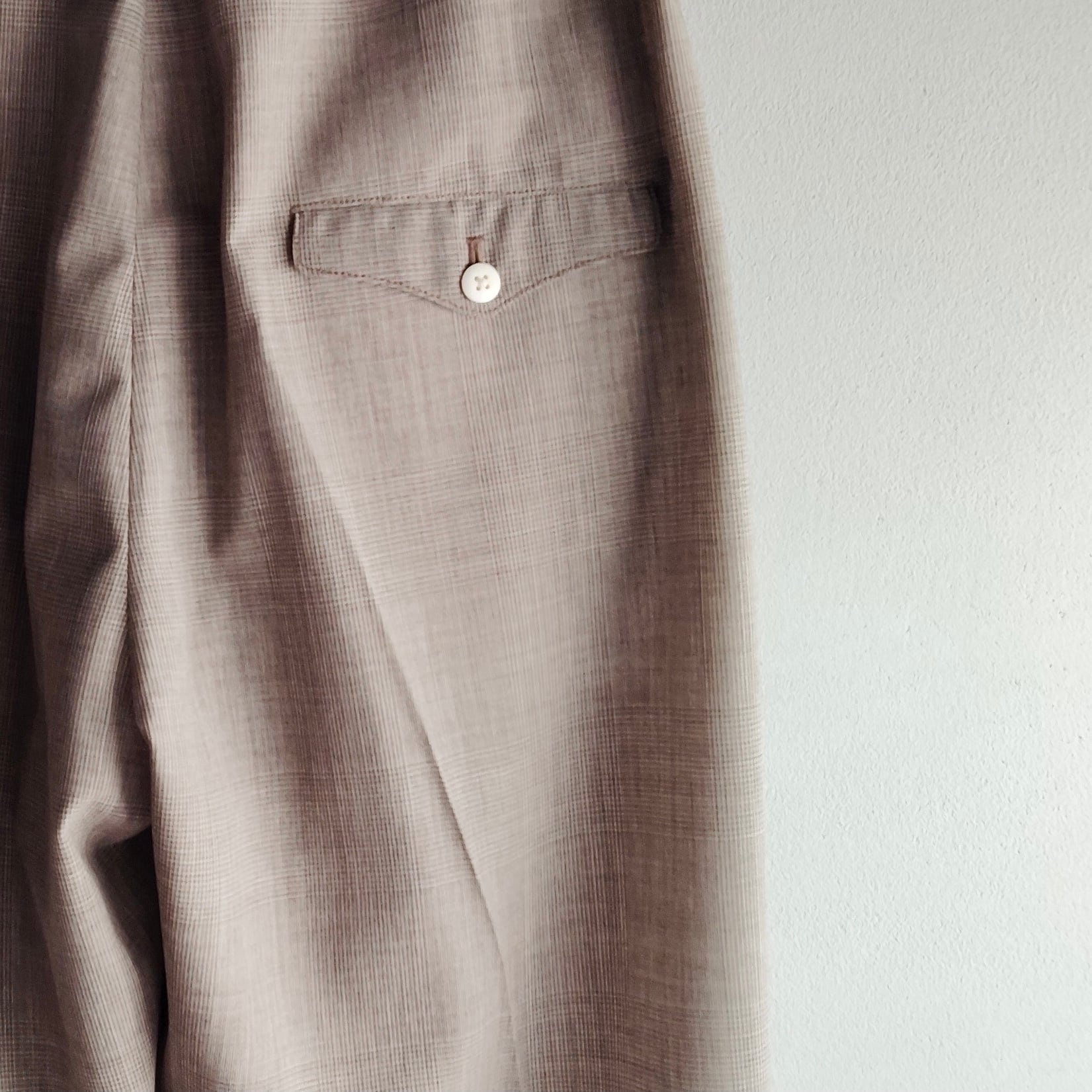 ヴィンテージのクリケット競技用トラウザーズをベースに極太のシルエットにアレンジしました。