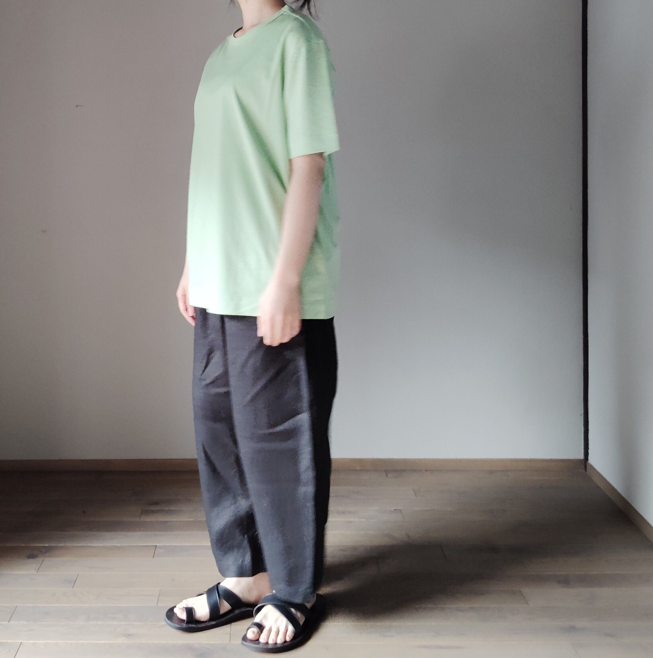 爽やかな色と、肌に触れた時の感触がとても心地よく、ライムの香りを身にまとうようなTシャツです。