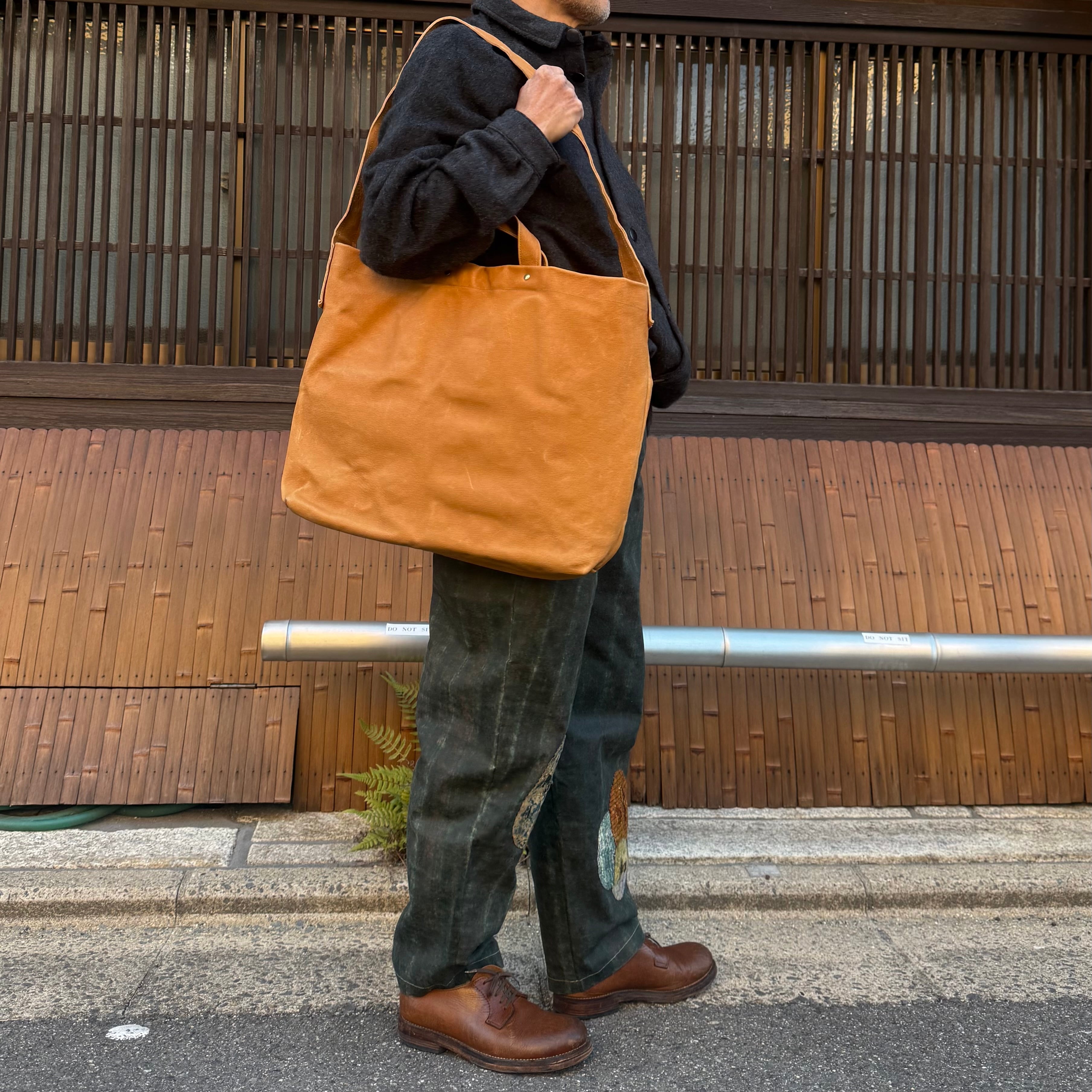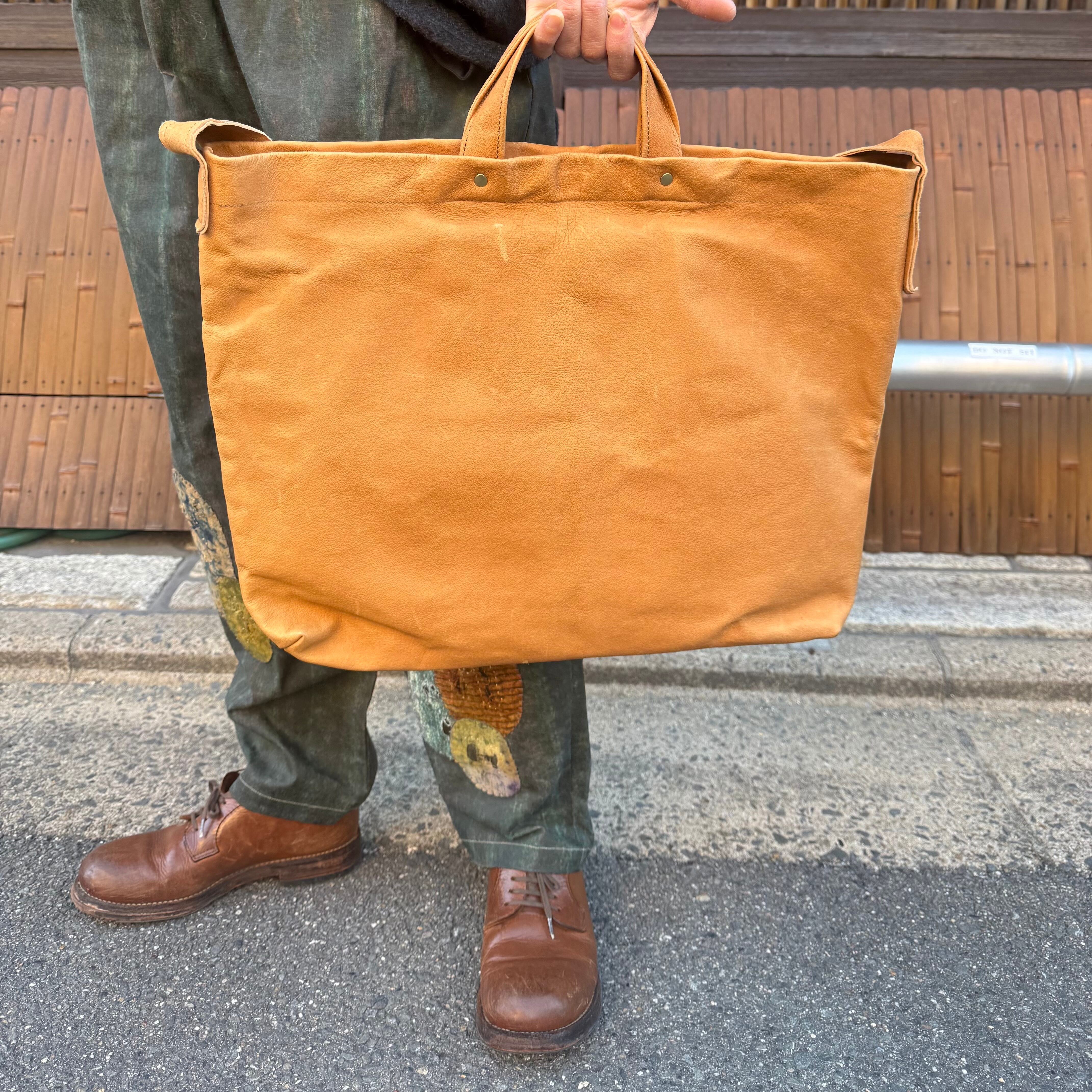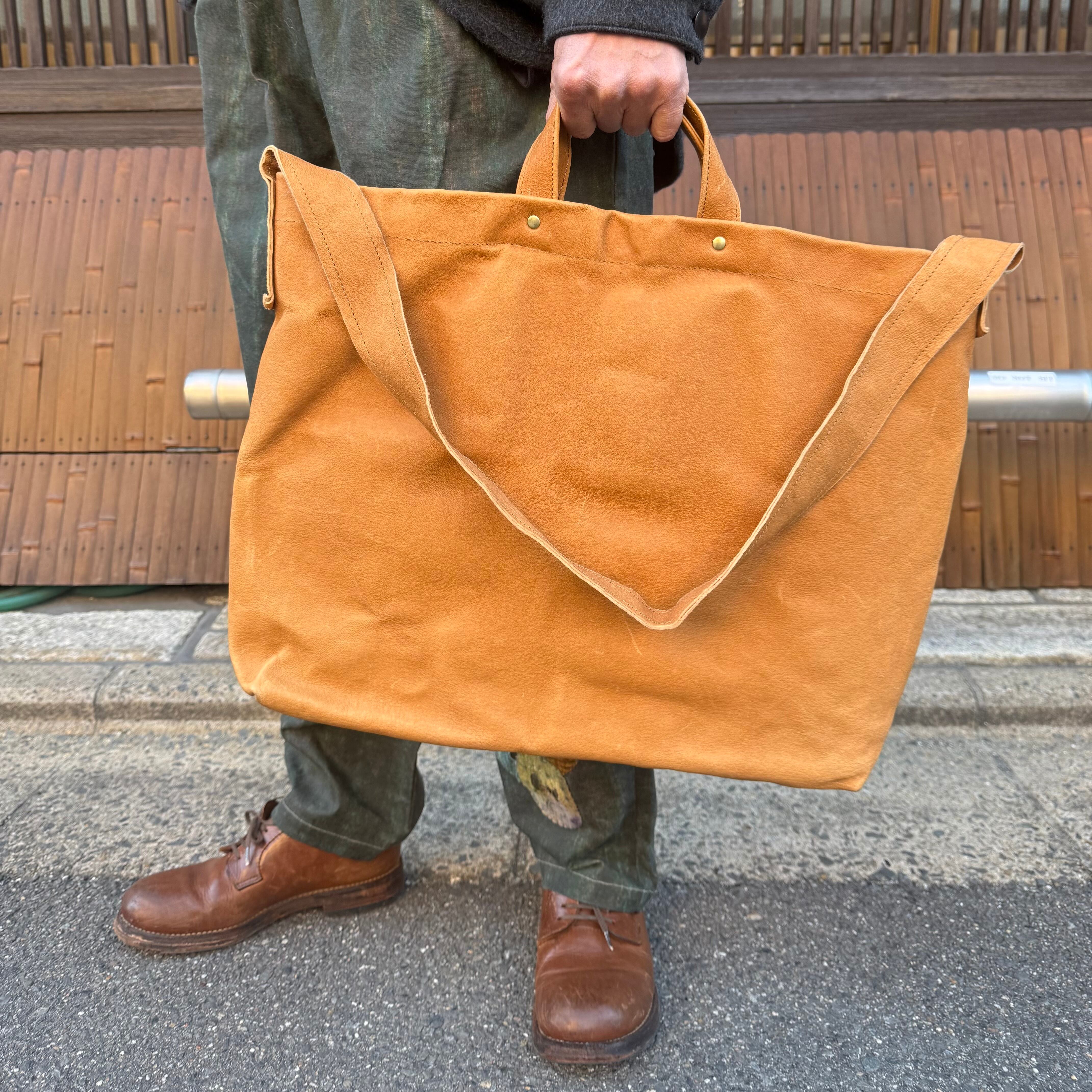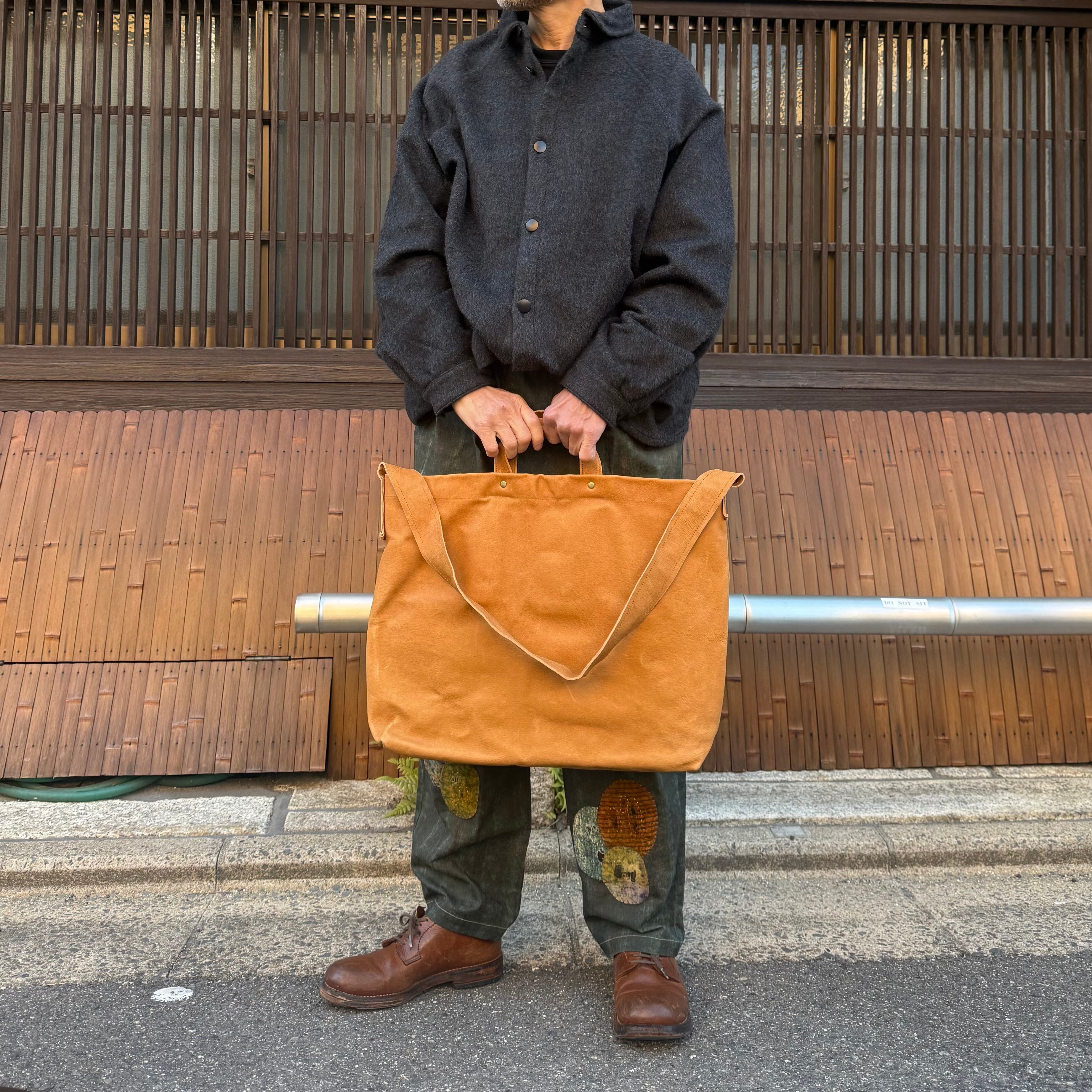 メッセンジャーバックにも使える、ハンドルとショルダー両使いのバックです。ベジタブルタンニンの豚革エコレザーに洗いをかけた革で、使用につれどんどん色艶がでてくる育てるバックです。
