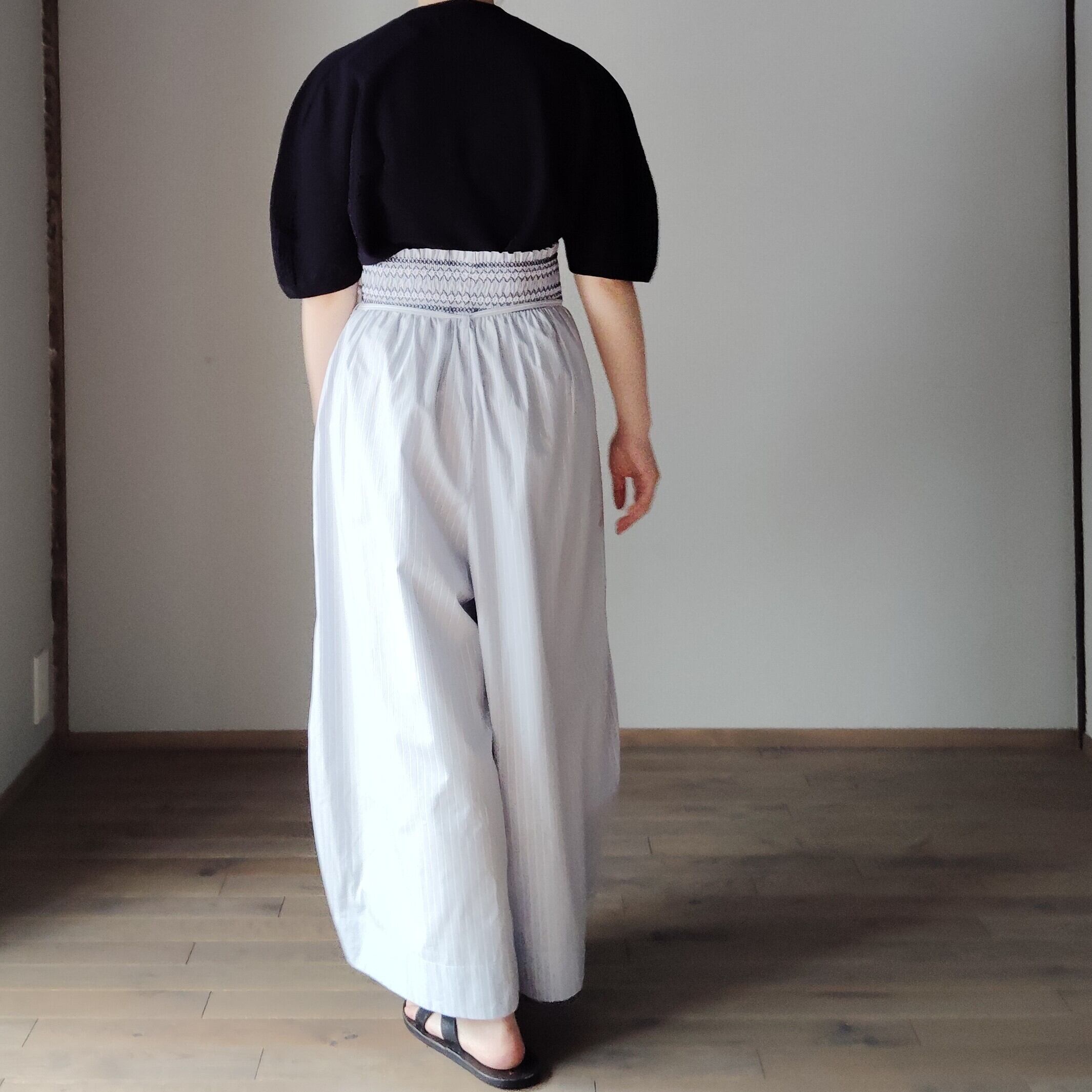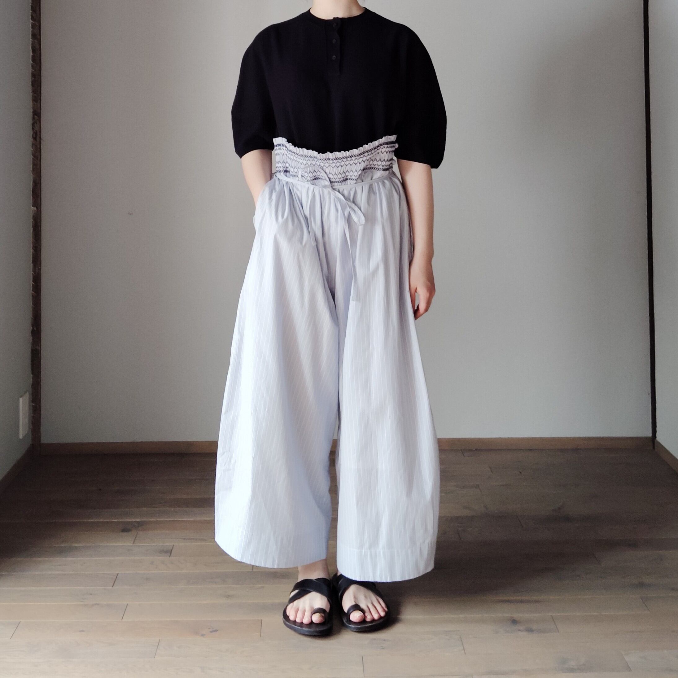 外での作業服としても着られるように、肌離れの良い強撚の糸を使用しており、演奏の際などのフォーマルな作業服としても着られるようにスタンドカラー風なデザインのポロにしています、袖にカーブをつけているので、前に腕を動かしやすい仕様になっています。