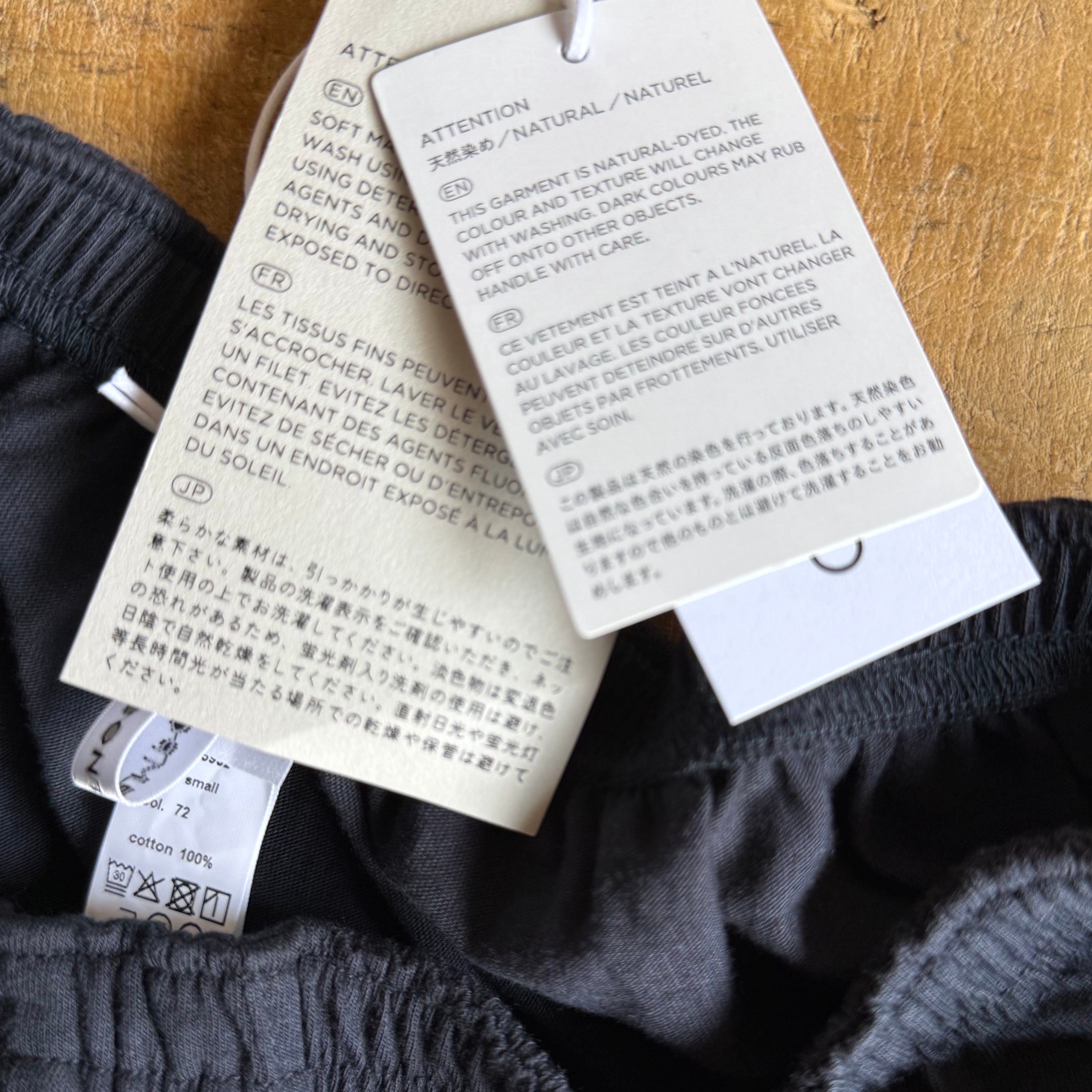 size S : ウエスト64㎝(ゴムで伸びます。最大約90㎝)、股上22㎝、ワタリ30㎝、側総丈29㎝