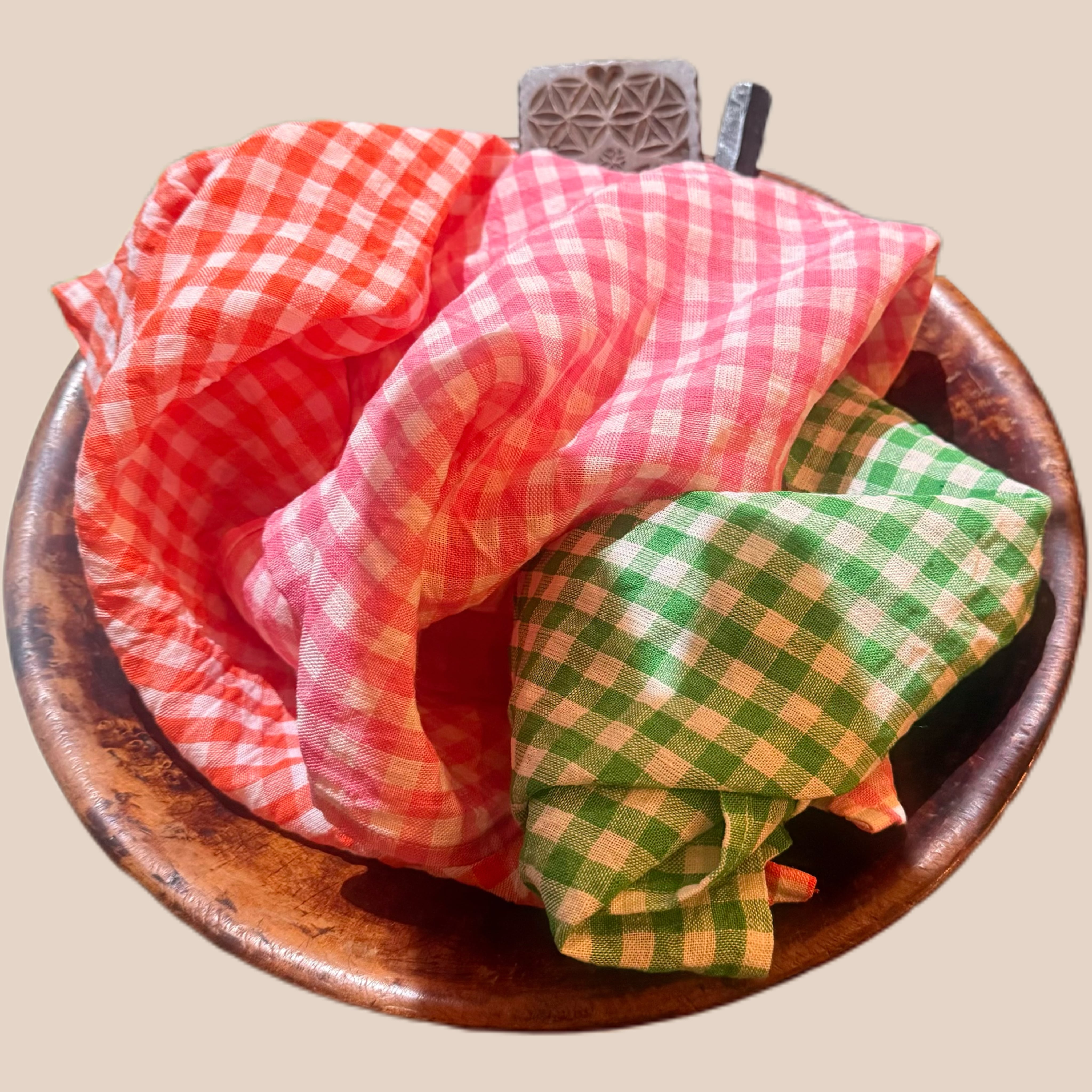 オレンジ、ピンク、グリーンの3色のギンガムチェックをご用意しました。