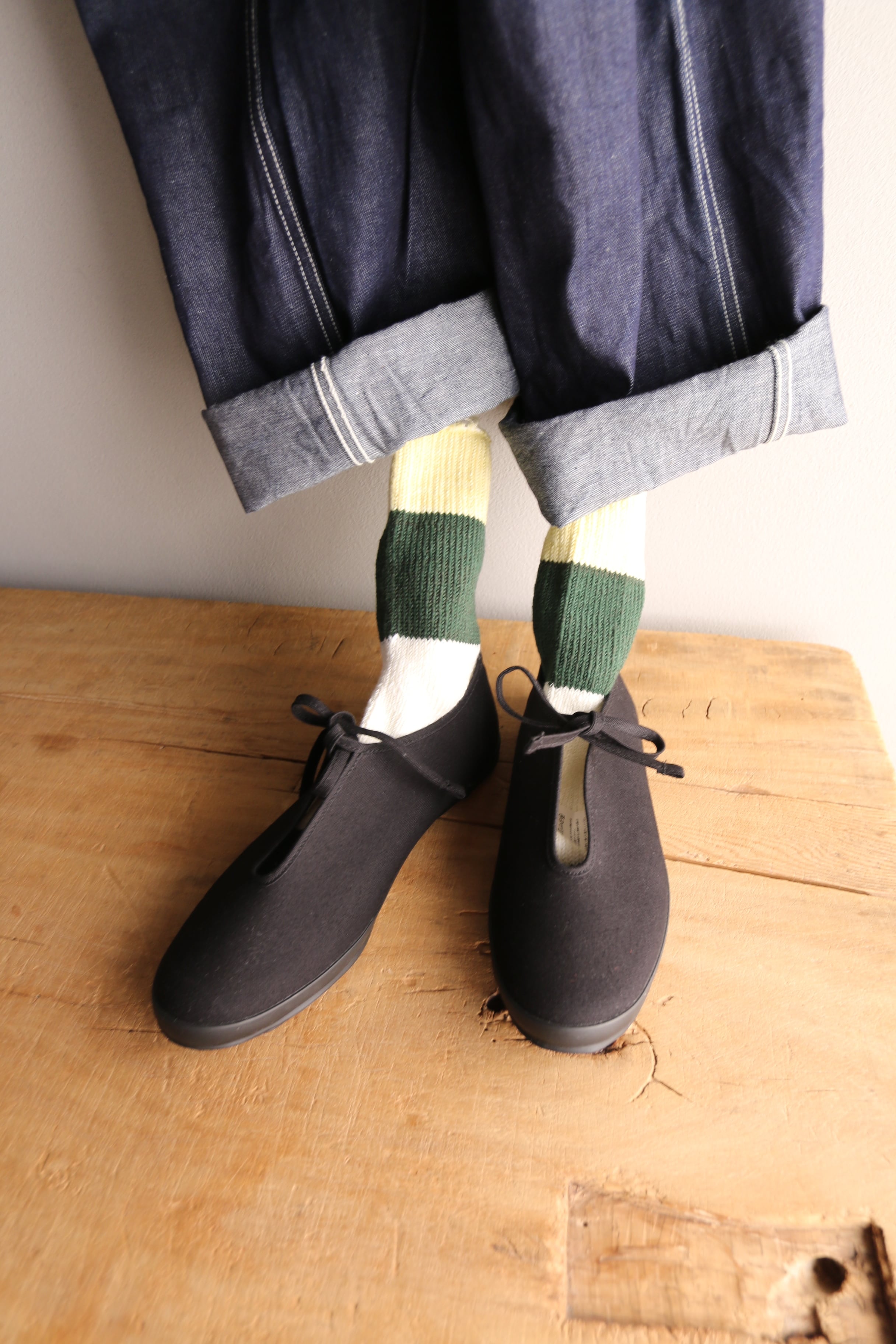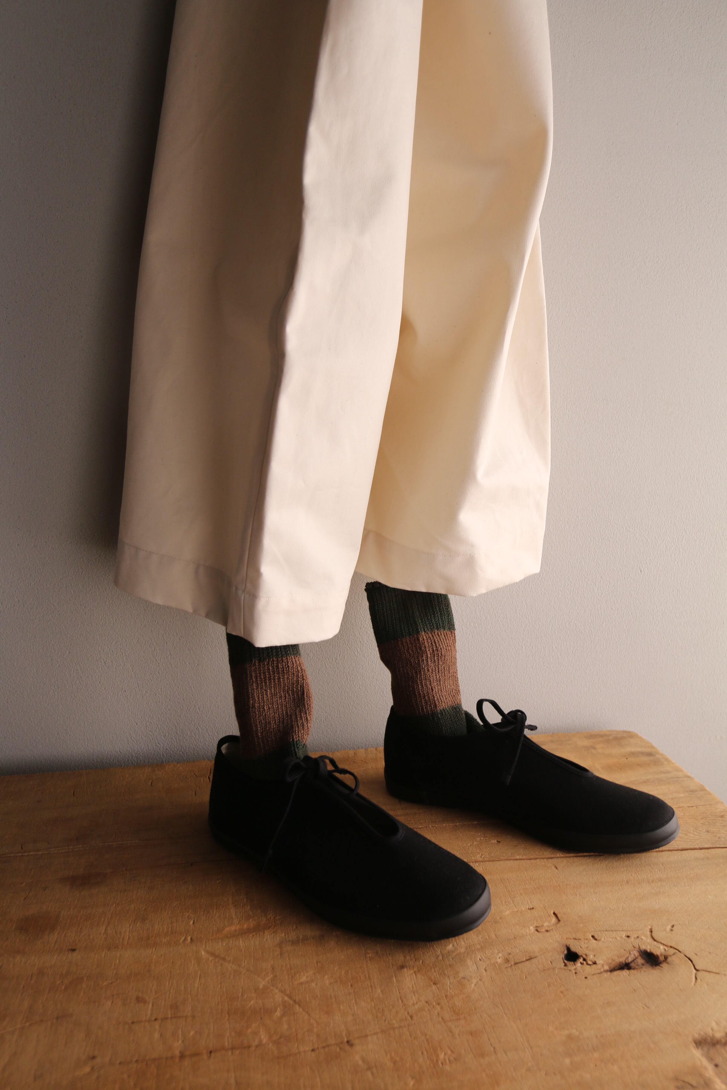 シューズやサンダル、パンツの丈によって靴下の現れる色が変わってきます。