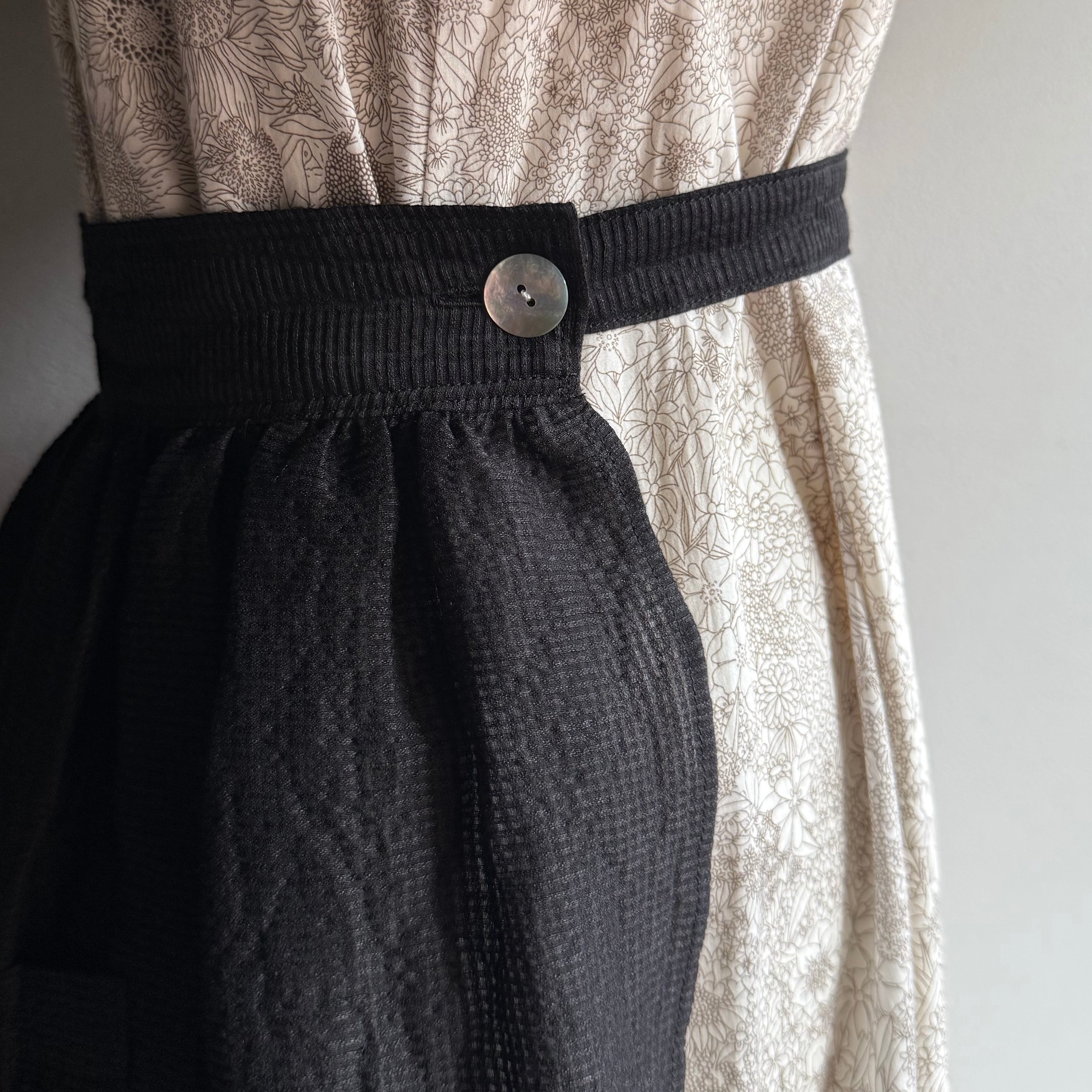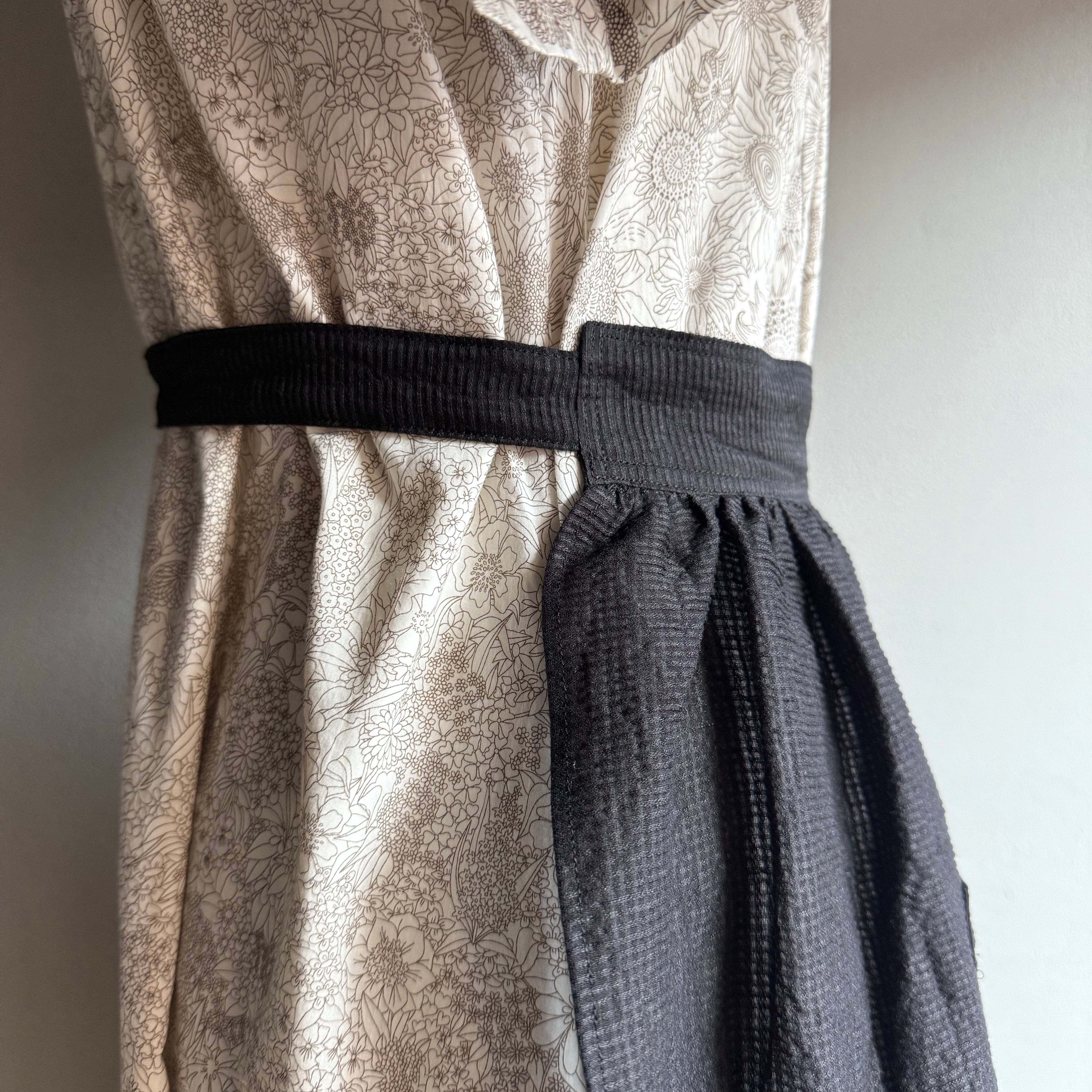 腰紐をサイドのボタンで止めるだけのシンプルなエプロン。