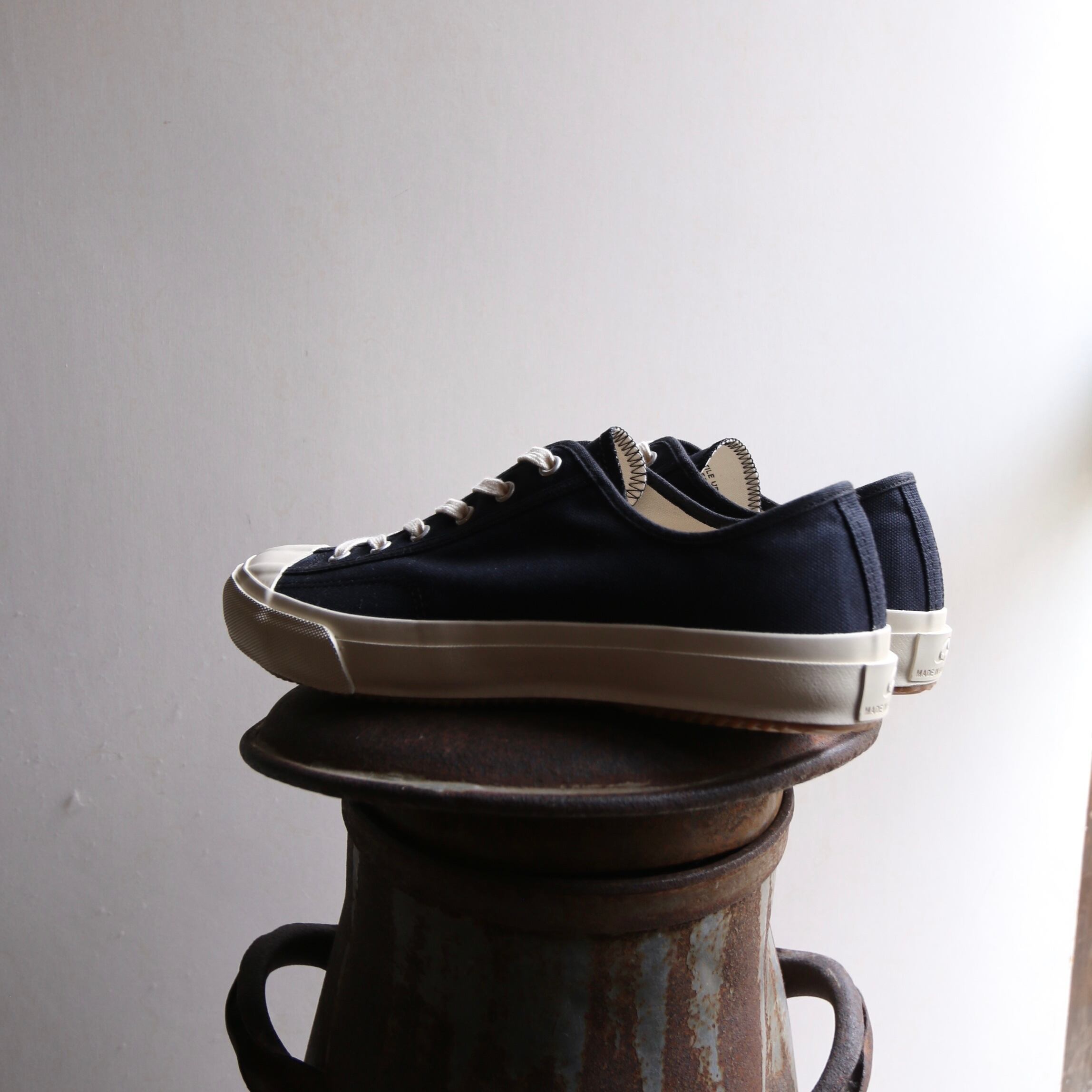 ムーンスターのキャンバス生地を使ったスニーカーの中でも、レトロな雰囲気を特に感じさせてくれるジムクラッシック。「トレーニングシューズ」と呼ばれていた1960年代のモデルを現代に再現。側面内側にある二本のラインは、補強のためのライニング。現代は簡略化されてしまったところを再現することでより丈夫になり、シルエットが綺麗に保たれる仕様です。