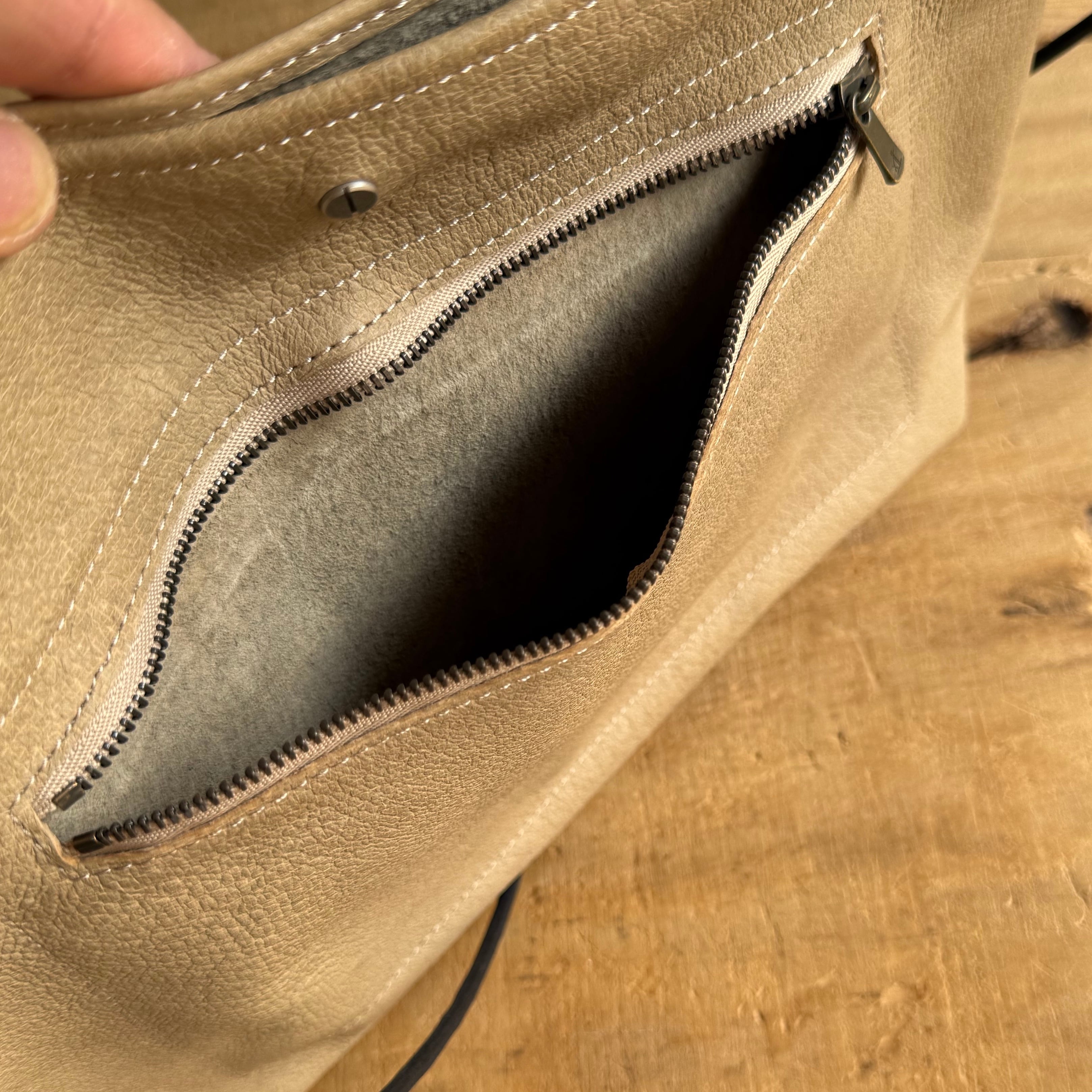 外側に着くポケットにはジプがついているので、鍵など細かいものを入れるのにちょうどいいです。