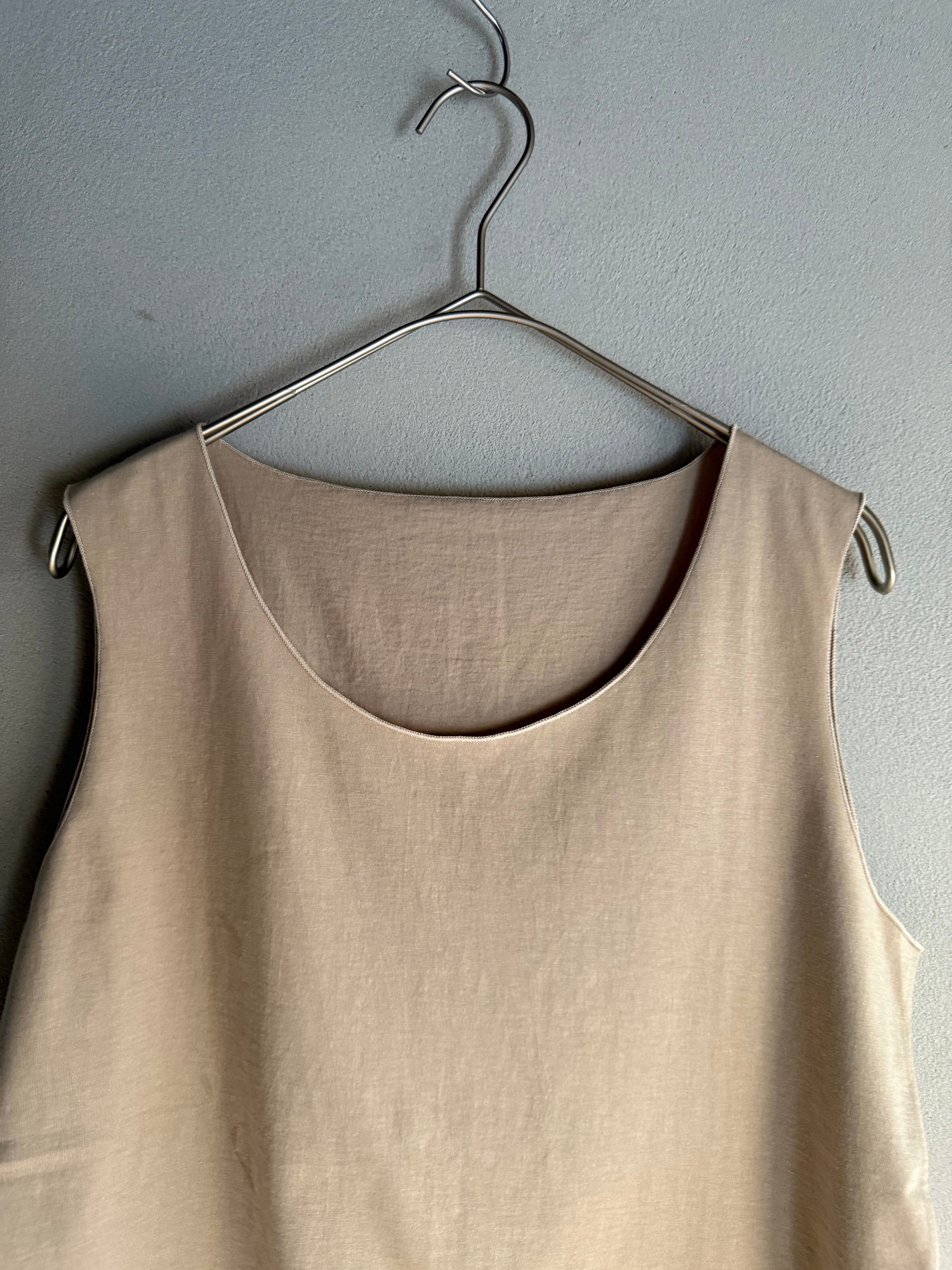 定番のタンクトップ。衿ぐりは大き目です。インナーとしても一年中活躍します。