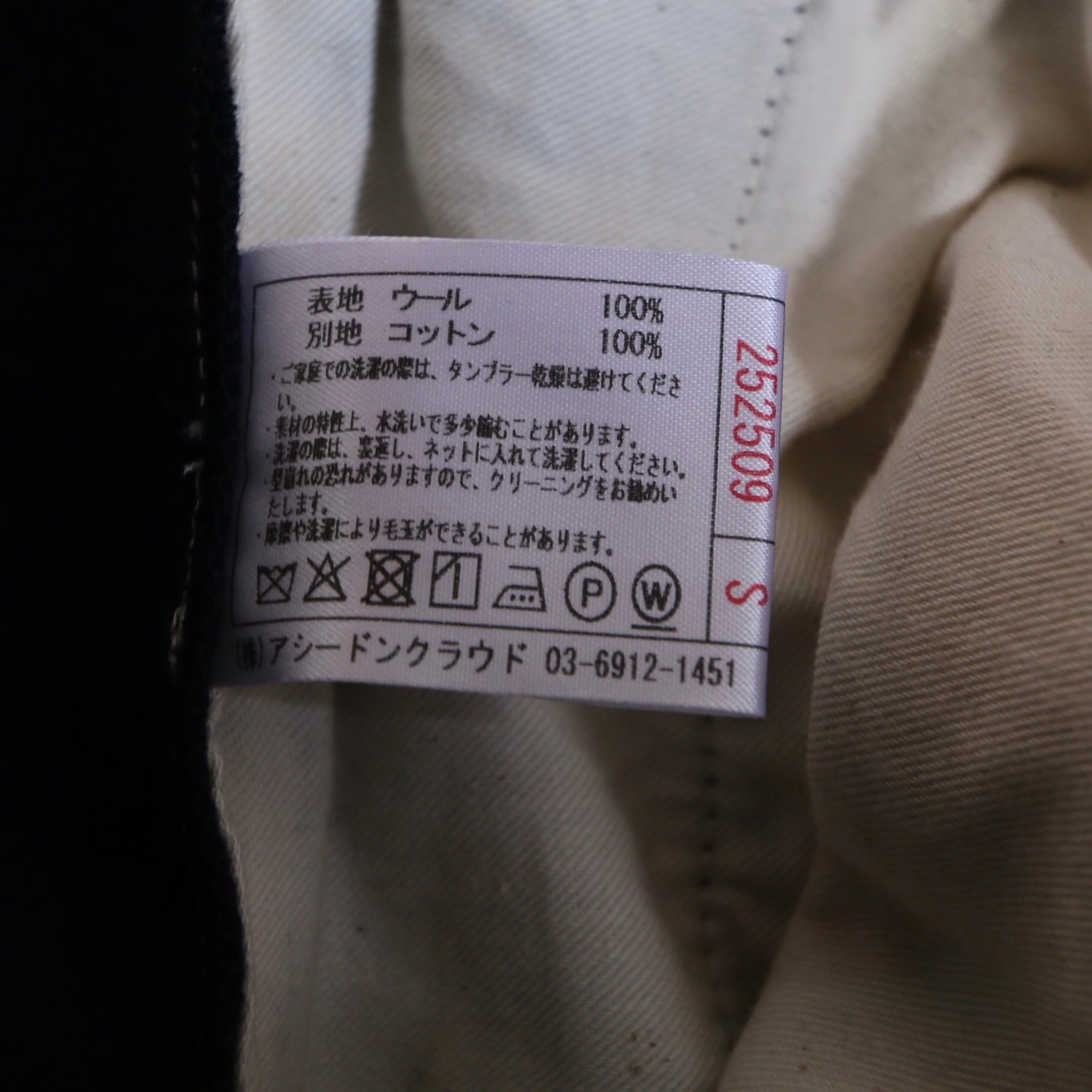 素材:WOOL 100%、別布:cotton100%