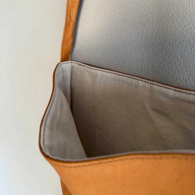やわらかな風合いのピッグスキンに裏地にコットンを使い、まるでシンプルな布バックを持っているかのような軽い使い心地。