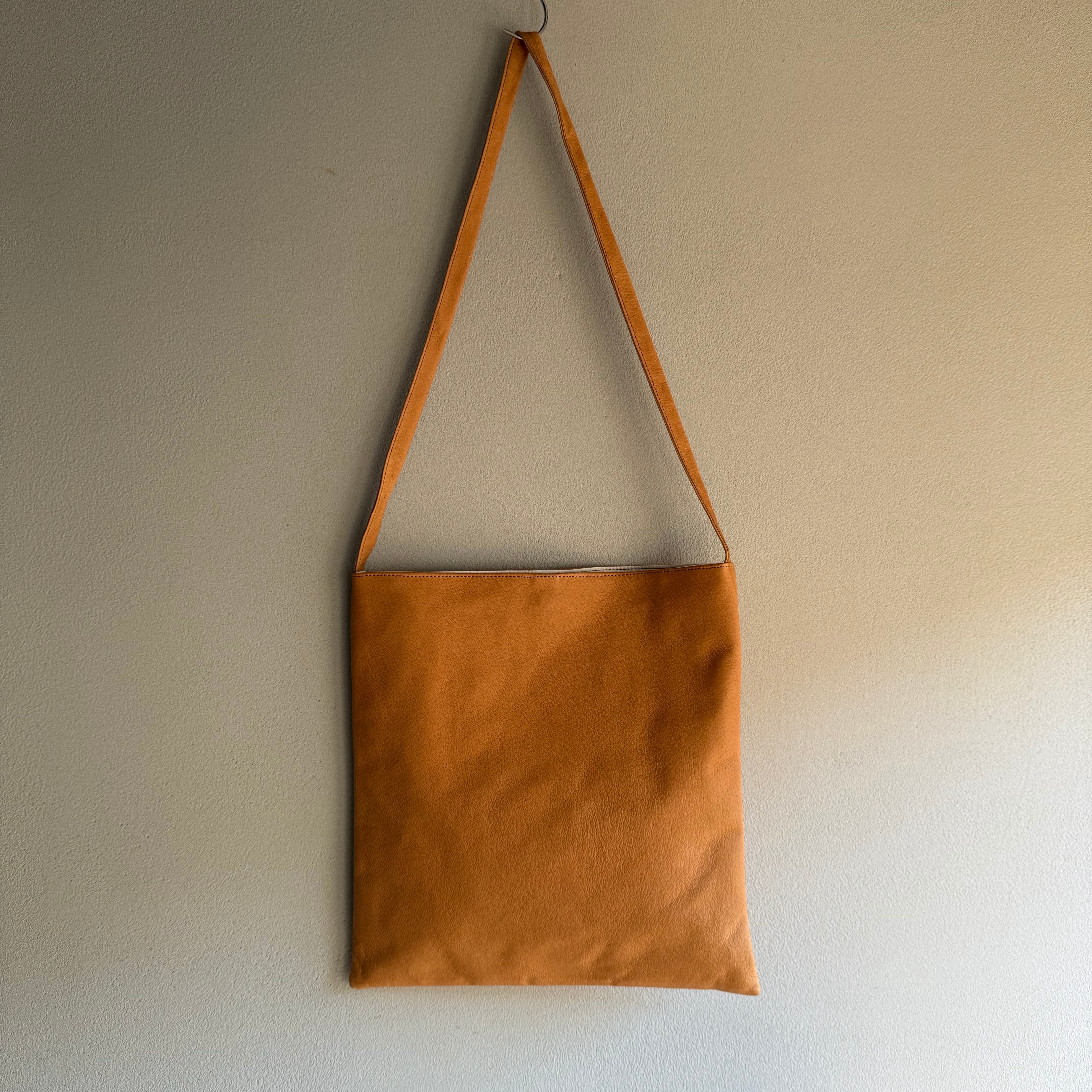 薄く漉いたピッグスキンを使い、マチはなく、細身の肩掛けストラップのみ