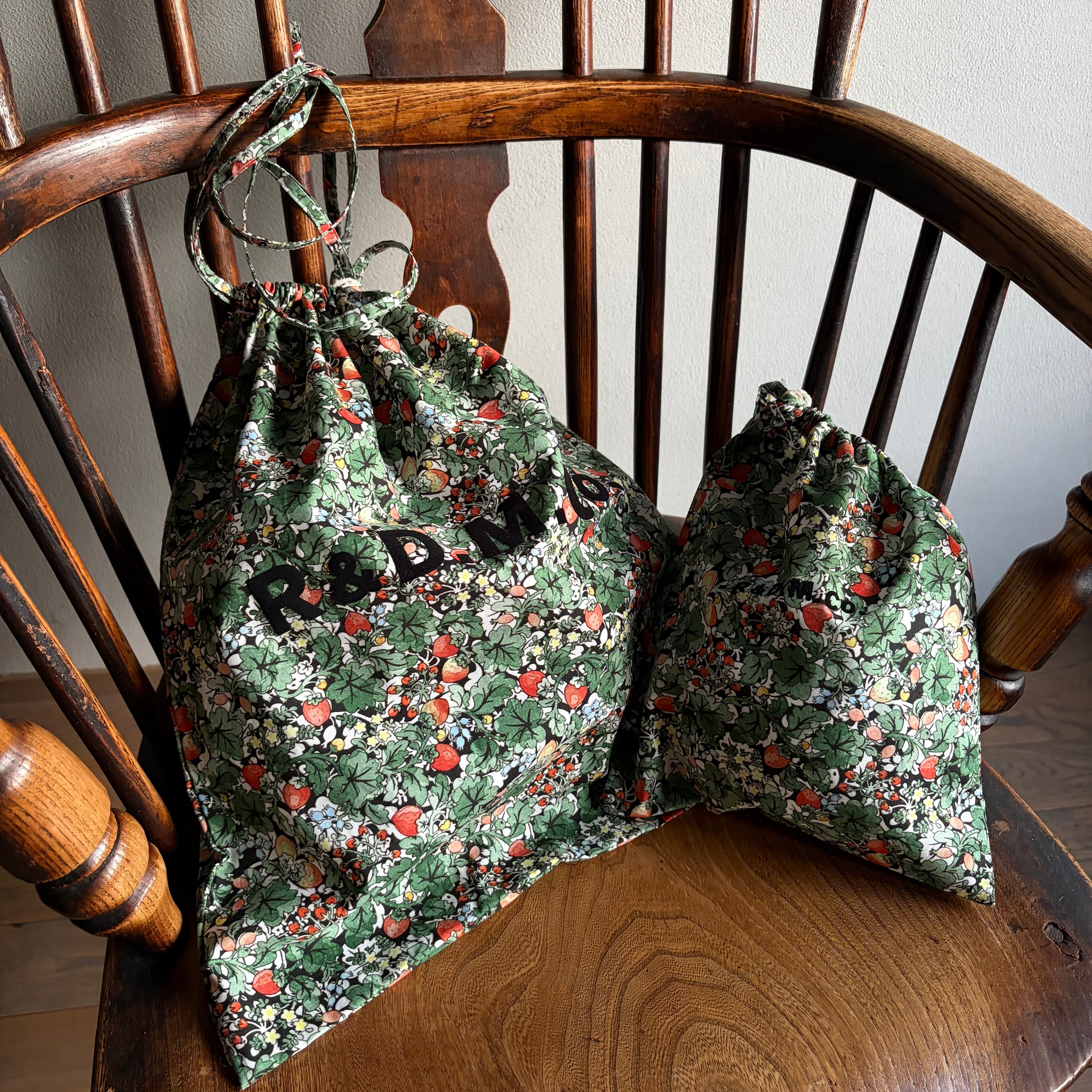 W.B.FはWILD BERRY FIELDの略で、野イチゴと仲間の草花が生き生きと元気に生い茂る野原のイメージがプリント。
