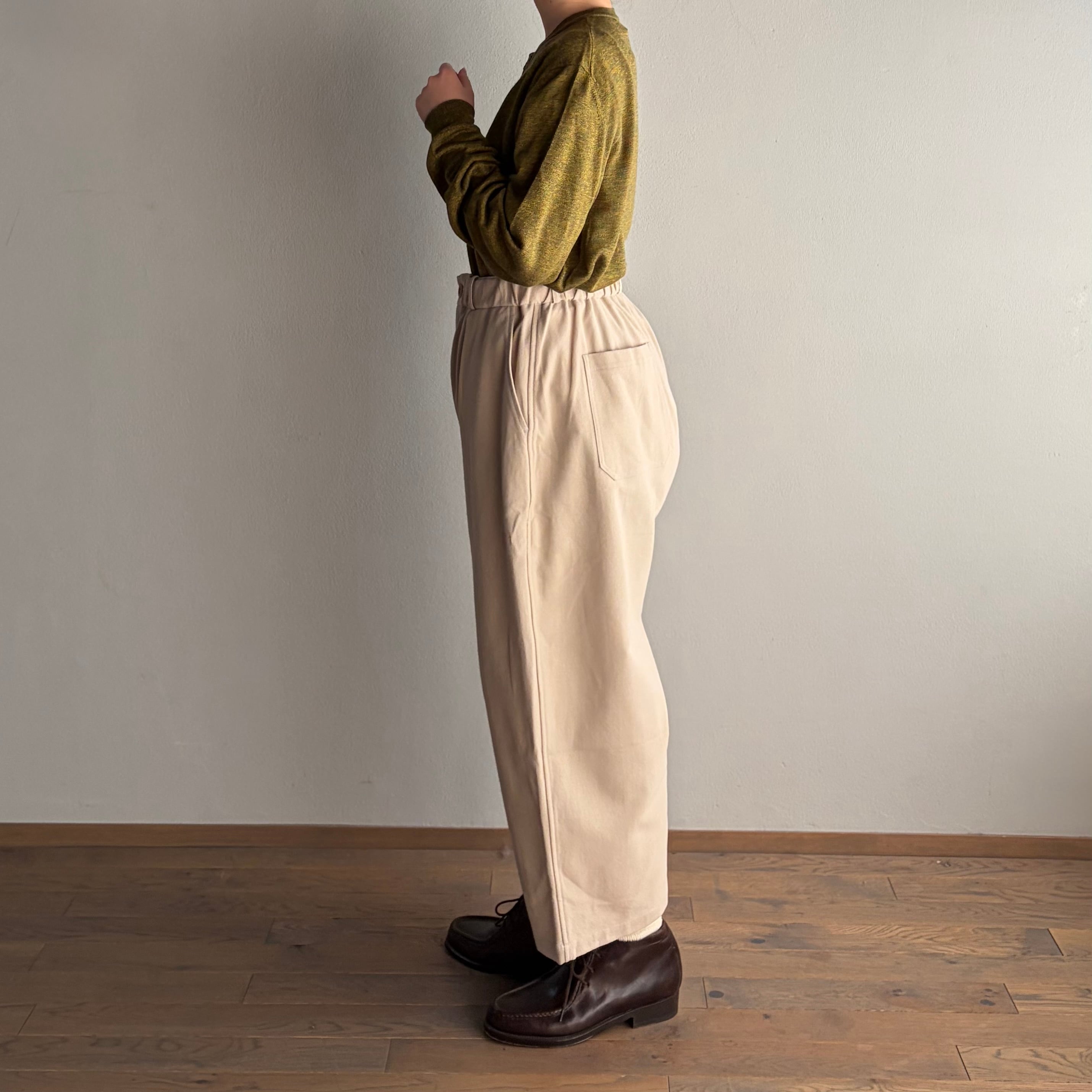 尾州産地で丁寧に織り上げた、MITTANオリジナルの縮緬生地を使ったパンツです。