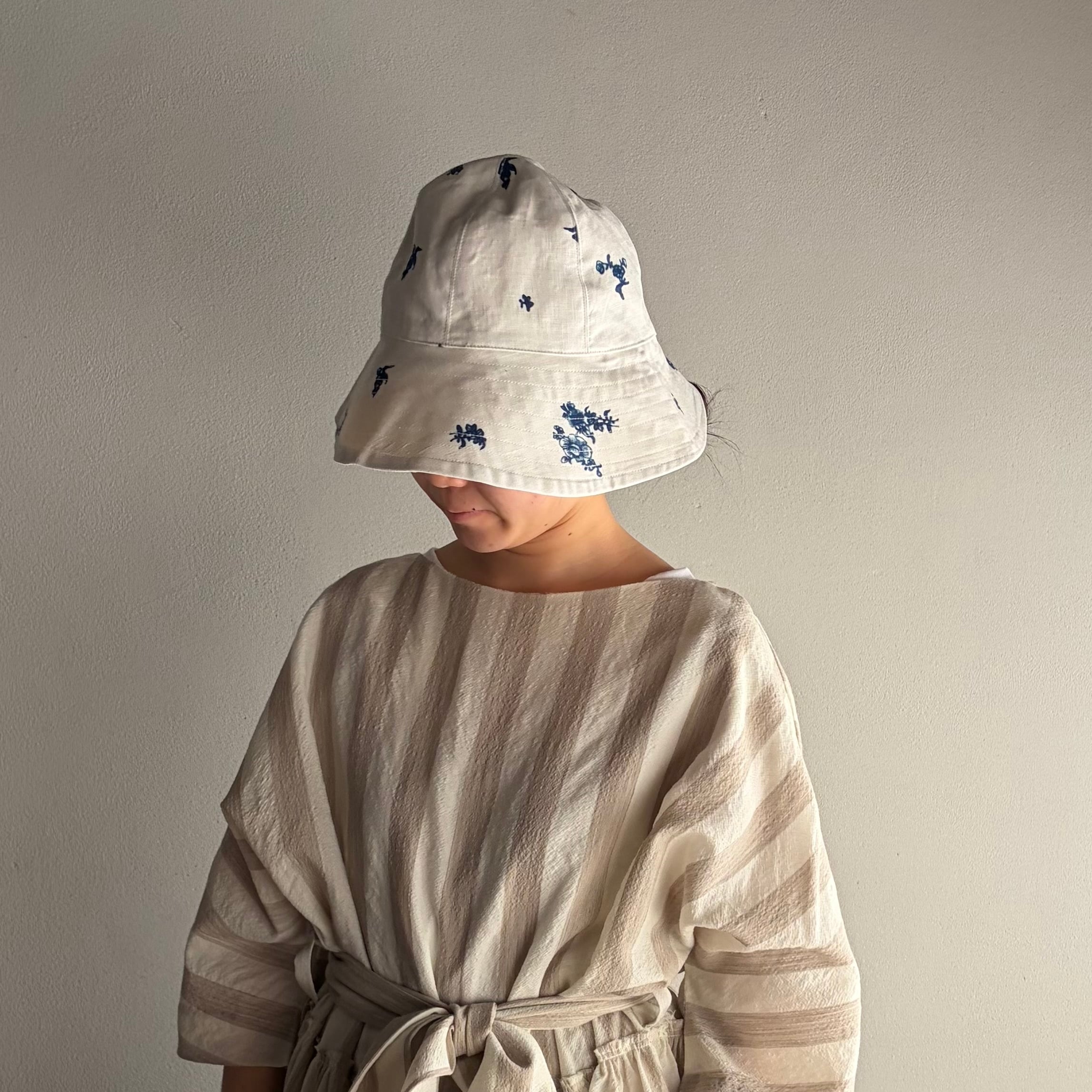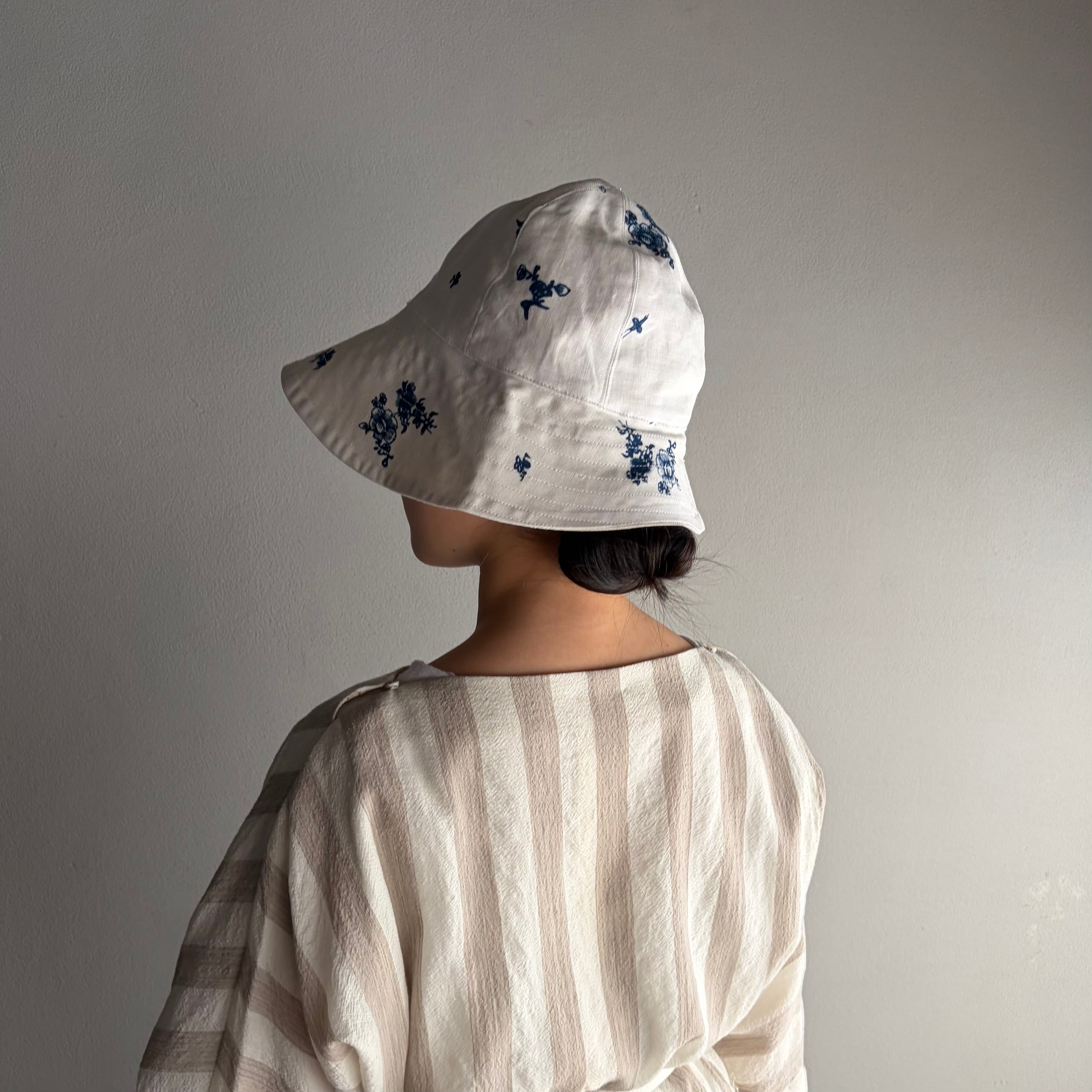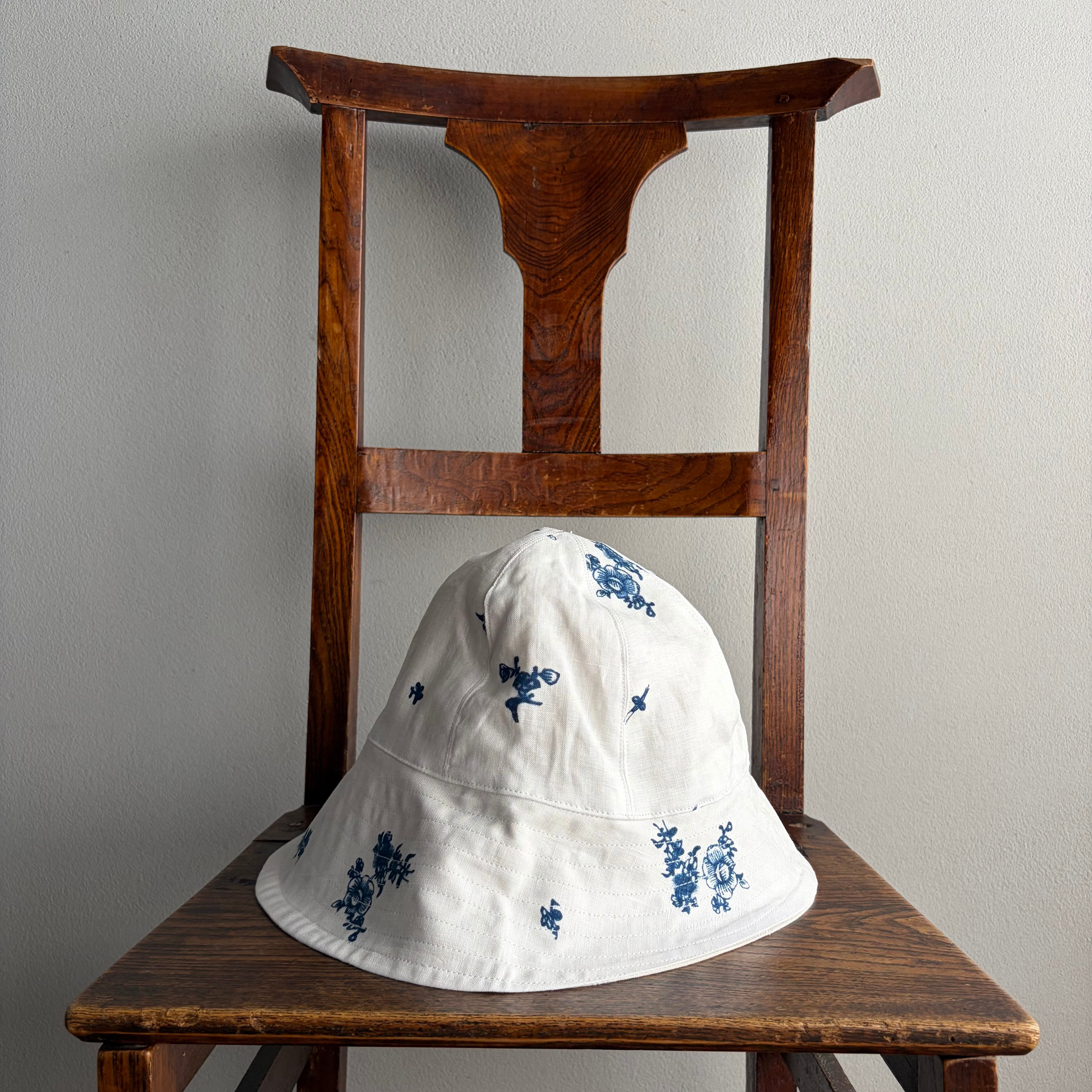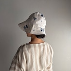米海軍のセーラーハットを参考にして、前後のつばの長さを変え、アーミッシュの女性用ボンネットのイメージもプラス。実用性とエレガンスさを加味しています。