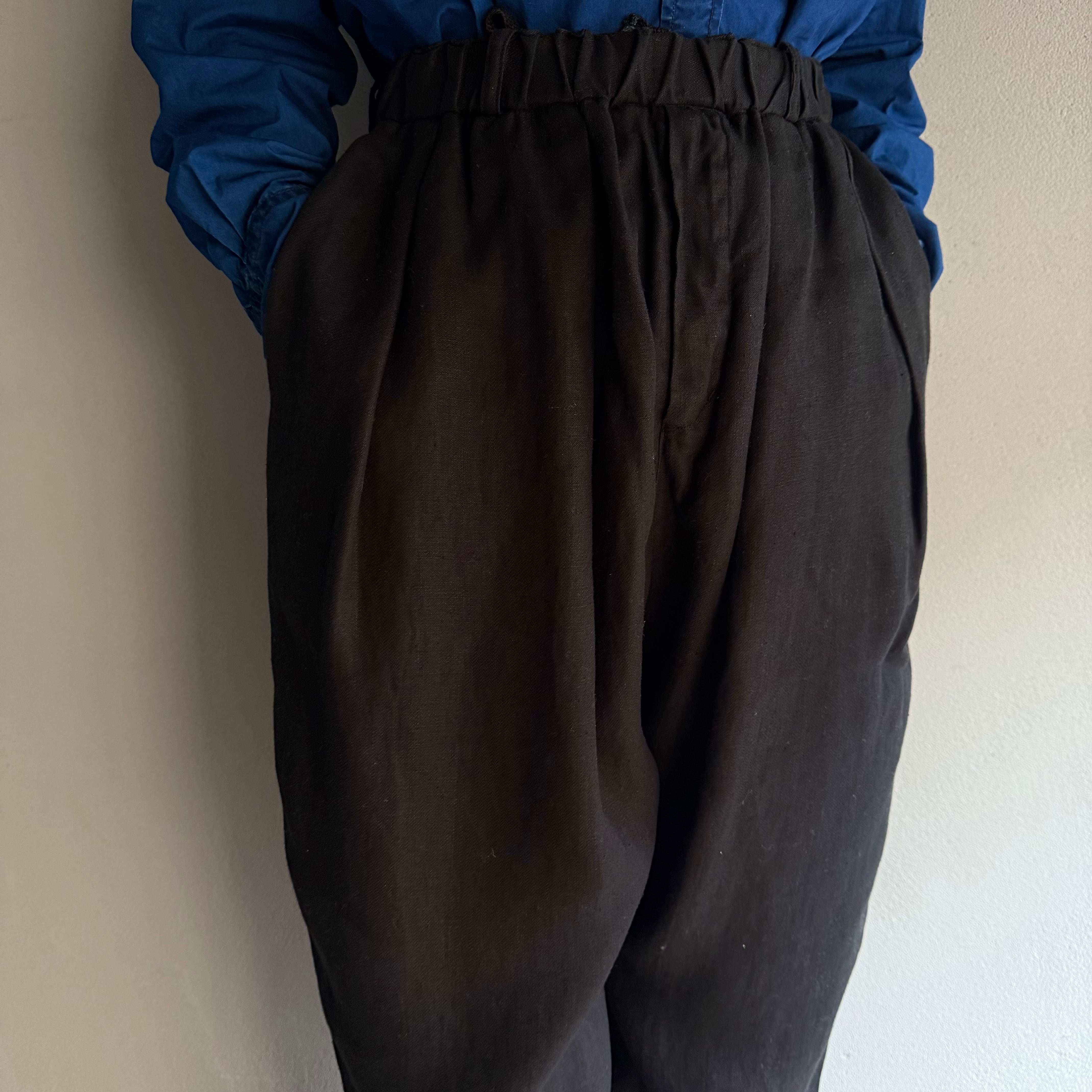 初めは麻らしいハリがありますが、穿き込むほどに少しずつ肌に馴染み、やがて綿のようにふっくらとした柔らかな風合いへと育っていく経年変化も、日々の楽しみの一つです。