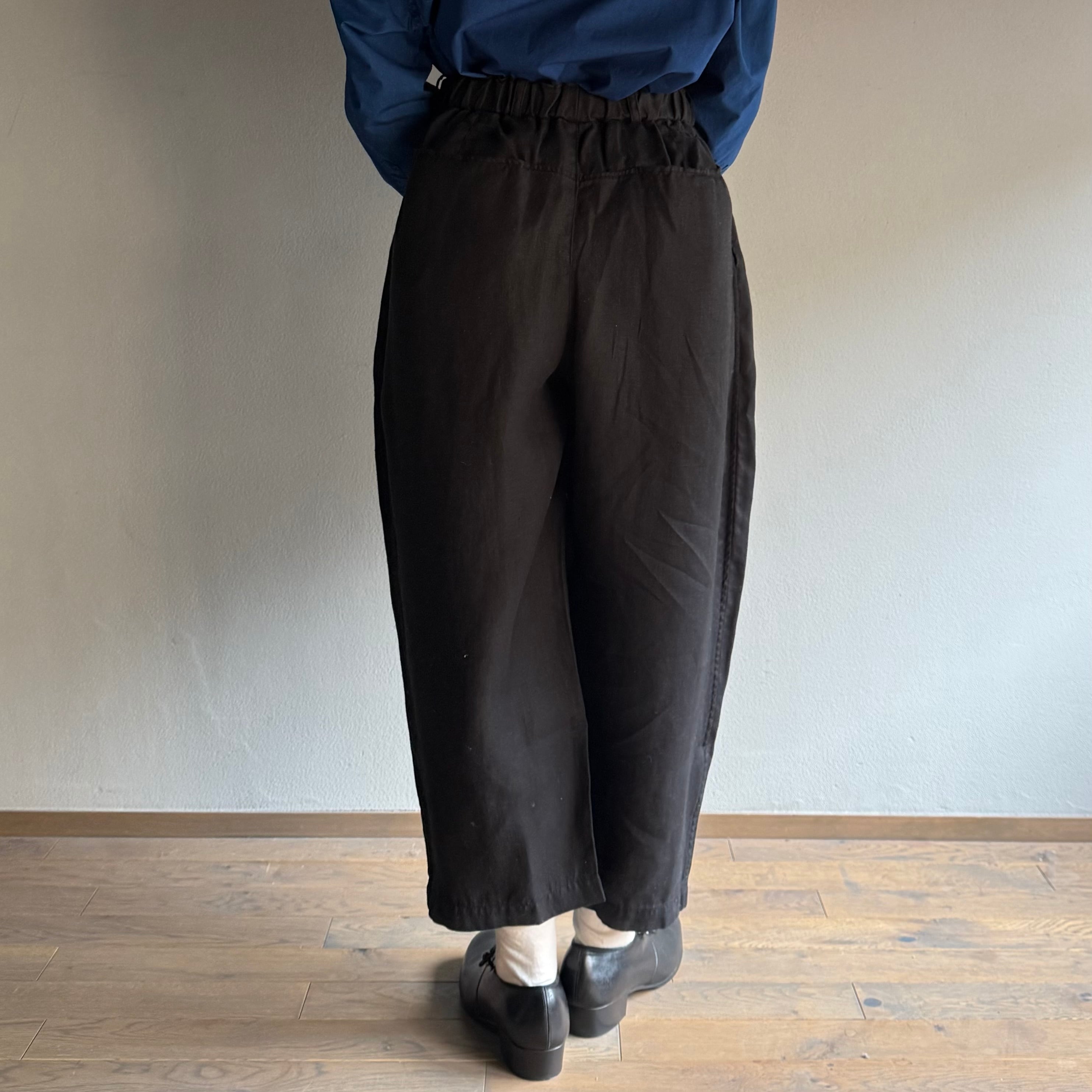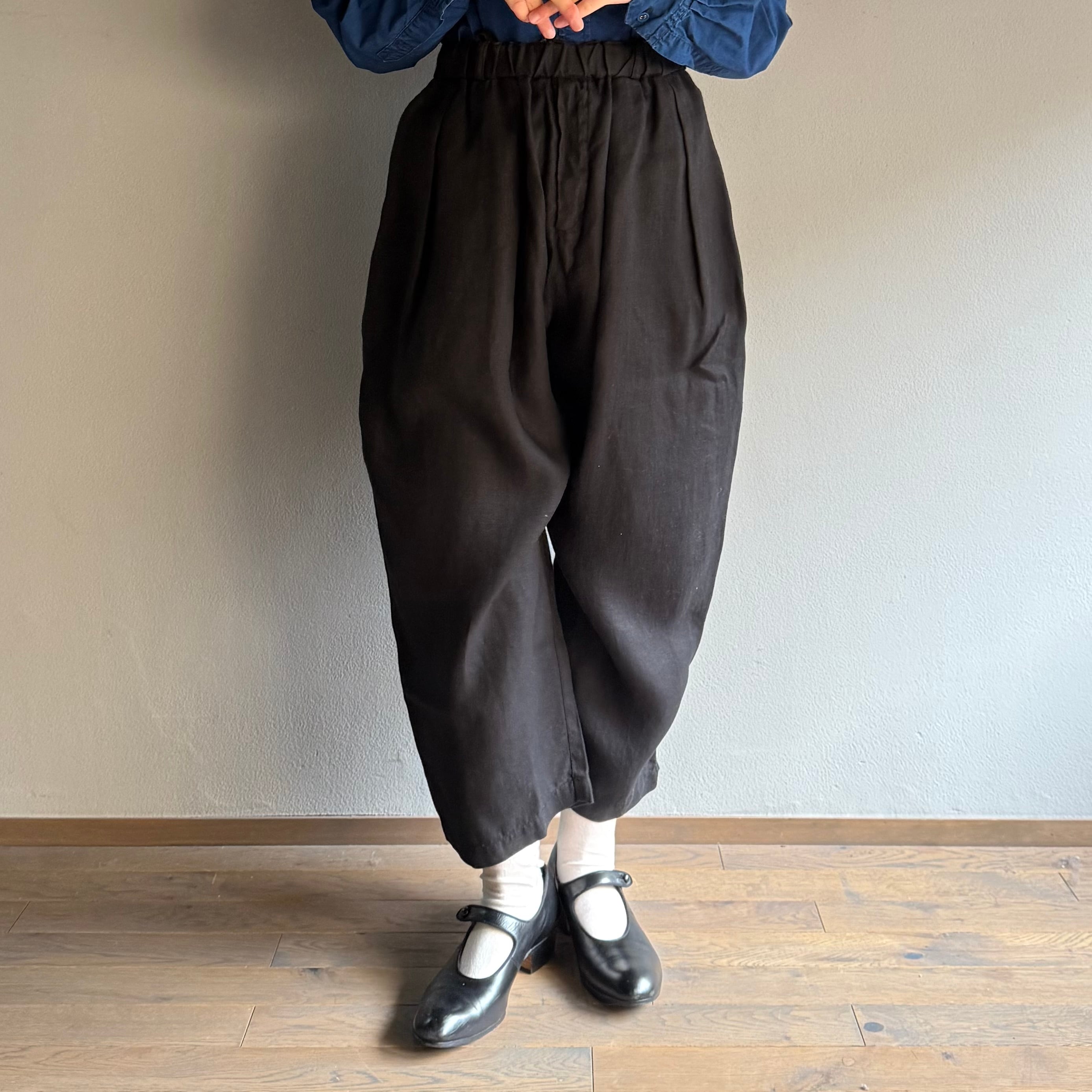 細やかな波のような表情が美しい、綾織ベースのオリジナル大麻(ヘンプ)生地を使用したワイドパンツです。