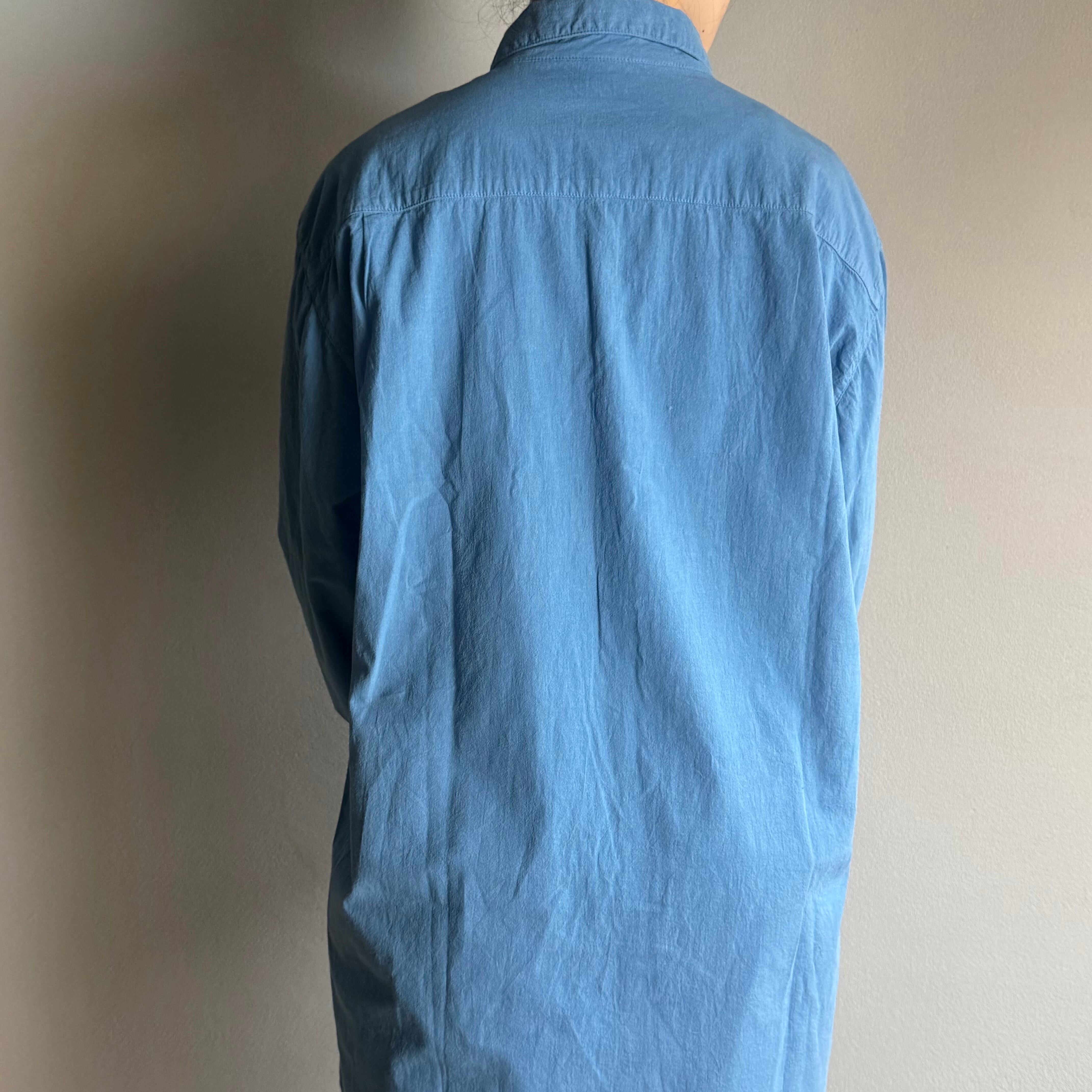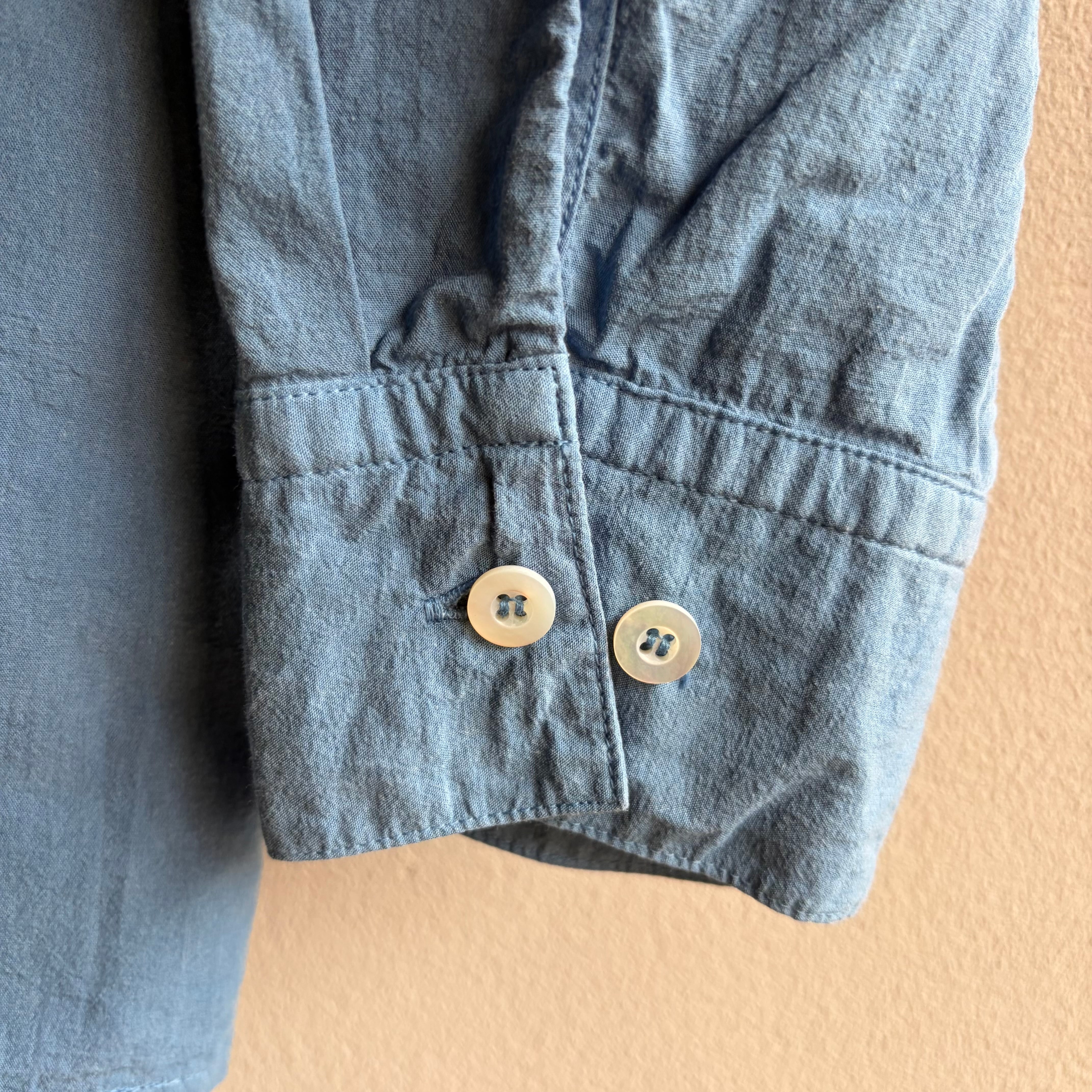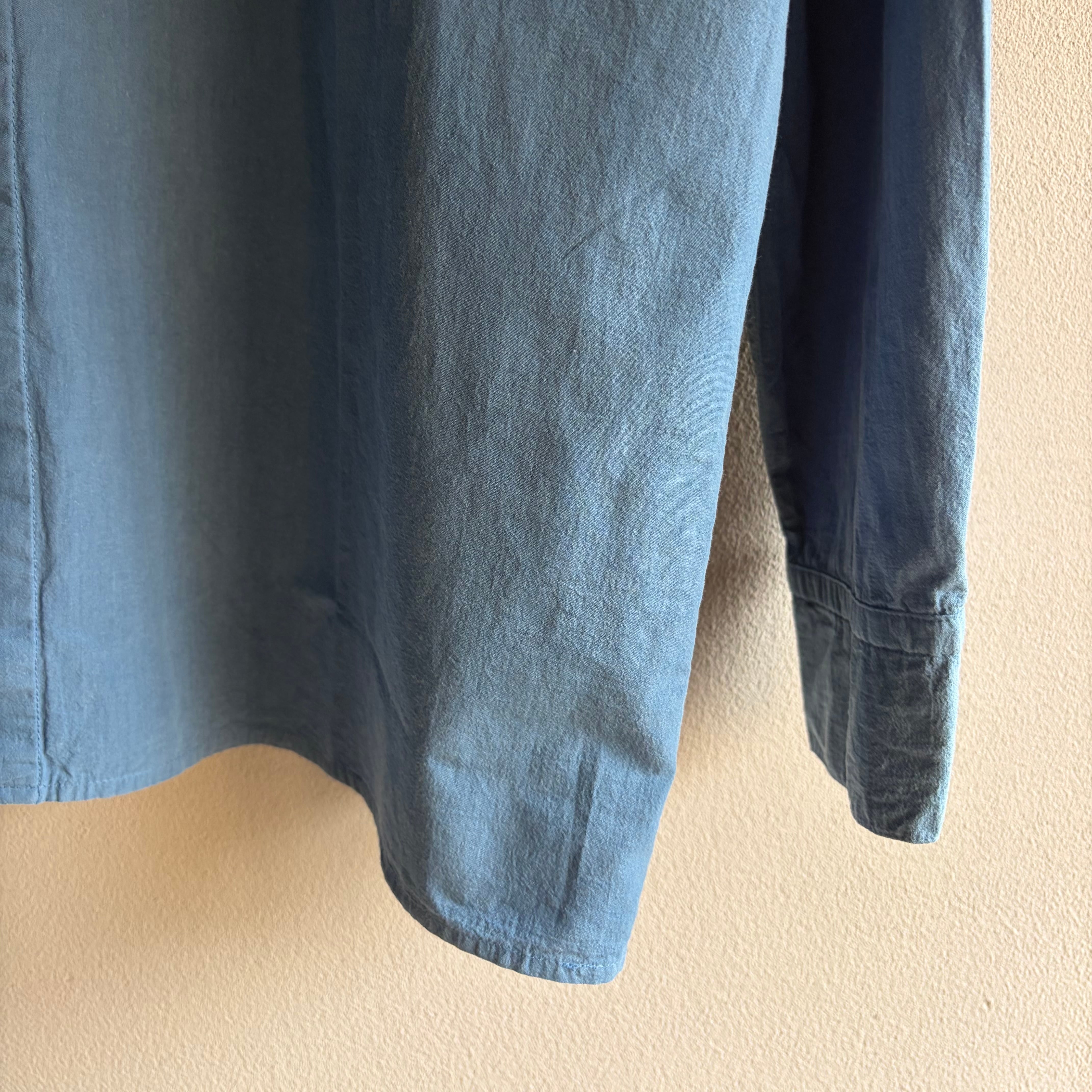 草木染め(天然藍)ならではの、着るほどに淡く、優しく馴染んでいく経年変化をぜひお楽しみください。