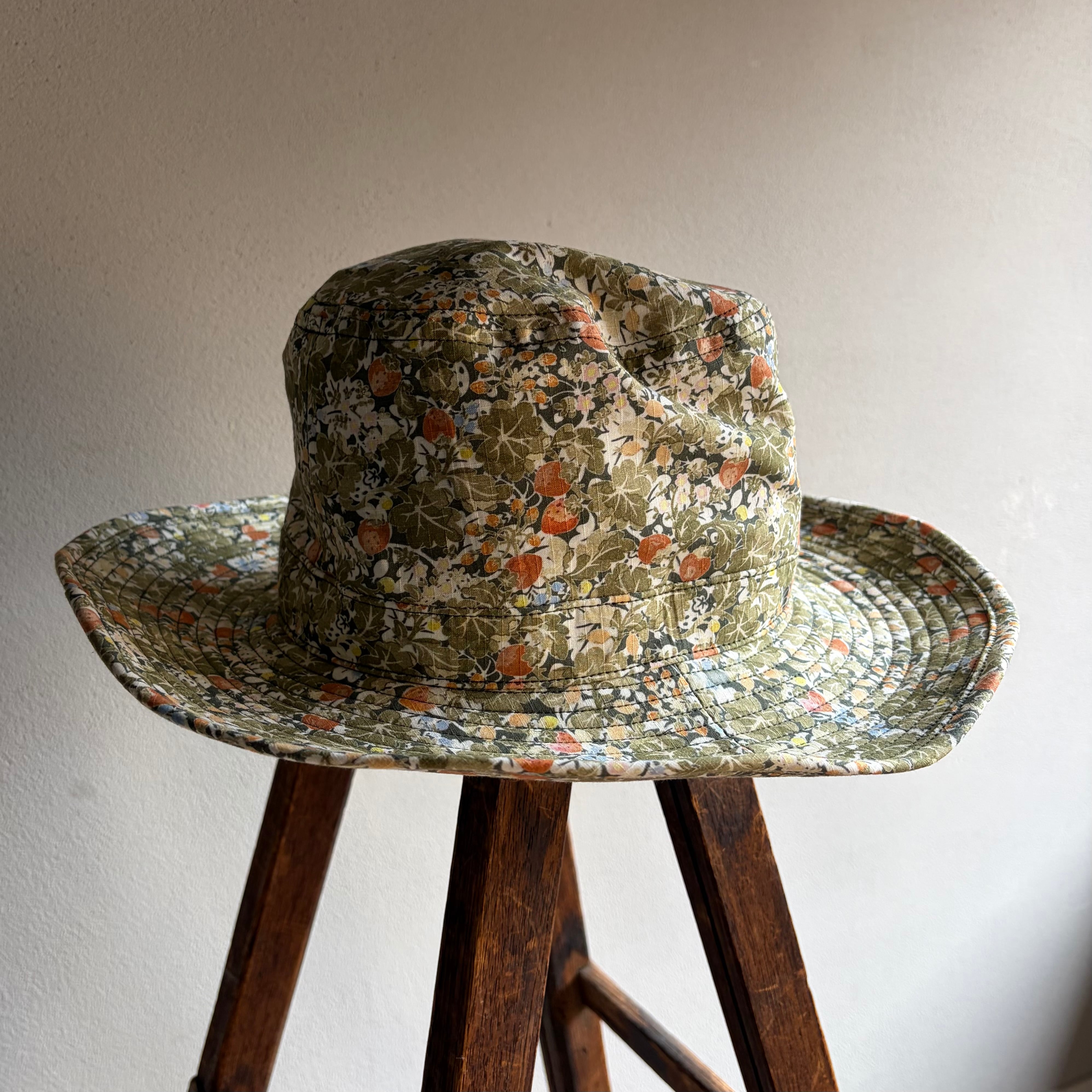 Size M : 頭周内計59cm つばの幅約9cm クラウンの高さ約11cm、前後全長約39cm、左右全長約35cm