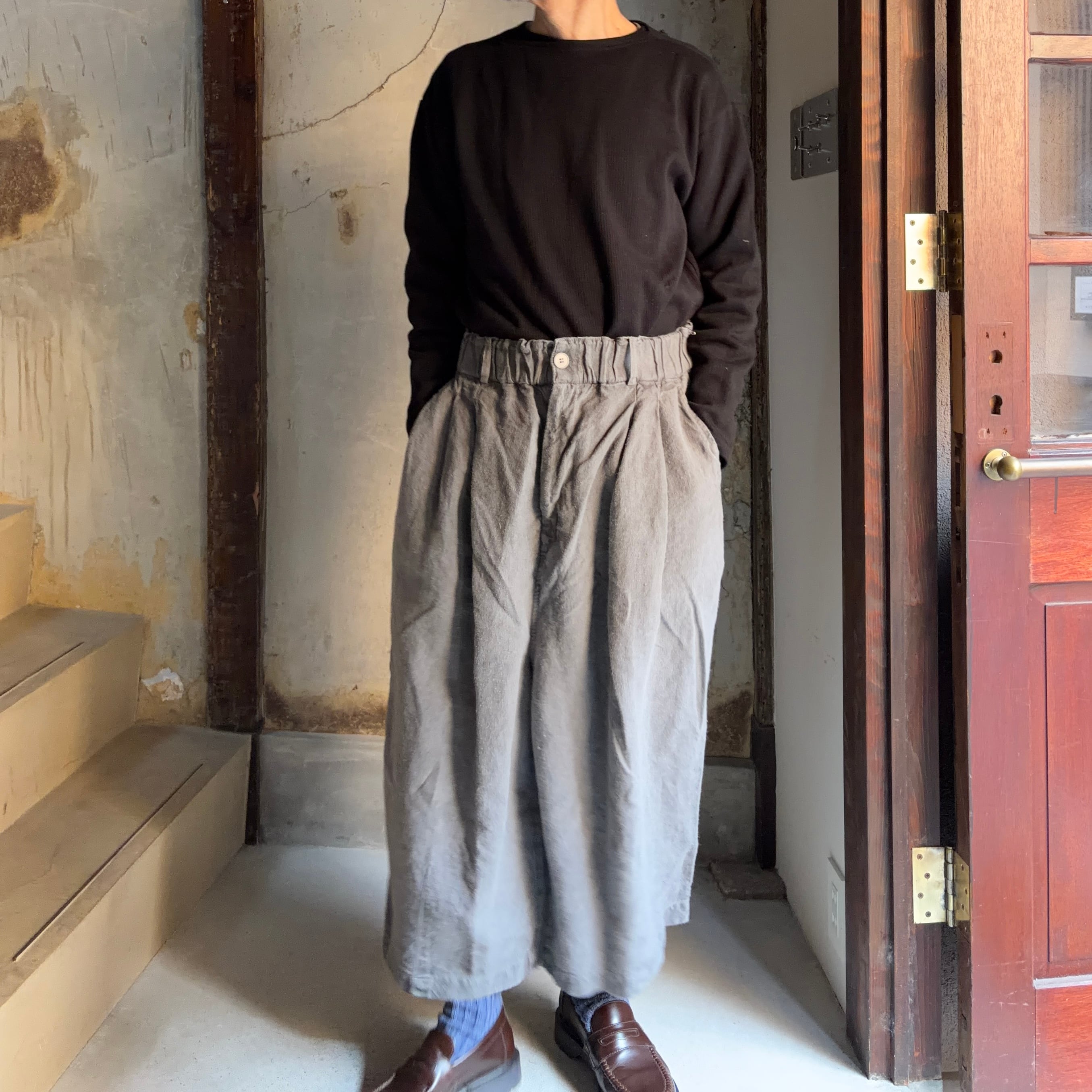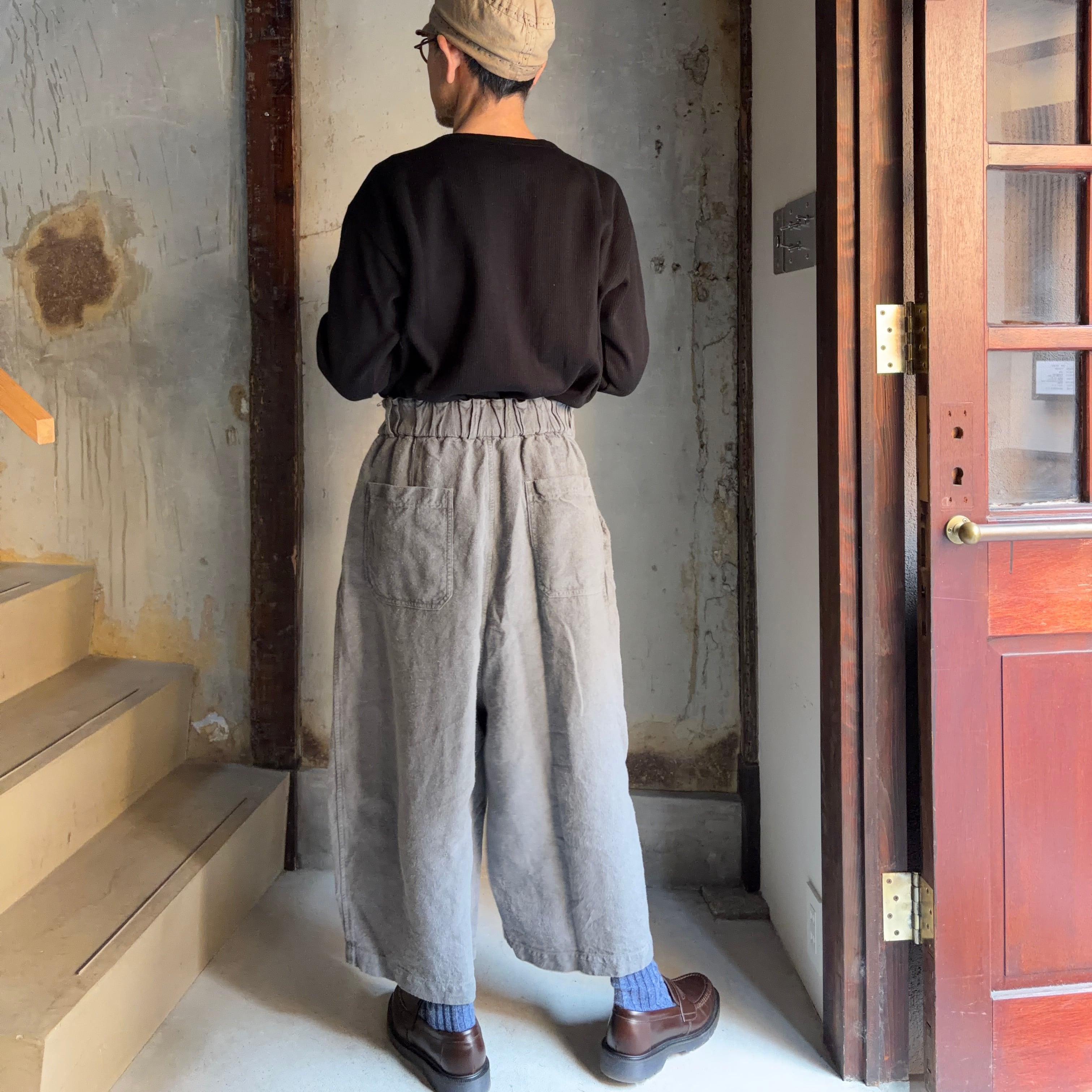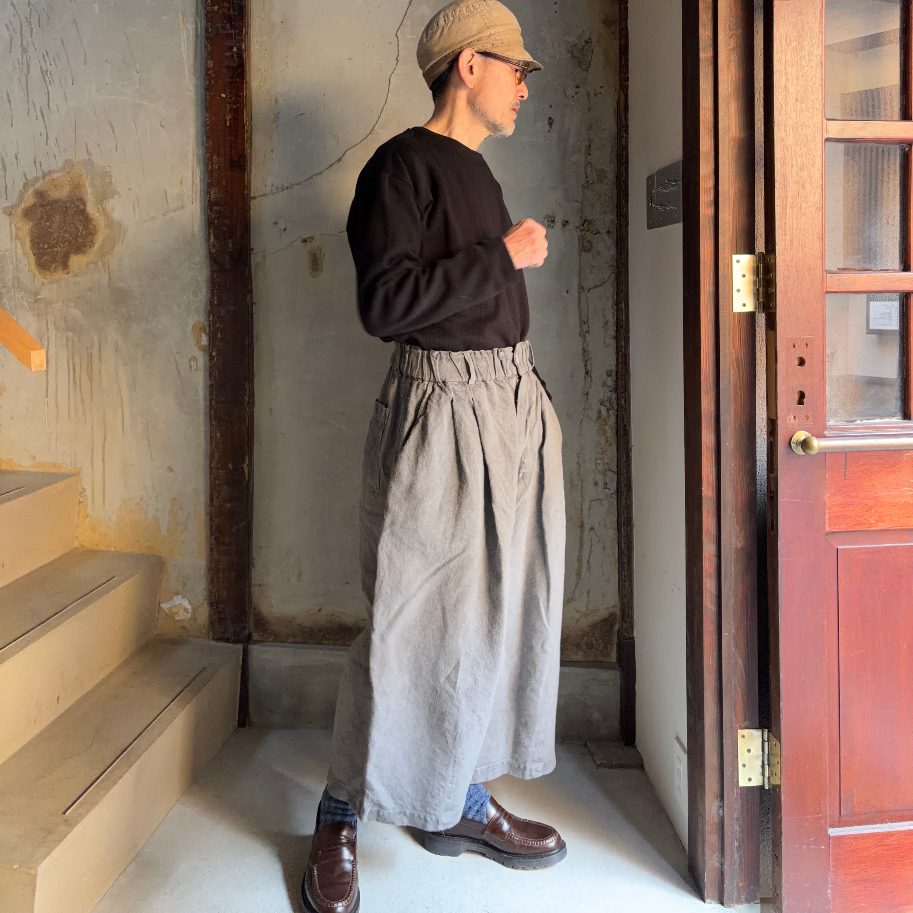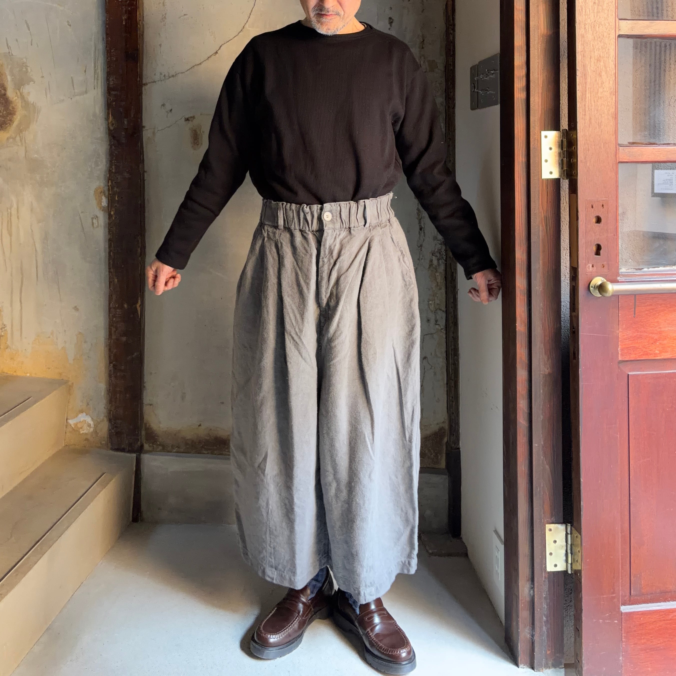 MITTAN PT-138 起毛大麻ワイドパンツ 薄炭