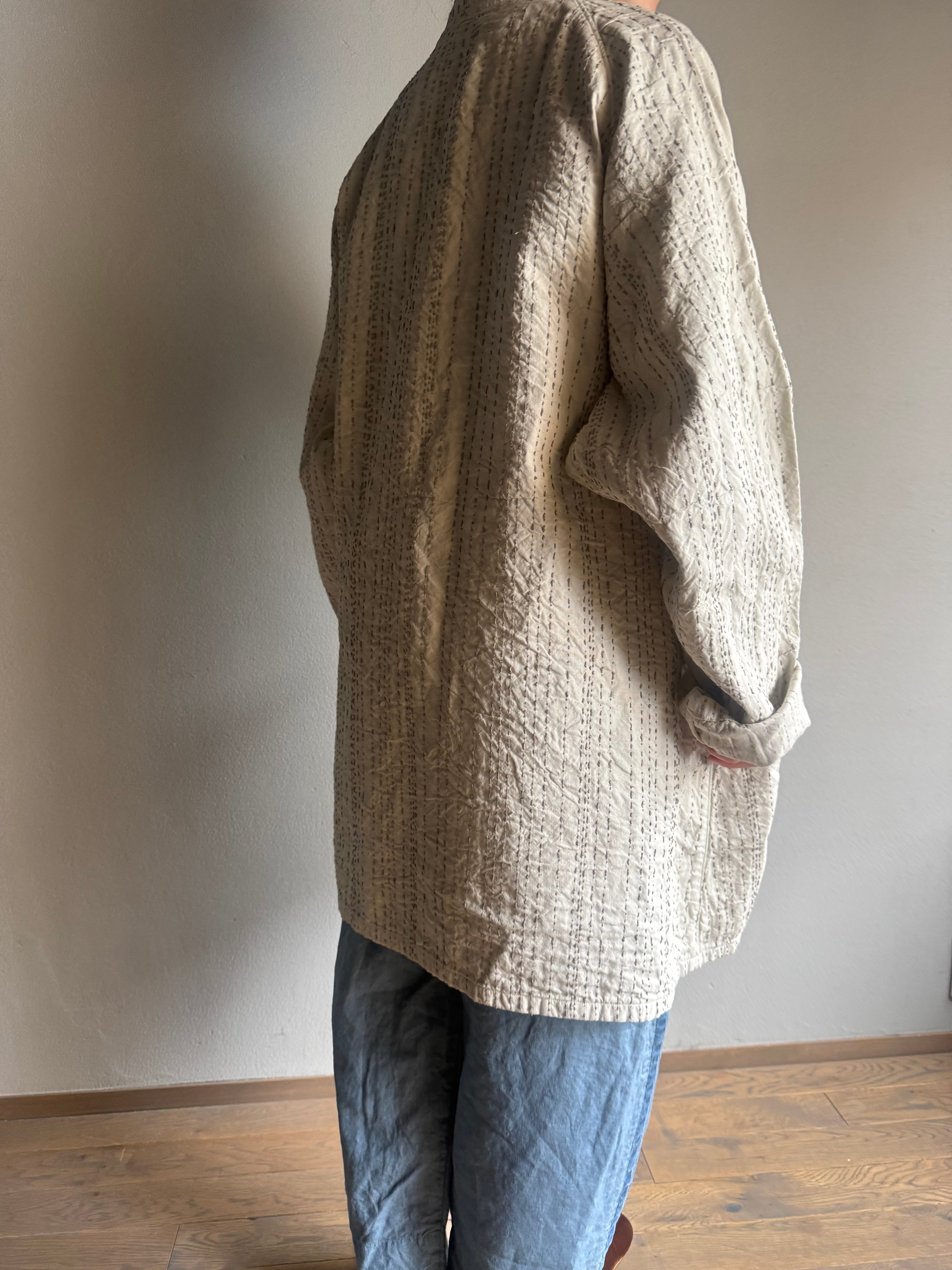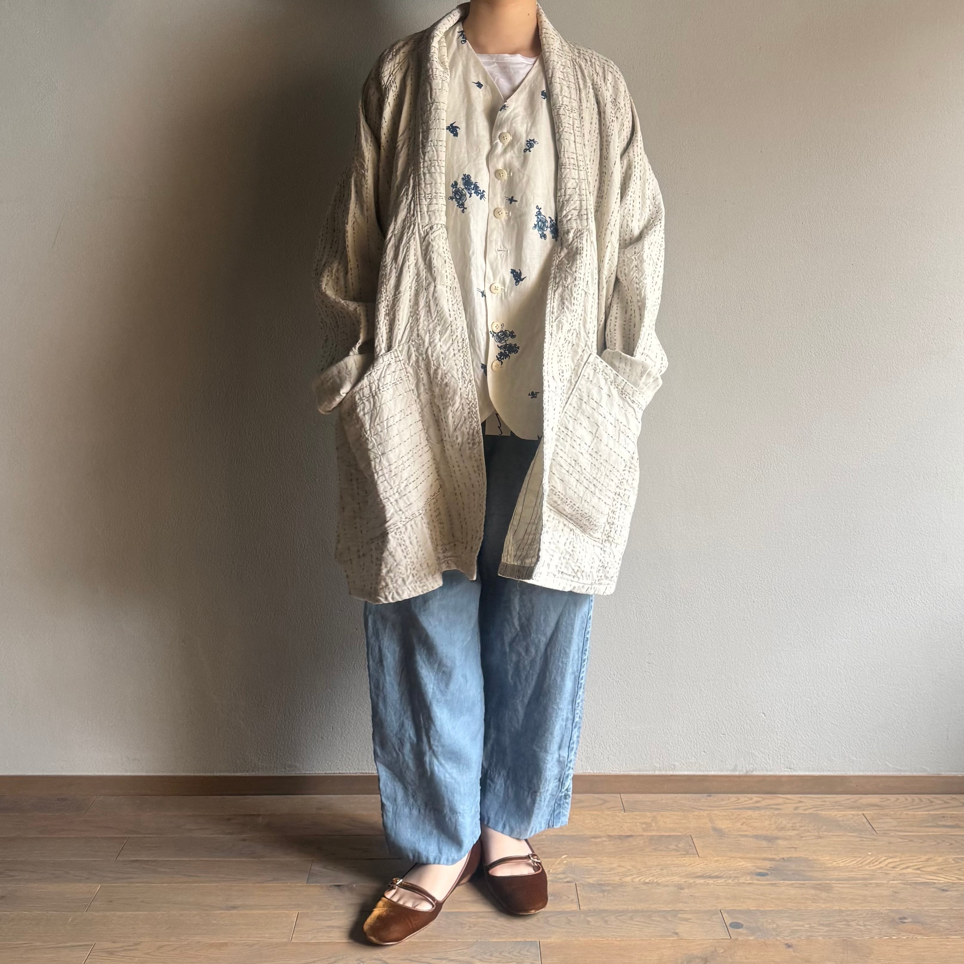 MITTAN JK-84B 薄手刺し子織羽織(ベンガラ染)ベンガラ白