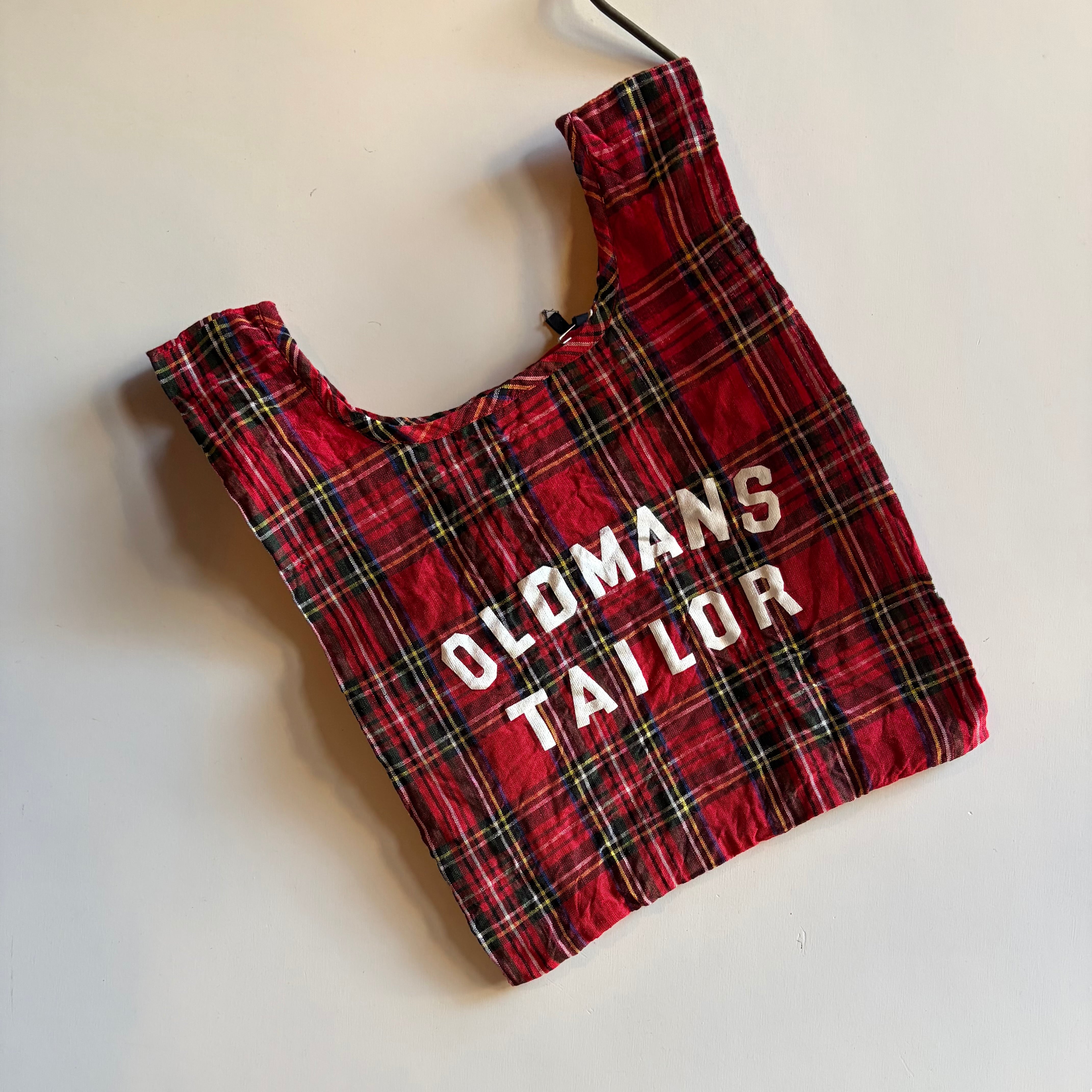 RED基調のリネンのタータン生地が、洗い晒したシワ感がまたかわいいです。