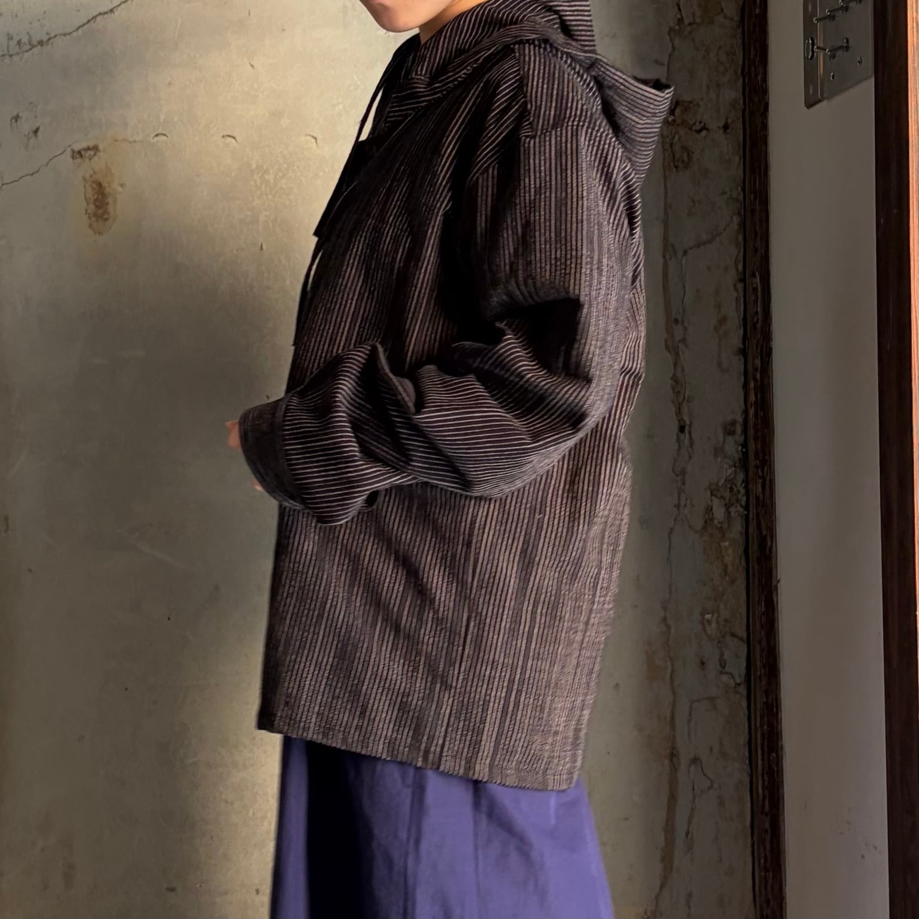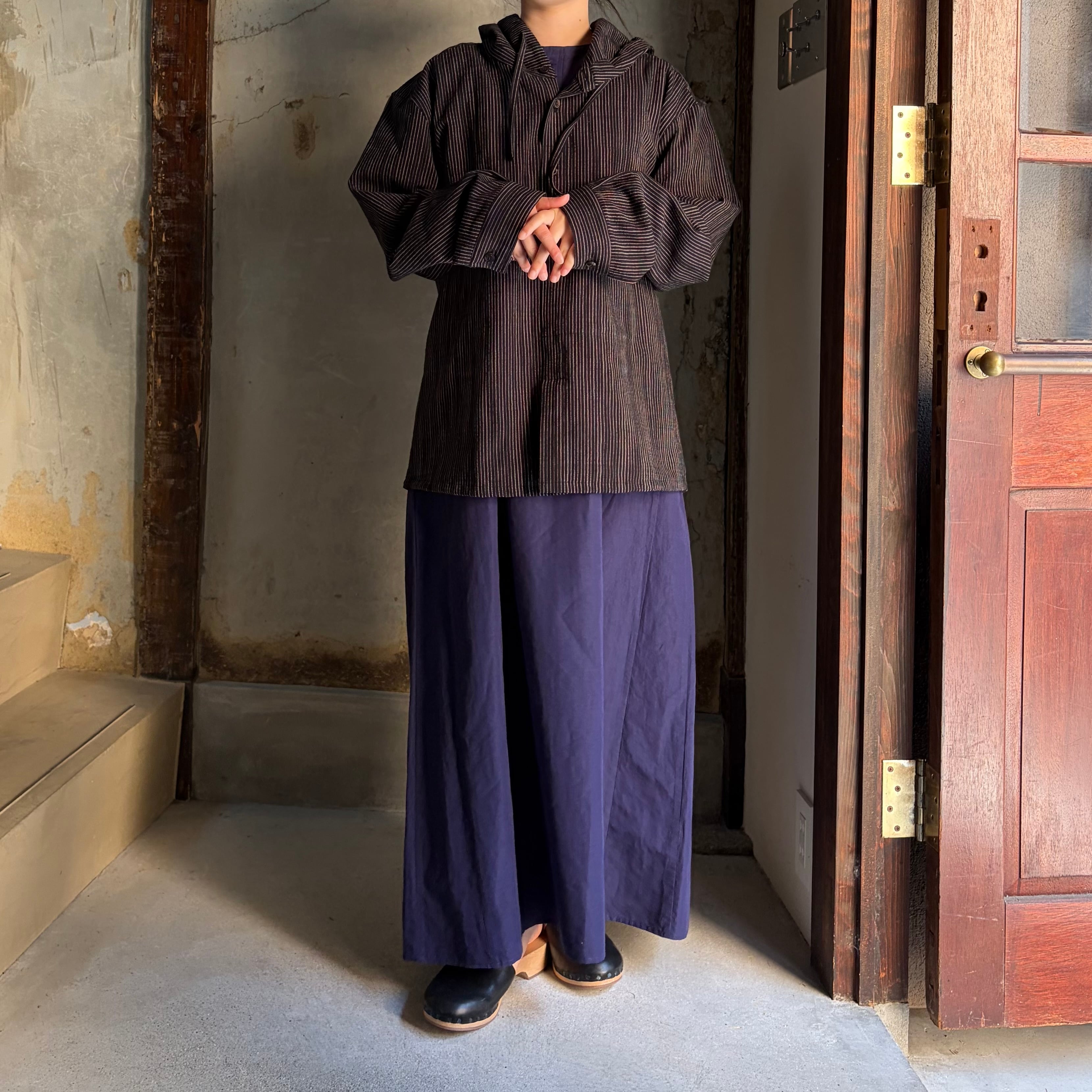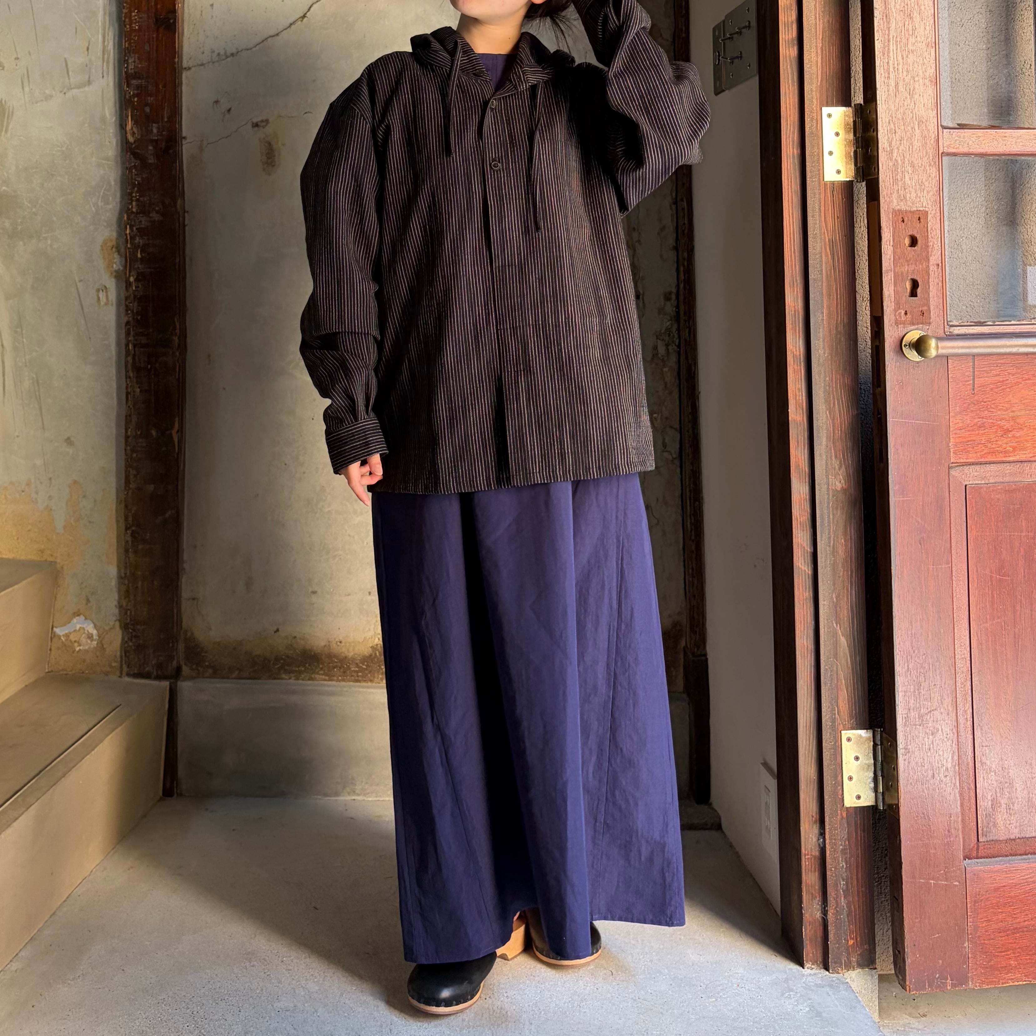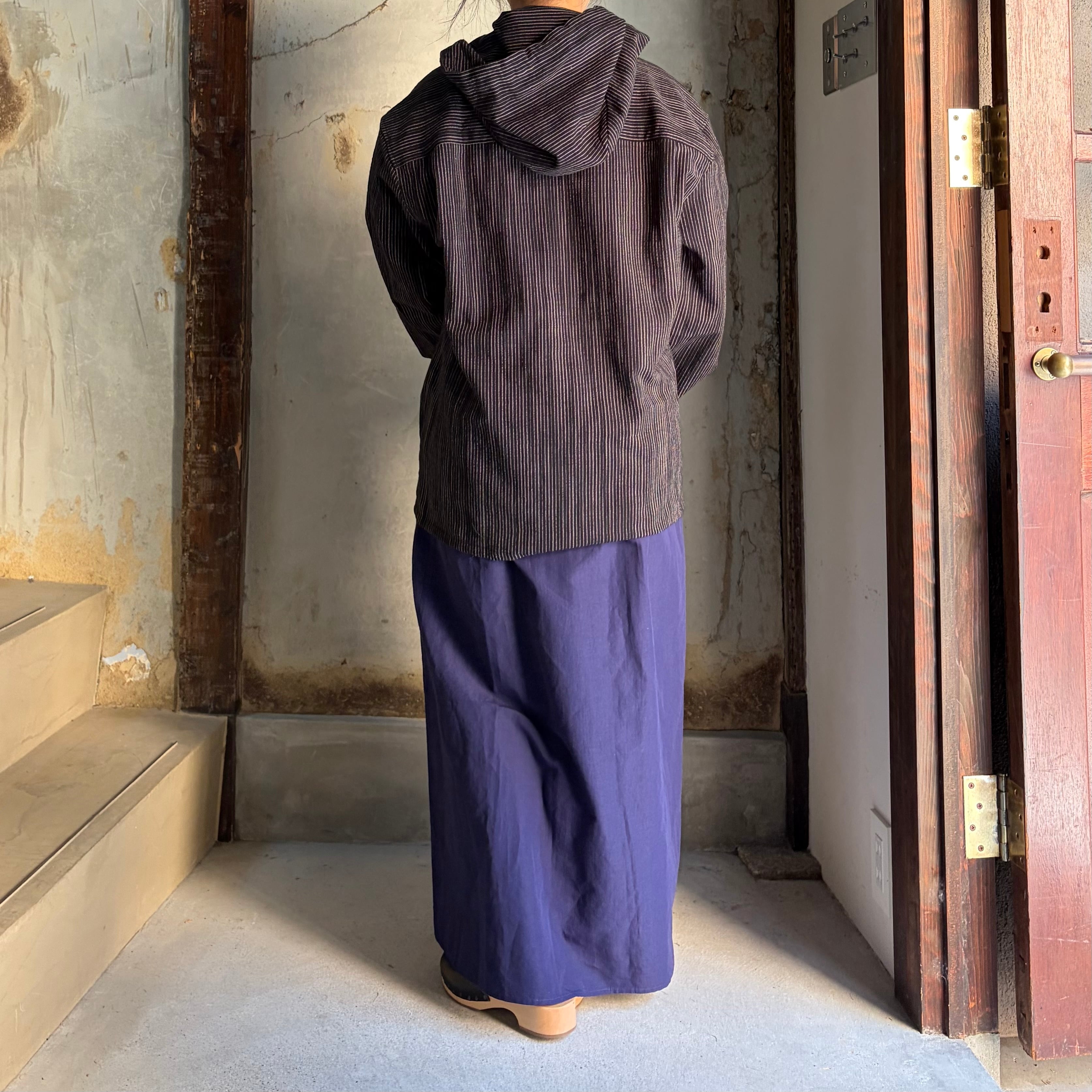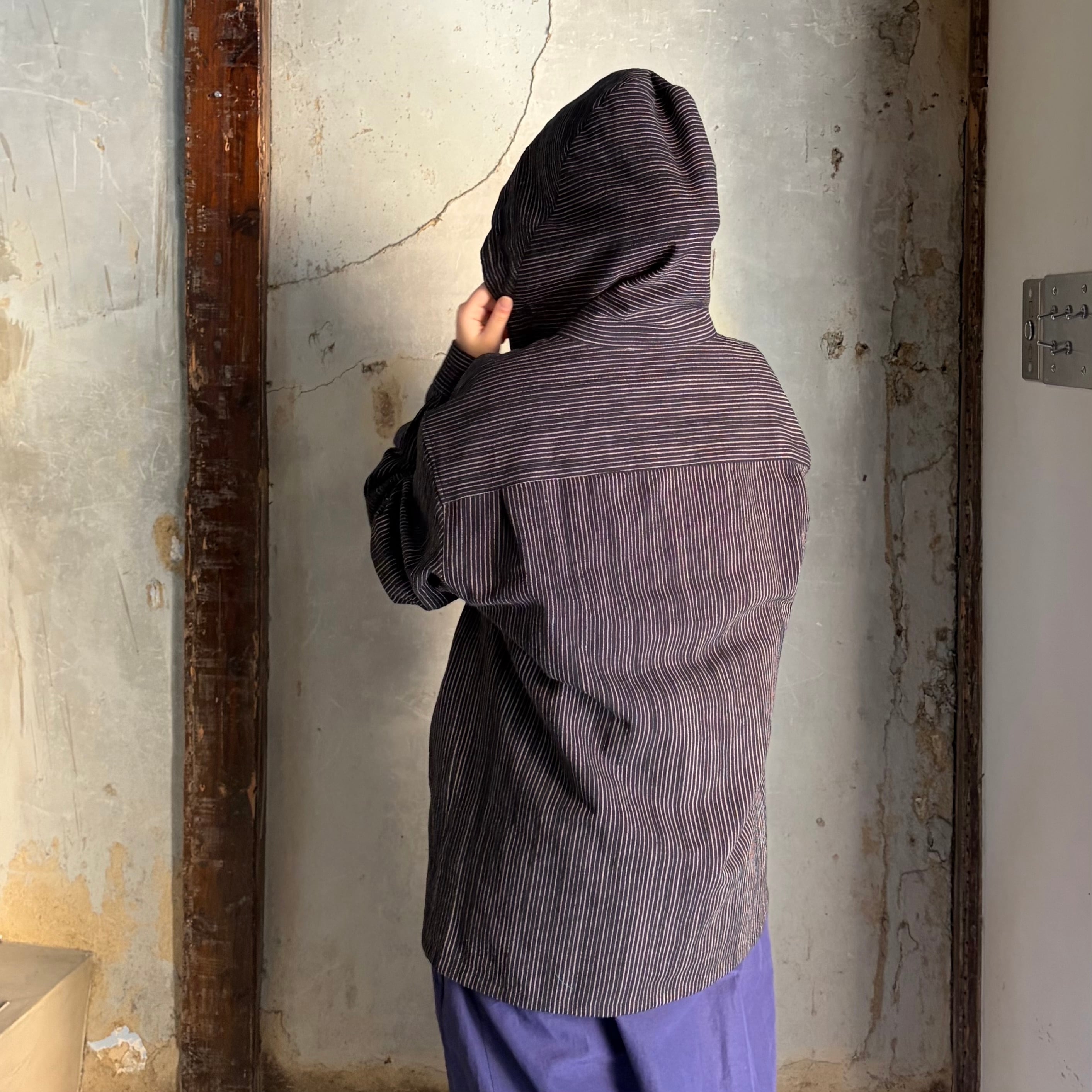 THE HINOKI/ザ・ヒノキ ORGANIC COTTON HOODED SHIRT /オーガニックコットン フーディッド シャツ BLACK STRIPE #TH26S-17 size 3