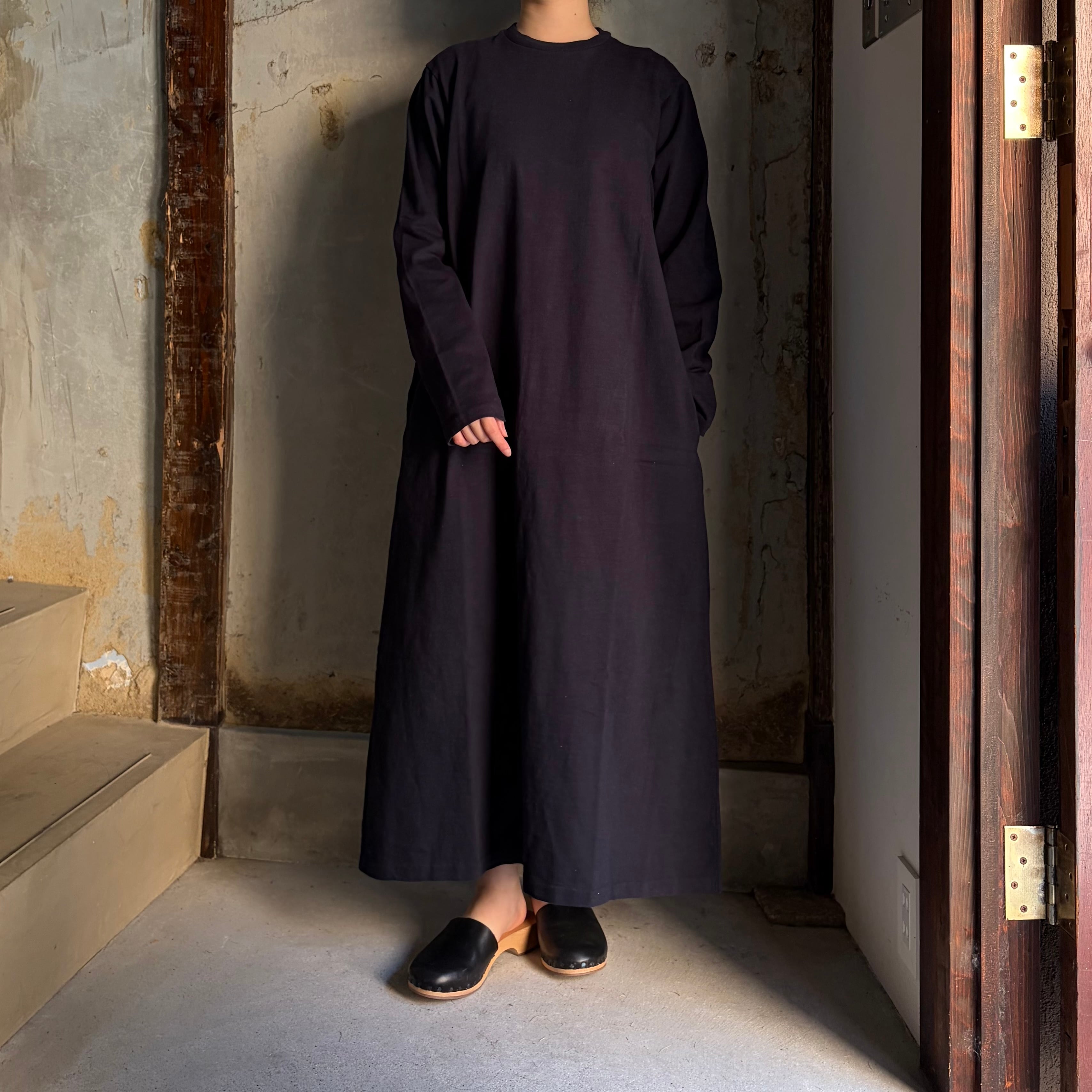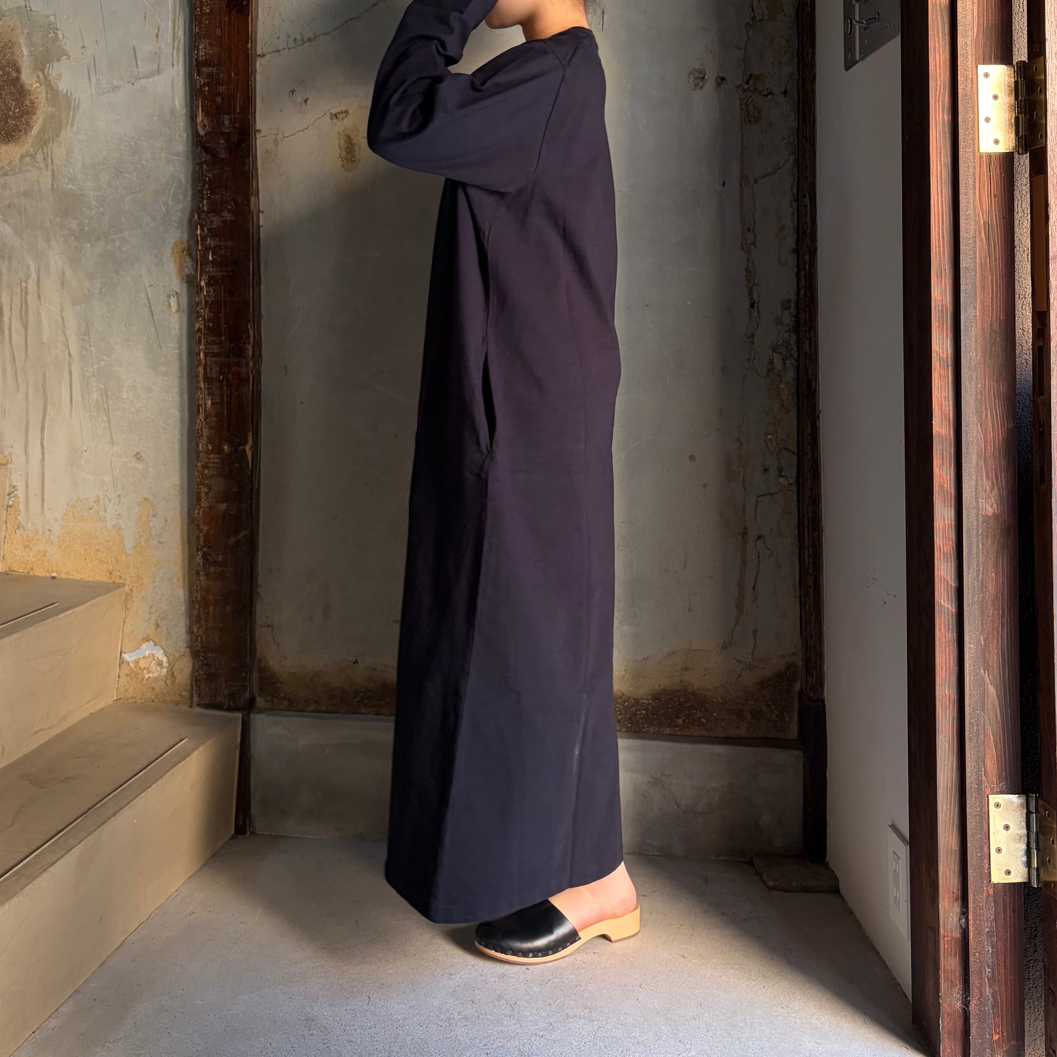 YAECA /ヤエカ Slub Yarn T-Shirt Dress ムラ糸 Tシャツ ロングスリーブワンピース #32061701 NAVY (WOMEN) size M