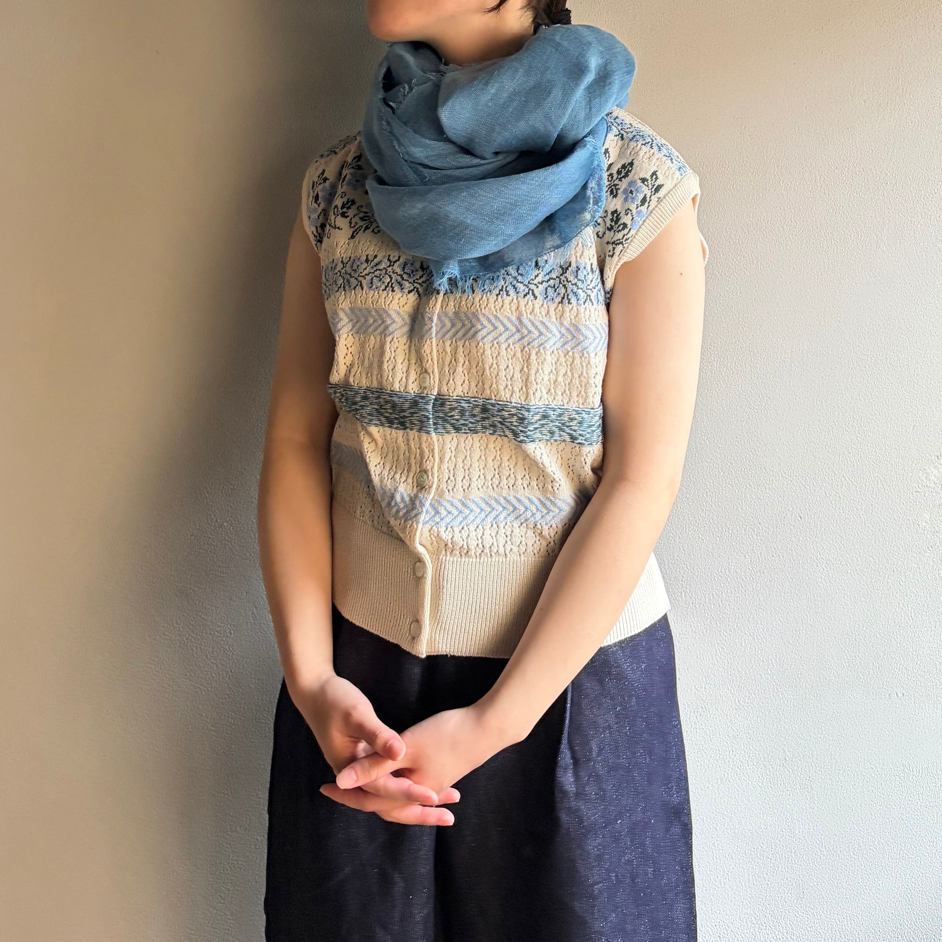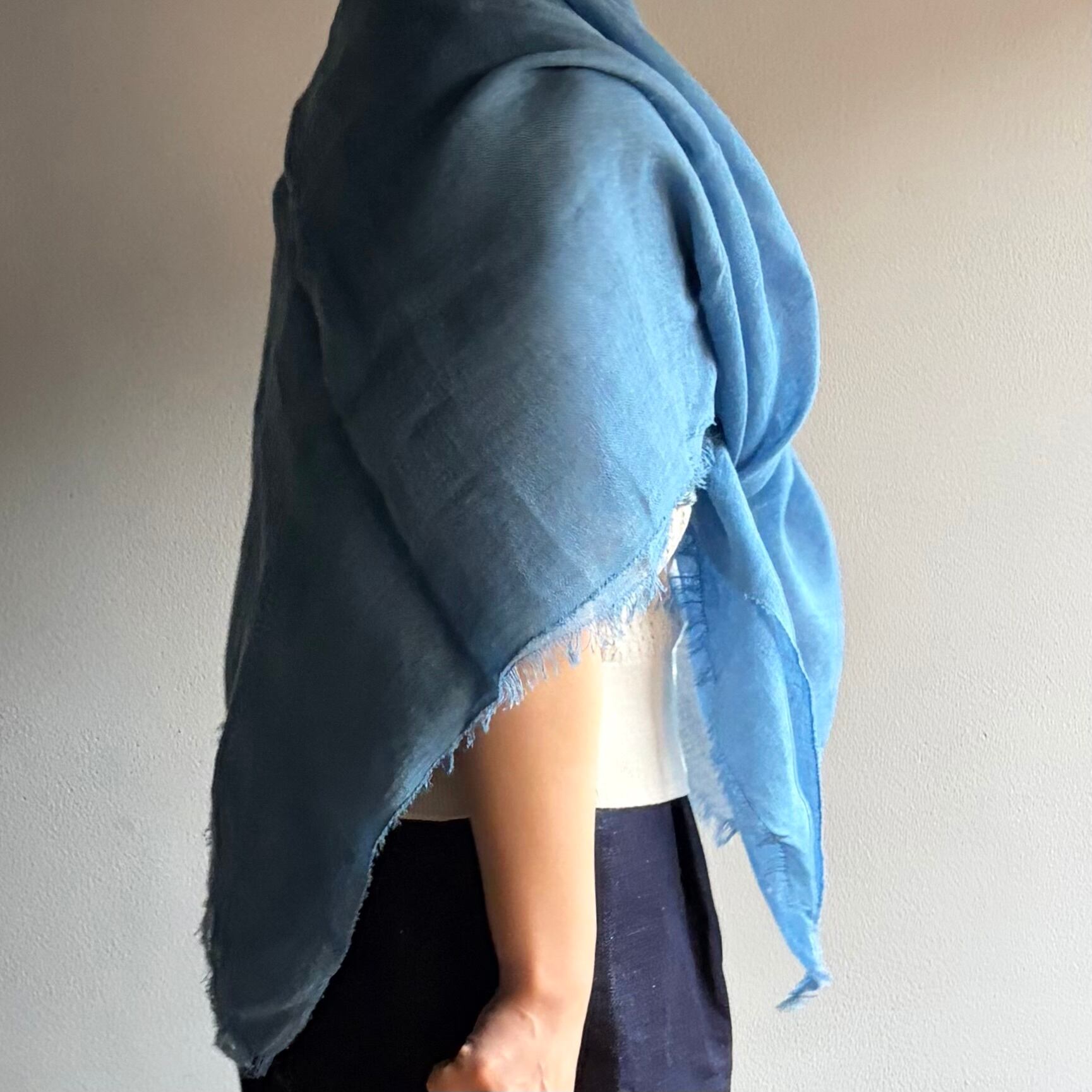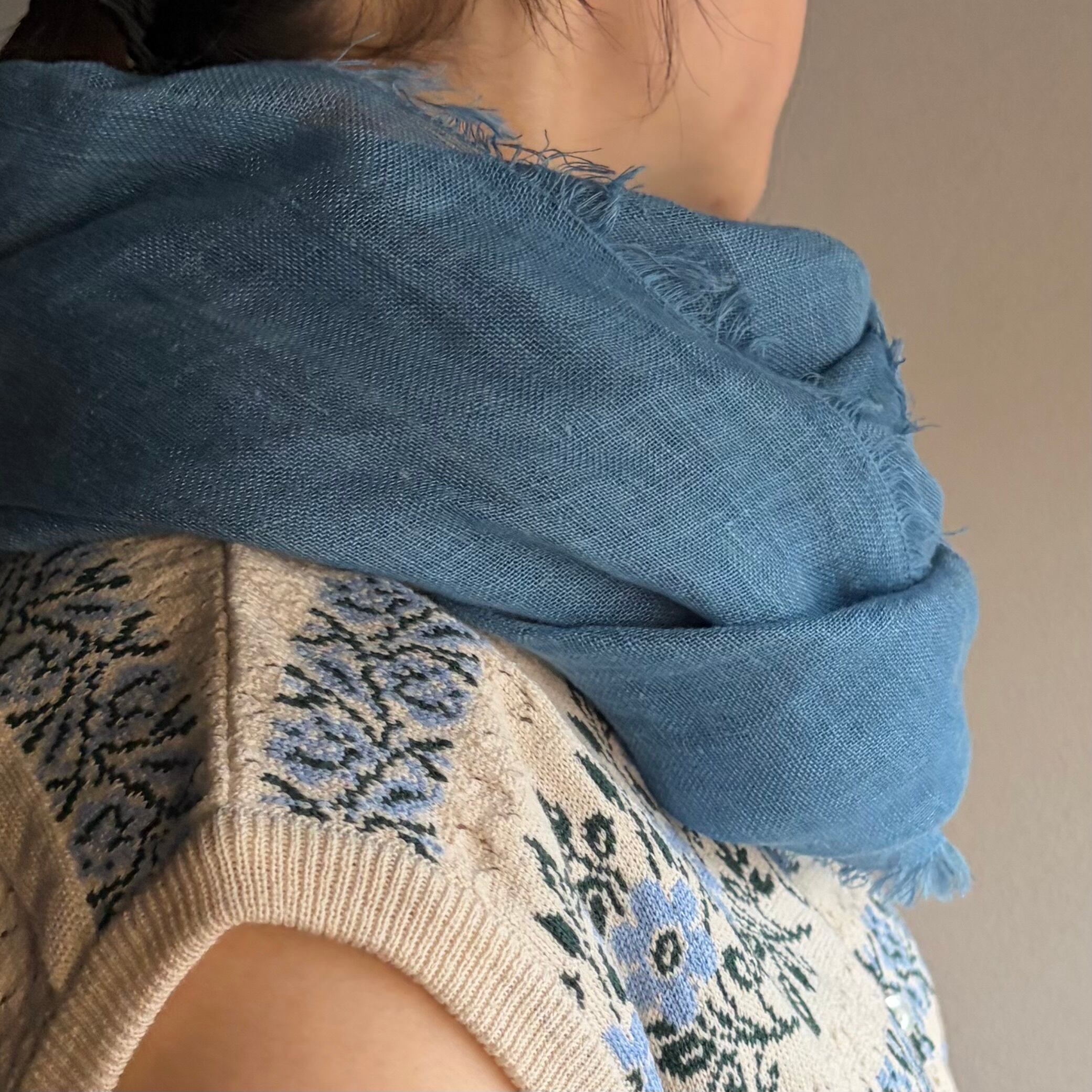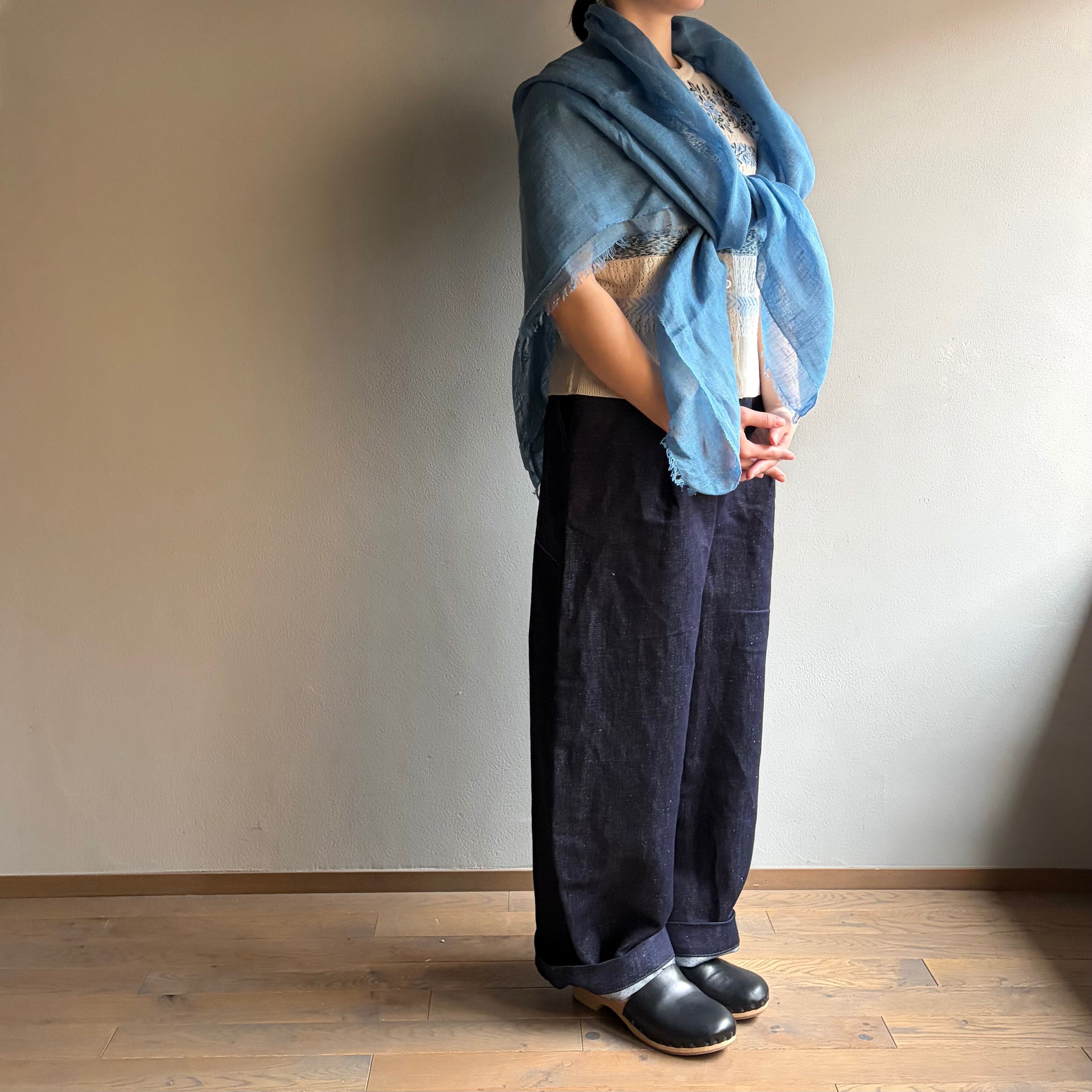 MITTAN SC-54C 薄手大麻四角ストール(草木染)藍(淡)