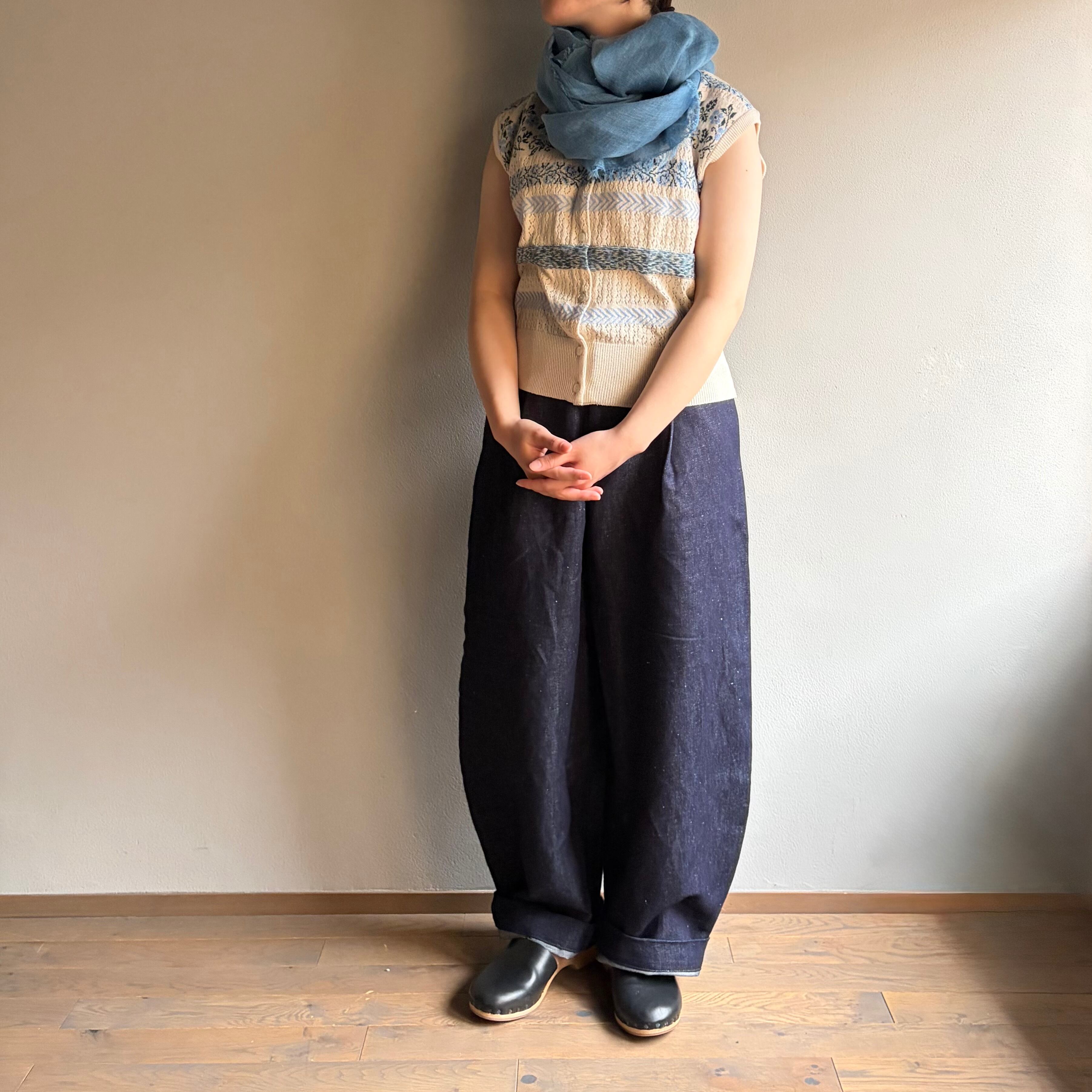 ※天然藍で染色しています。使用を繰返すことで淡い色へと変化していきます。色移りの可能性があるので、初めは淡色のものとの使用は控え、中性洗剤で洗濯し、陰干してください。製品染めの為、1点1点、色の出方やサイズが微妙に異なります。(藍・藍×胡桃)