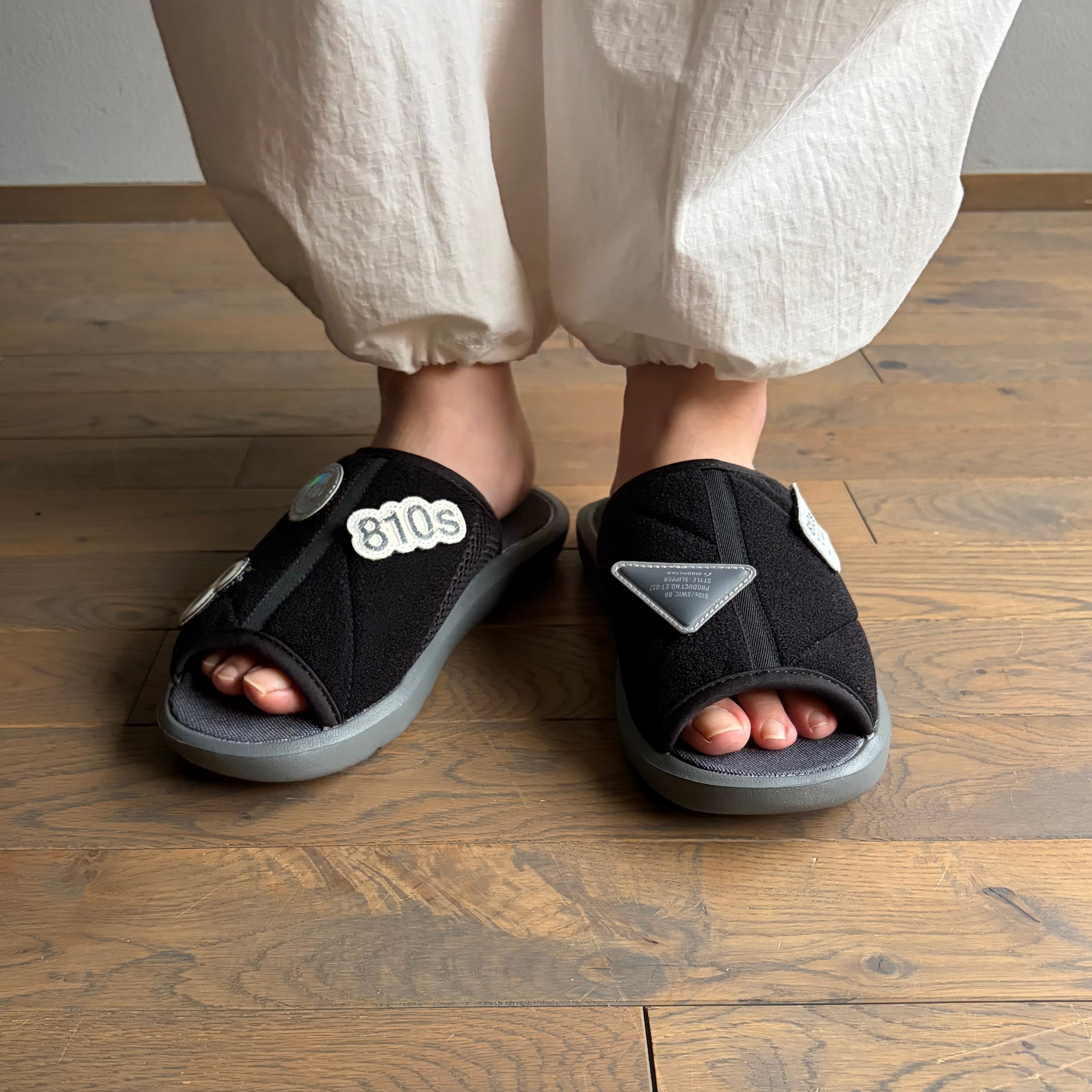 810sで過ごす「室内時間」をテーマに、学生用の校内履きをルーツモデルにデザインされたSWICに、マジックテープで着脱可能なワッペンが付属したタイプ、スウィックBBが誕生しました。オフィスや学校で、ちょっと個性を演出でる、楽しみ溢れるスリッパタイプのシューズです。