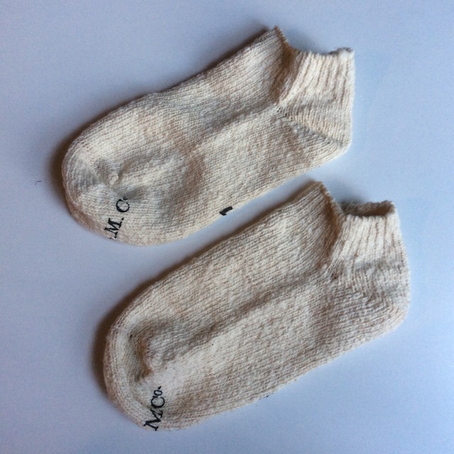 アンクル丈の気持ちのよいガラ紡ソックス。程よい厚みが冷