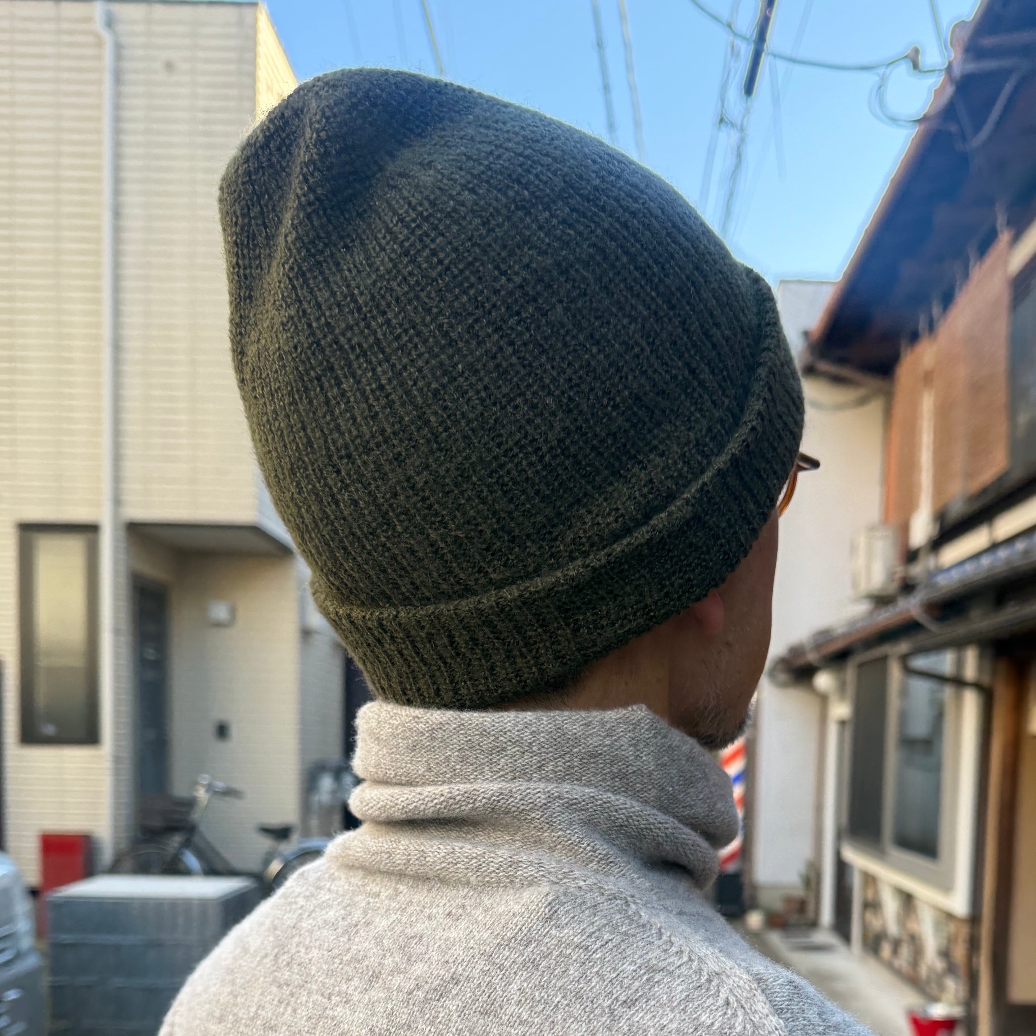 ボリュームも高さも合わせやすいニット帽です。