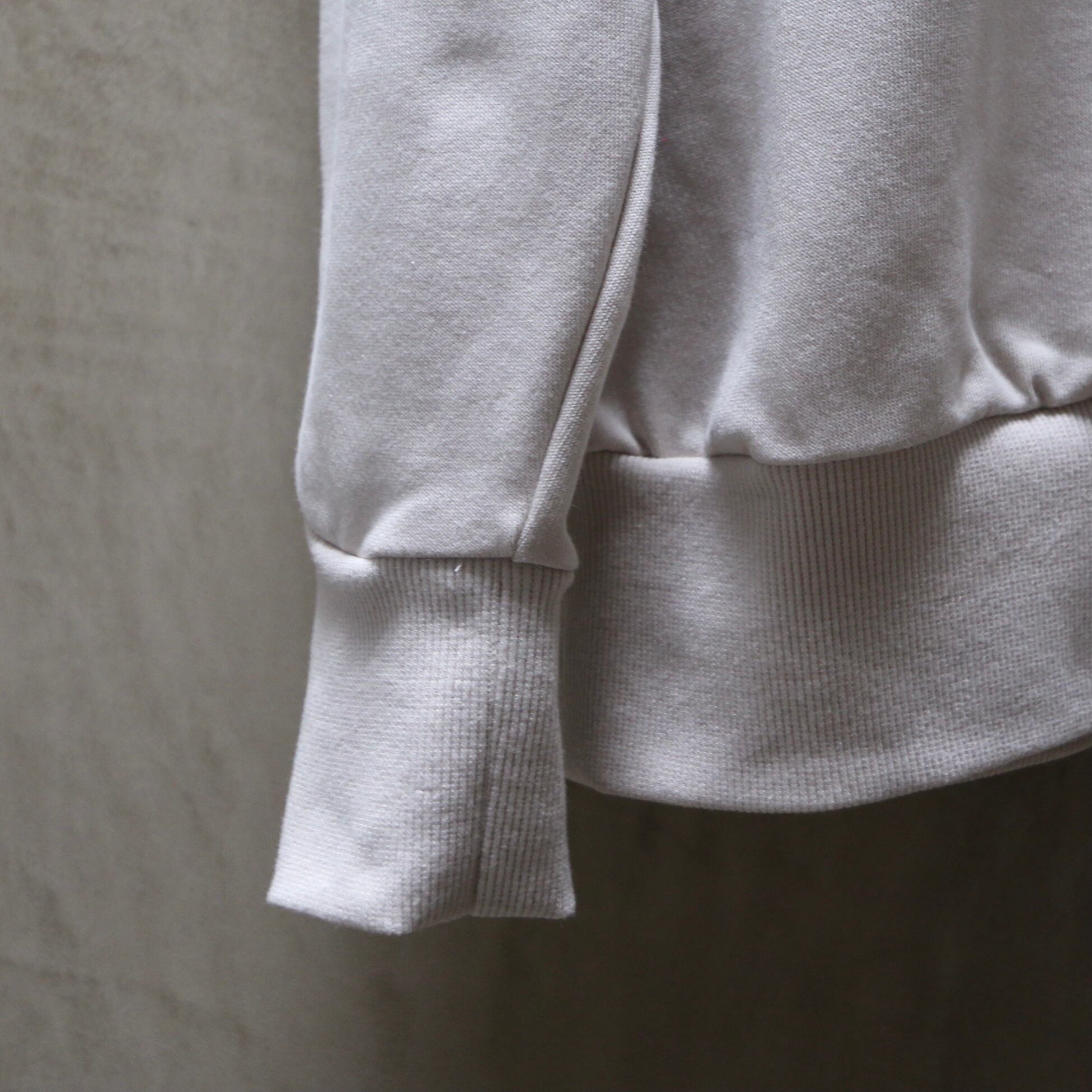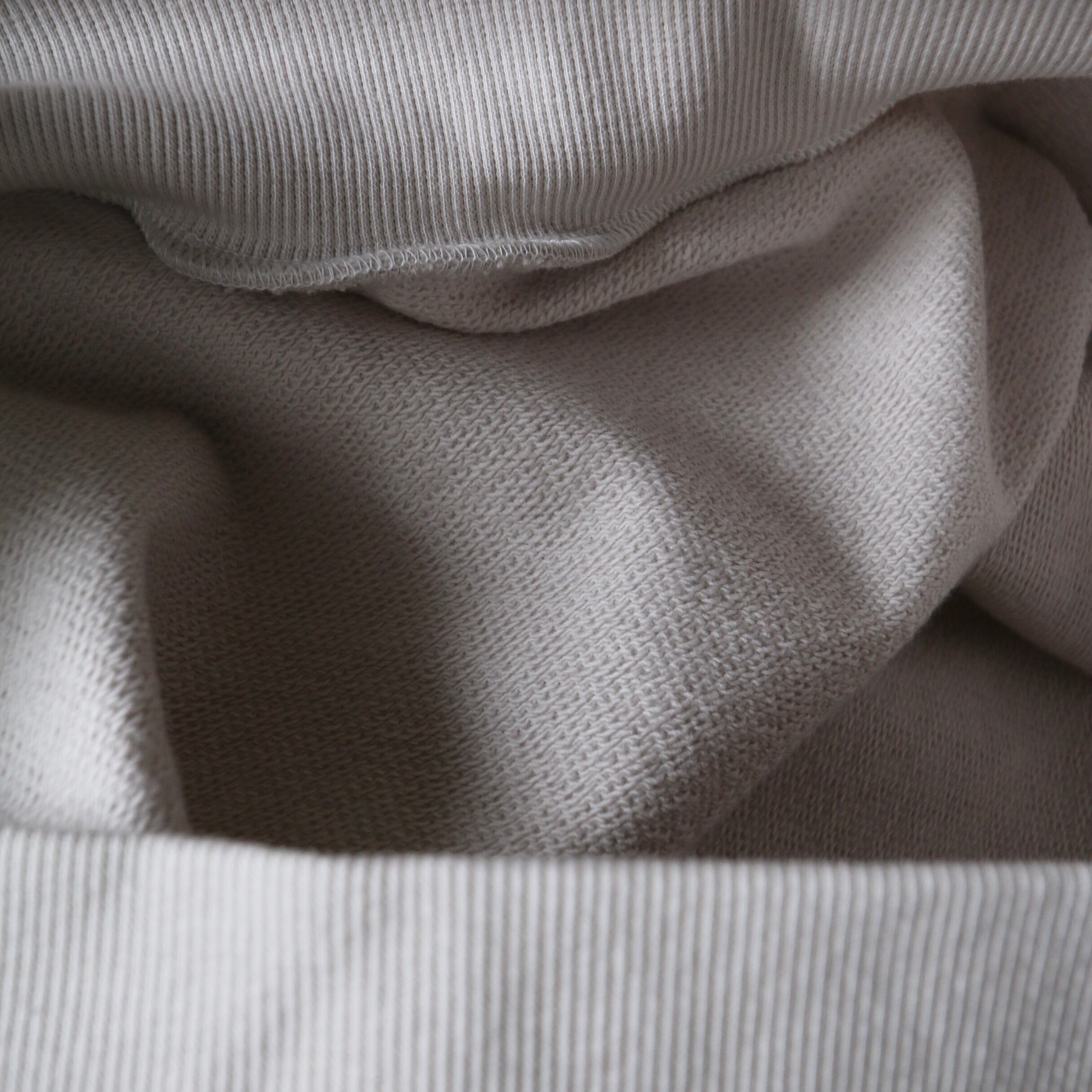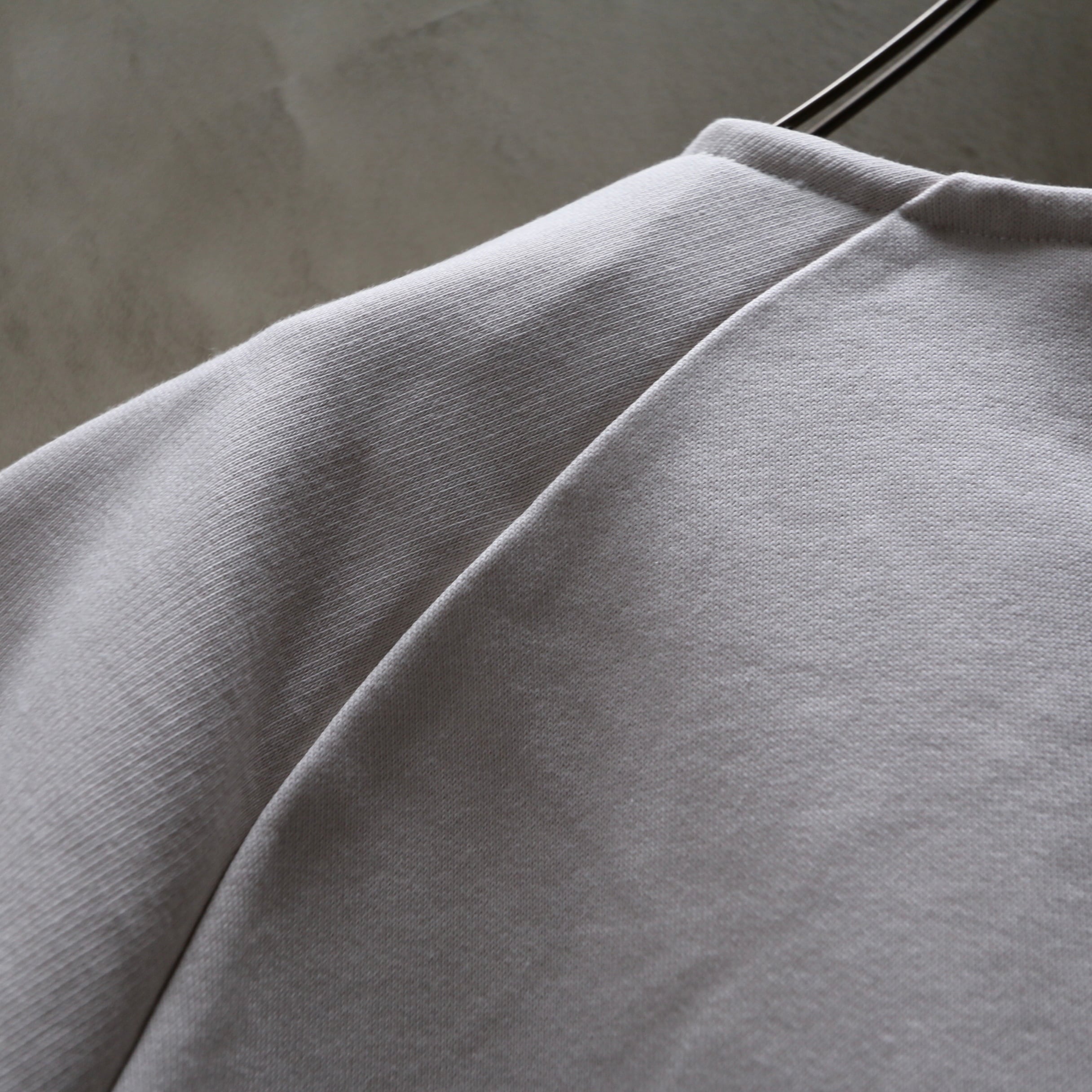 ジャケットの下にも着られる綺麗めな裏毛カットソー。首周りの開きをT字にすることで、インナーのシャツの第一ボタンを開けたり、ネクタイを閉めたりなどの表情が生まれるようになっています。