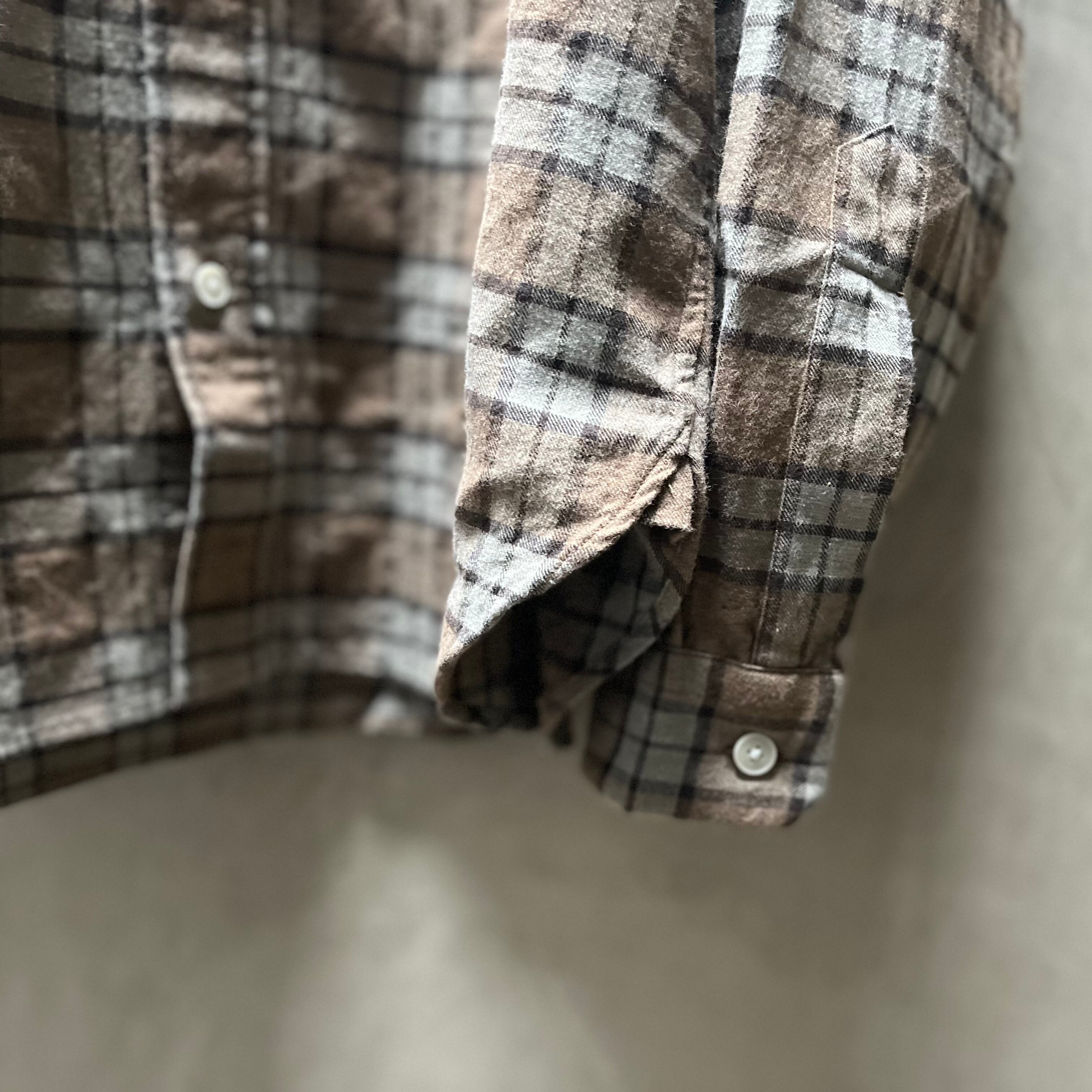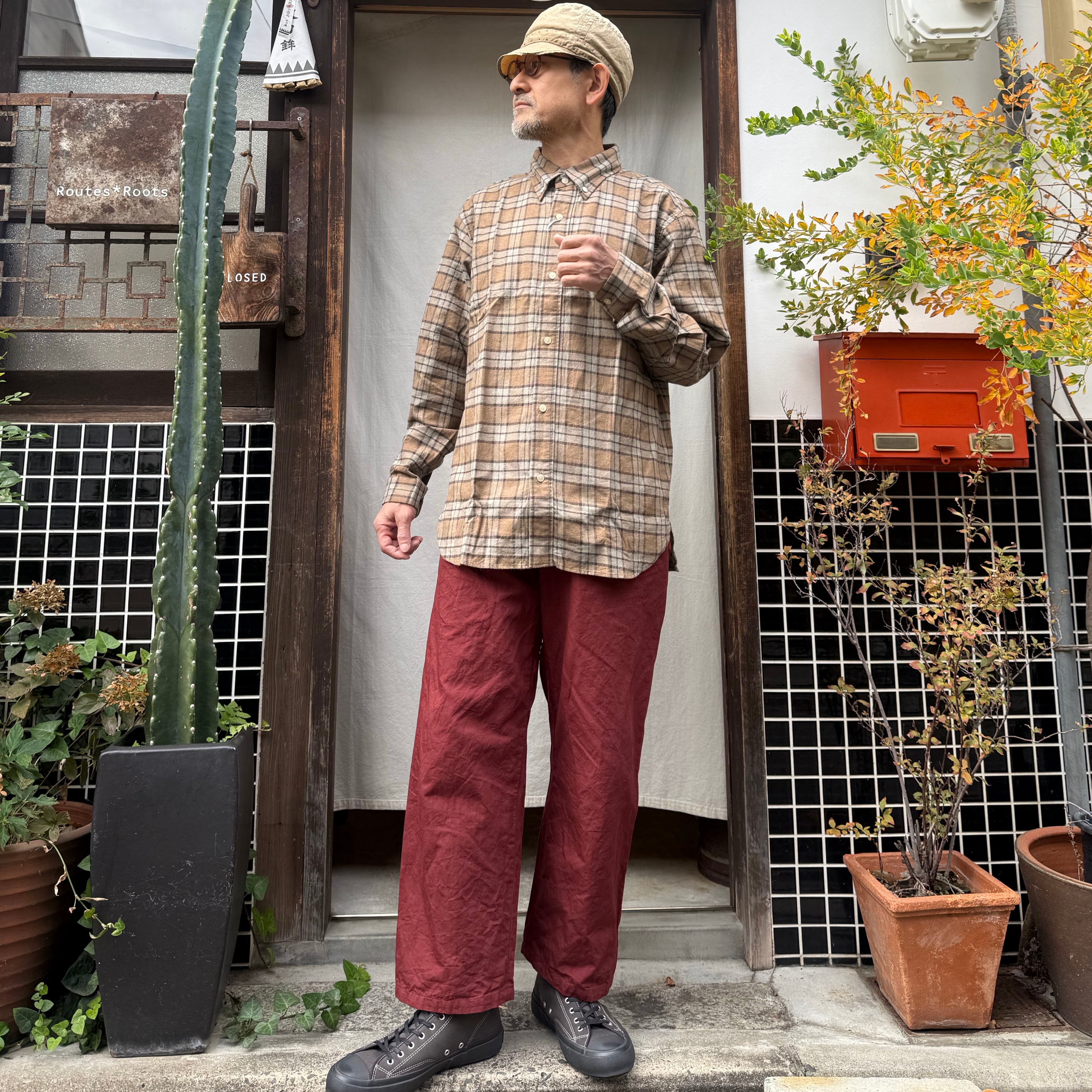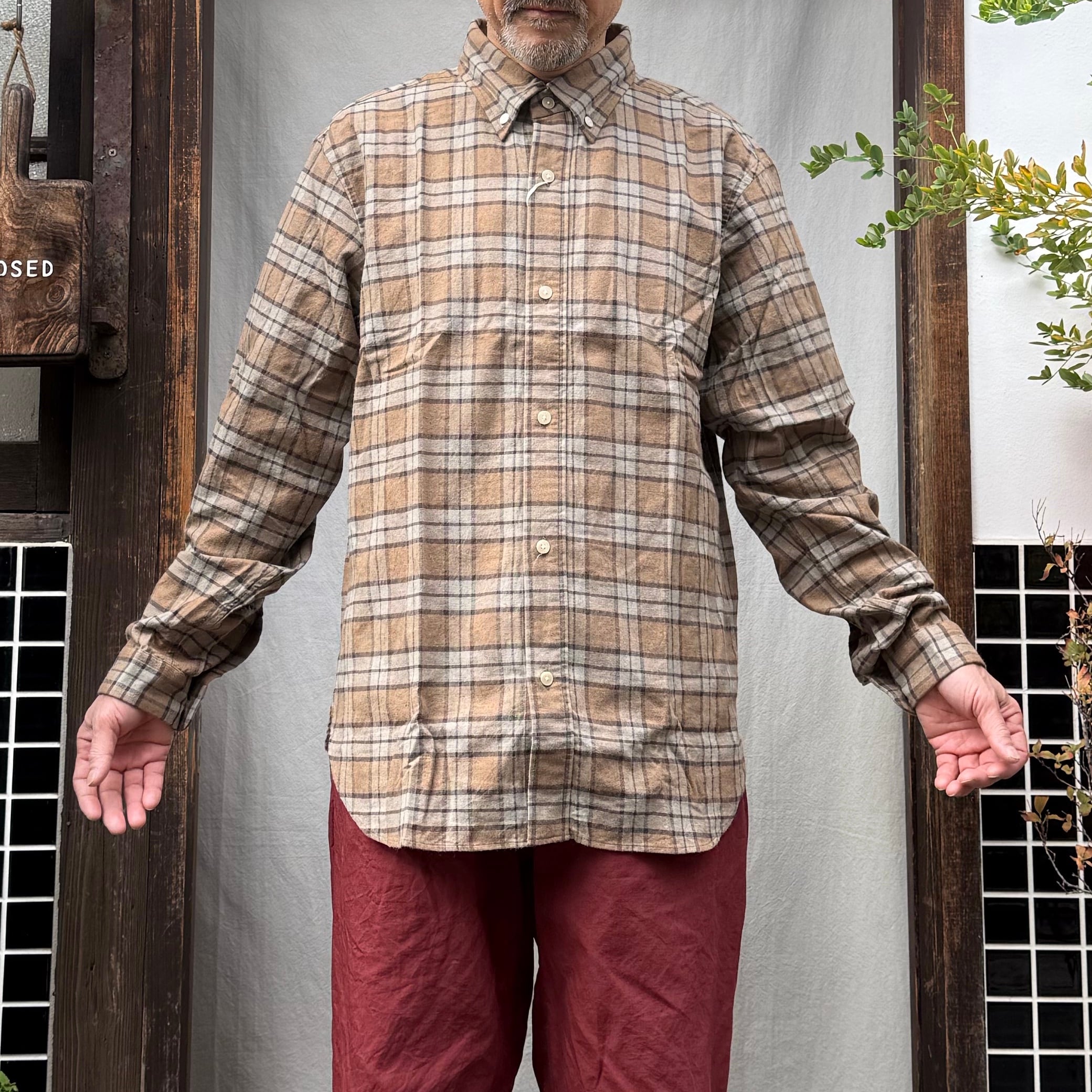 やや起毛感のあるやわらかいコットンのボタンシャツ。少しオーバーサイズ気味の男女問わず着ていただけるunisexのアイテムです。大柄なチェックですが、絶妙な色のあわせでアースカラーをはじめ、主張しすぎずコーデになじみやすいアイテムです。