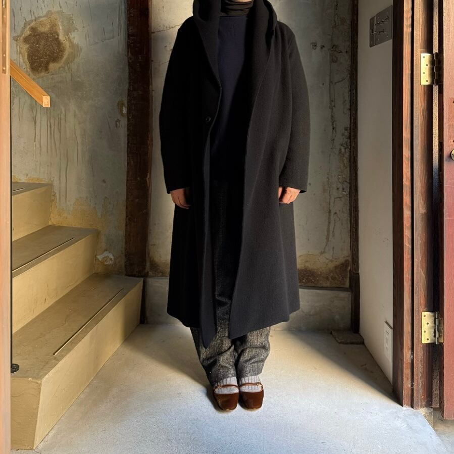 R&D.M.Co-/OLDMAN'S TAILOR WOOL FELT KNIT LONG HOODIE COAT(ウールフェルトニットロングフーディコート) #5237 black