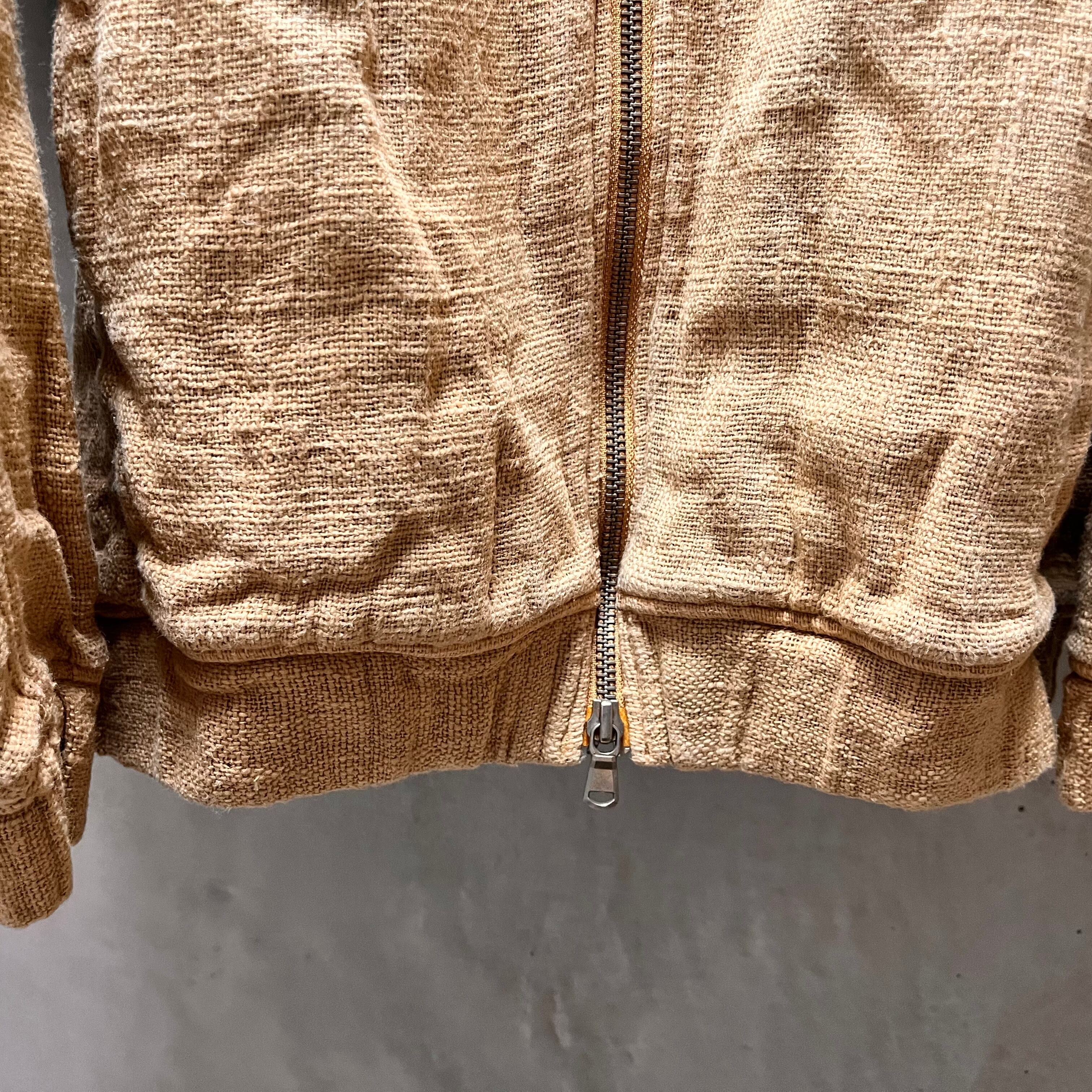 ウコンで濃く染め上げたシングルニードルコットンのブルゾン。肌触りが気持ちよくお色もふっくらとした奥行きのある茶色が合わせやすく季節長く着用いただけるオススメのブルゾンです。