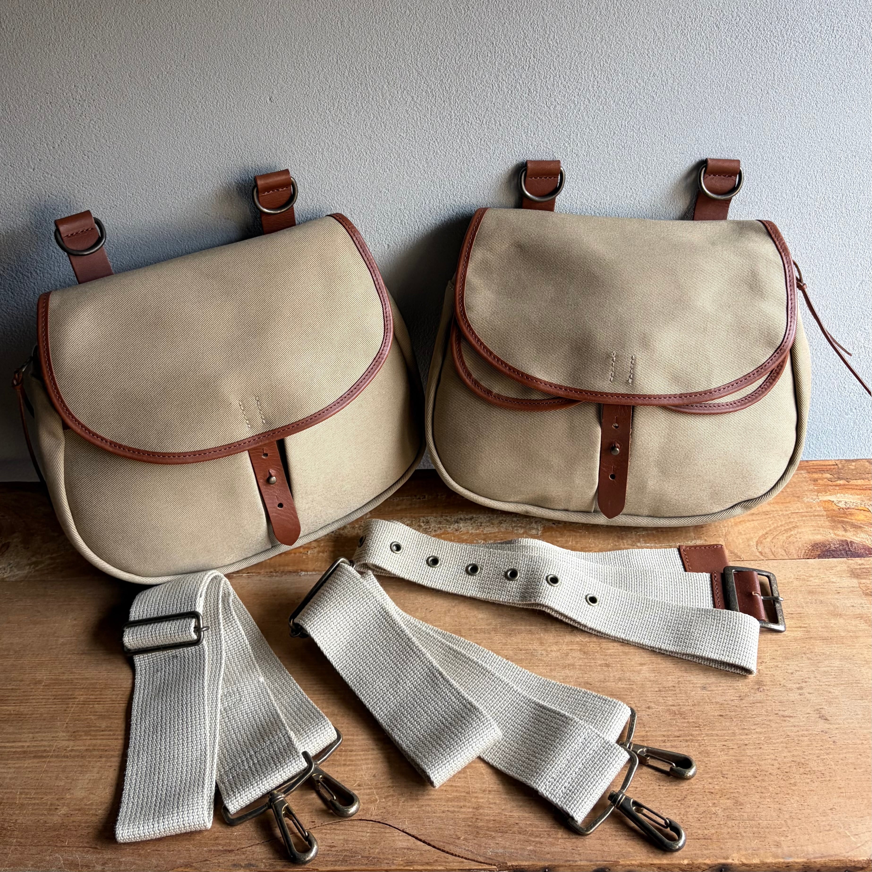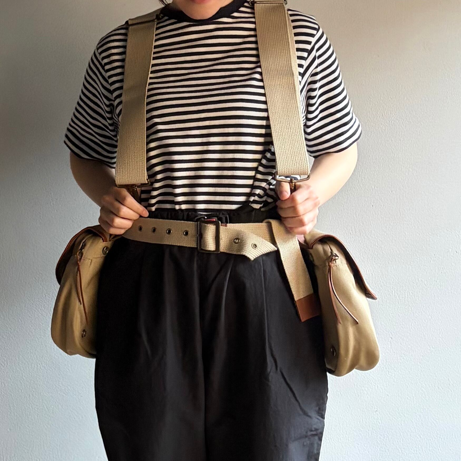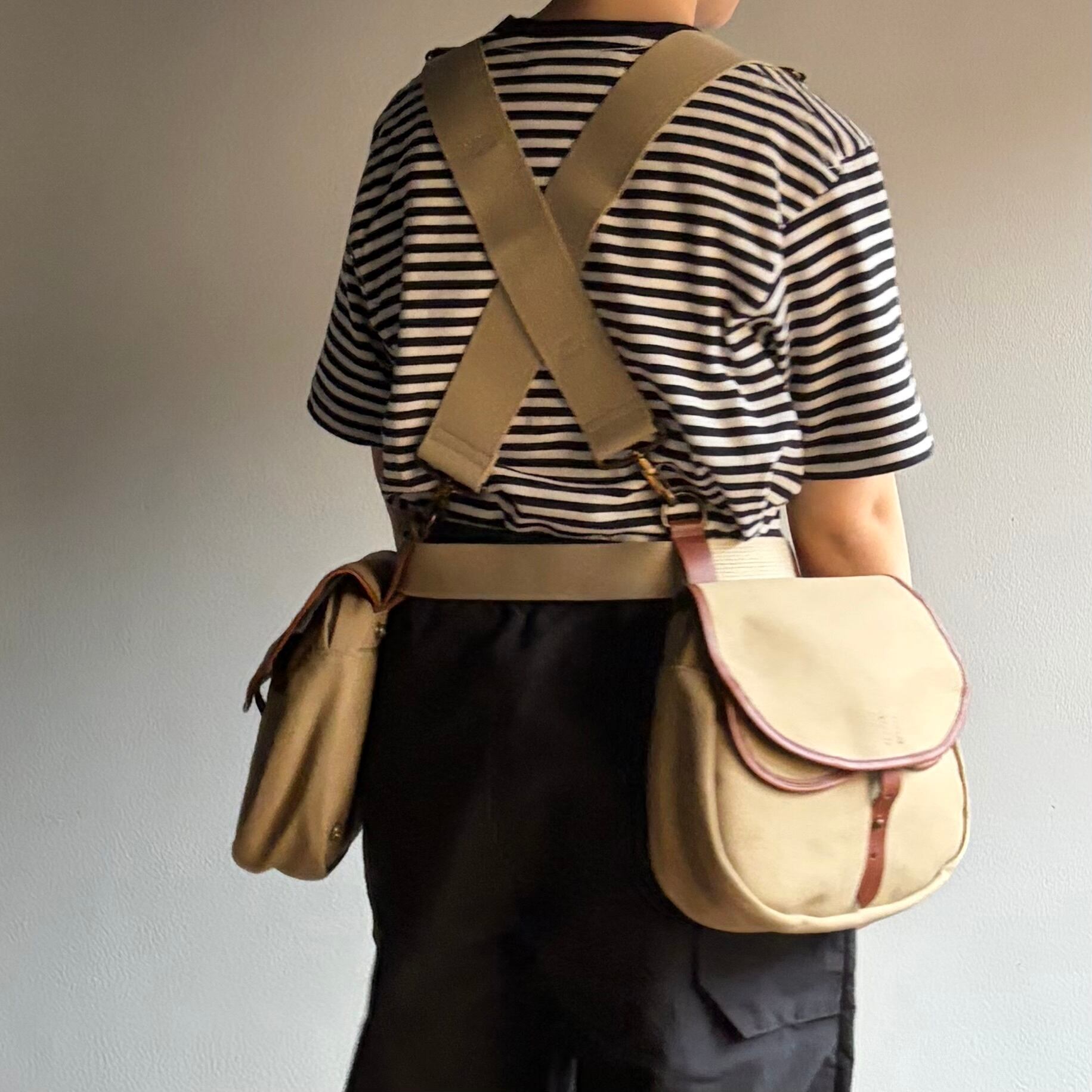 馬に乗る際に身に付けるバッグ。双子のような二つのバックは、ショルダー紐により