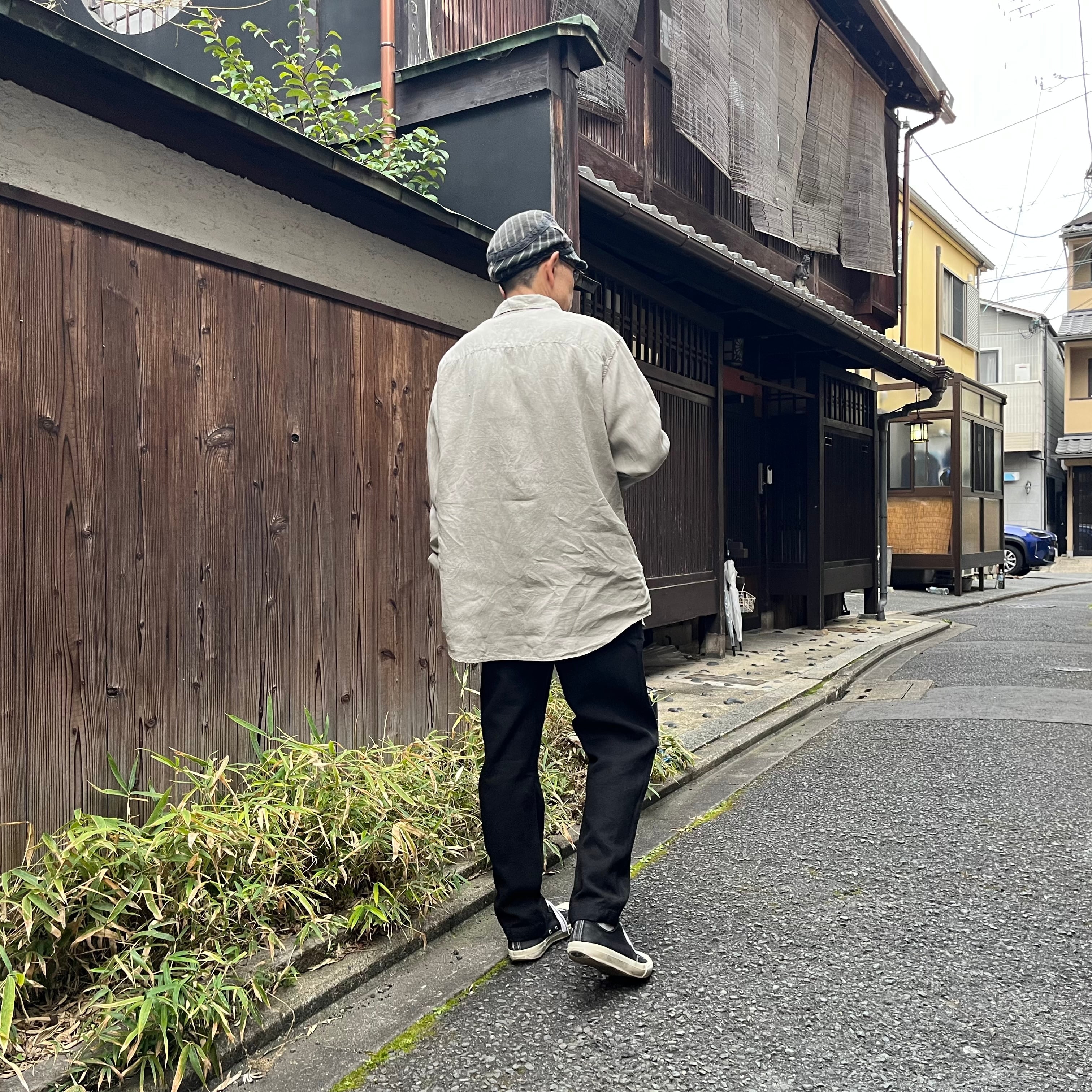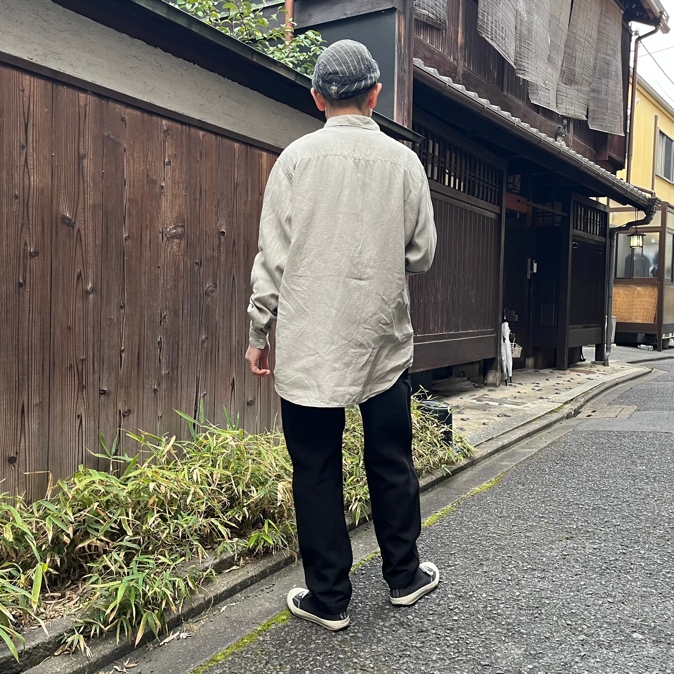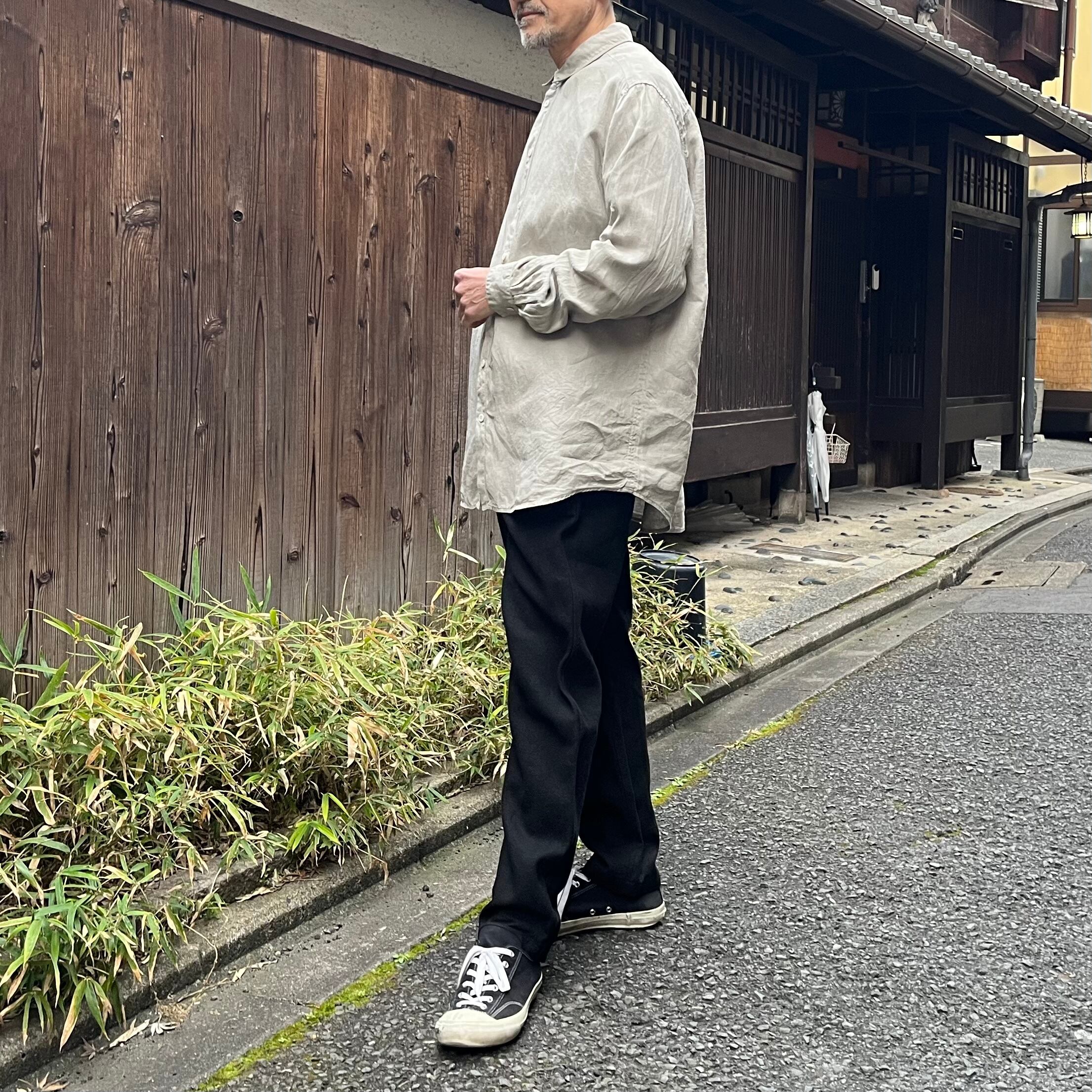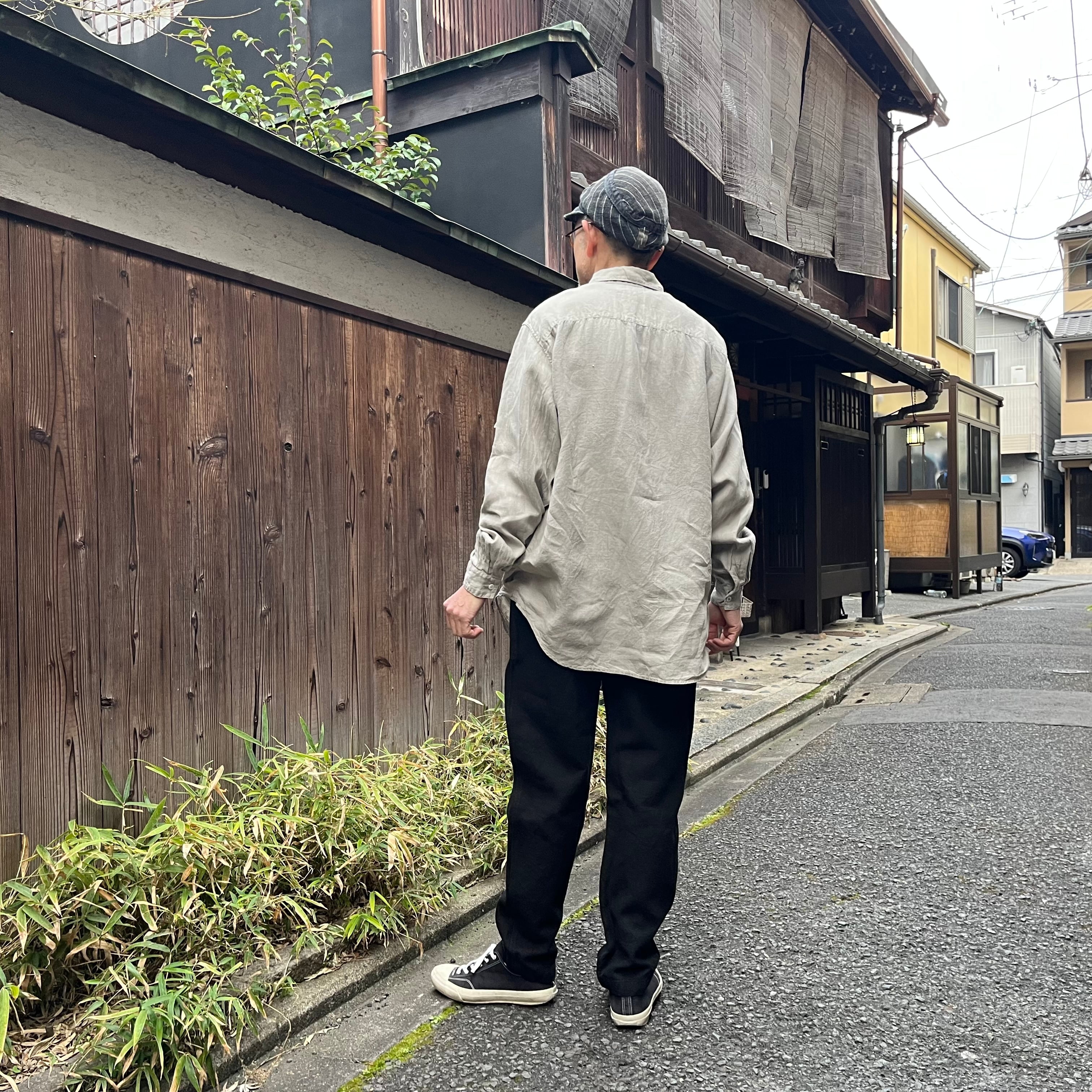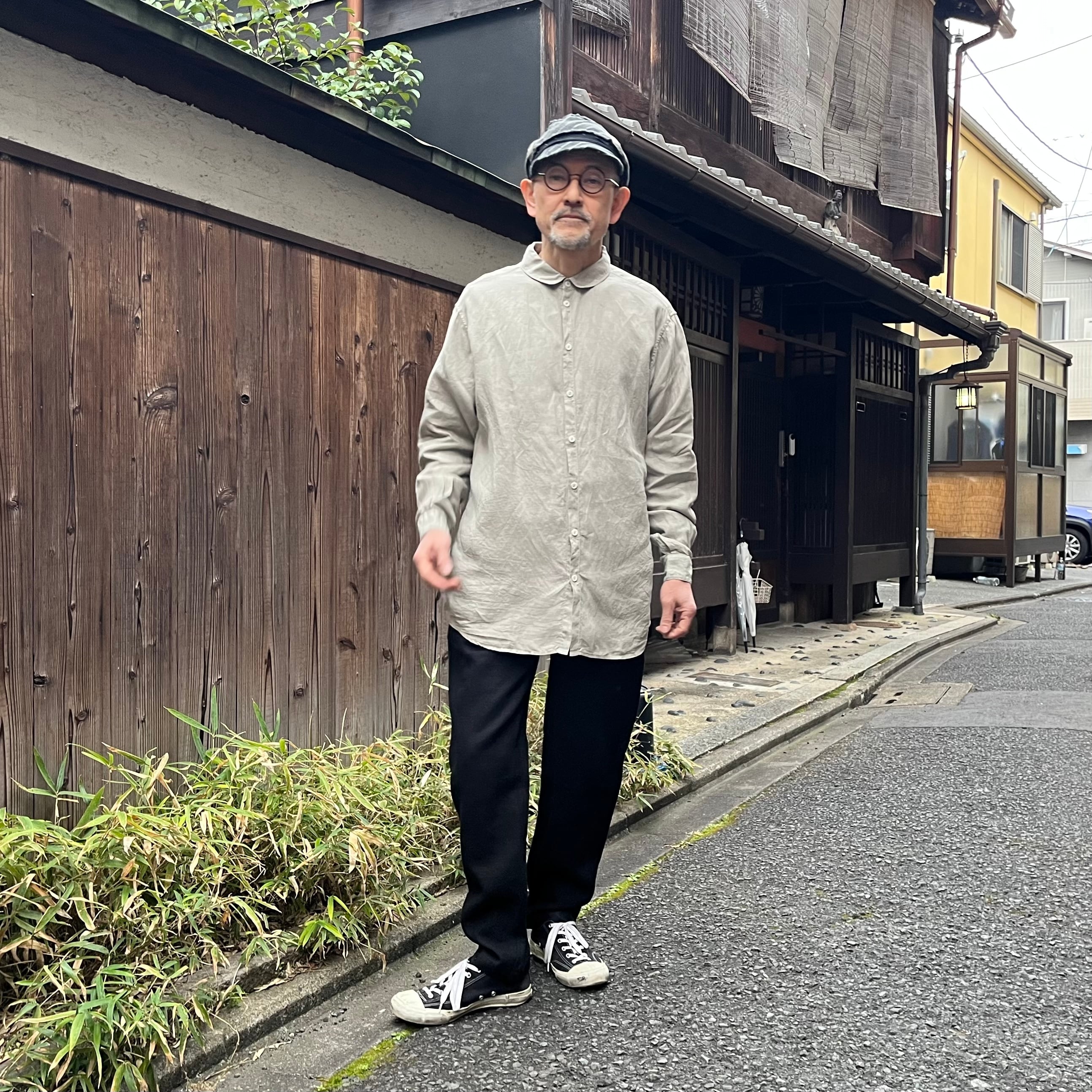 従来の襟付きの大麻シャツを着丈や身幅をゆったりとさせた大麻シャツ大。