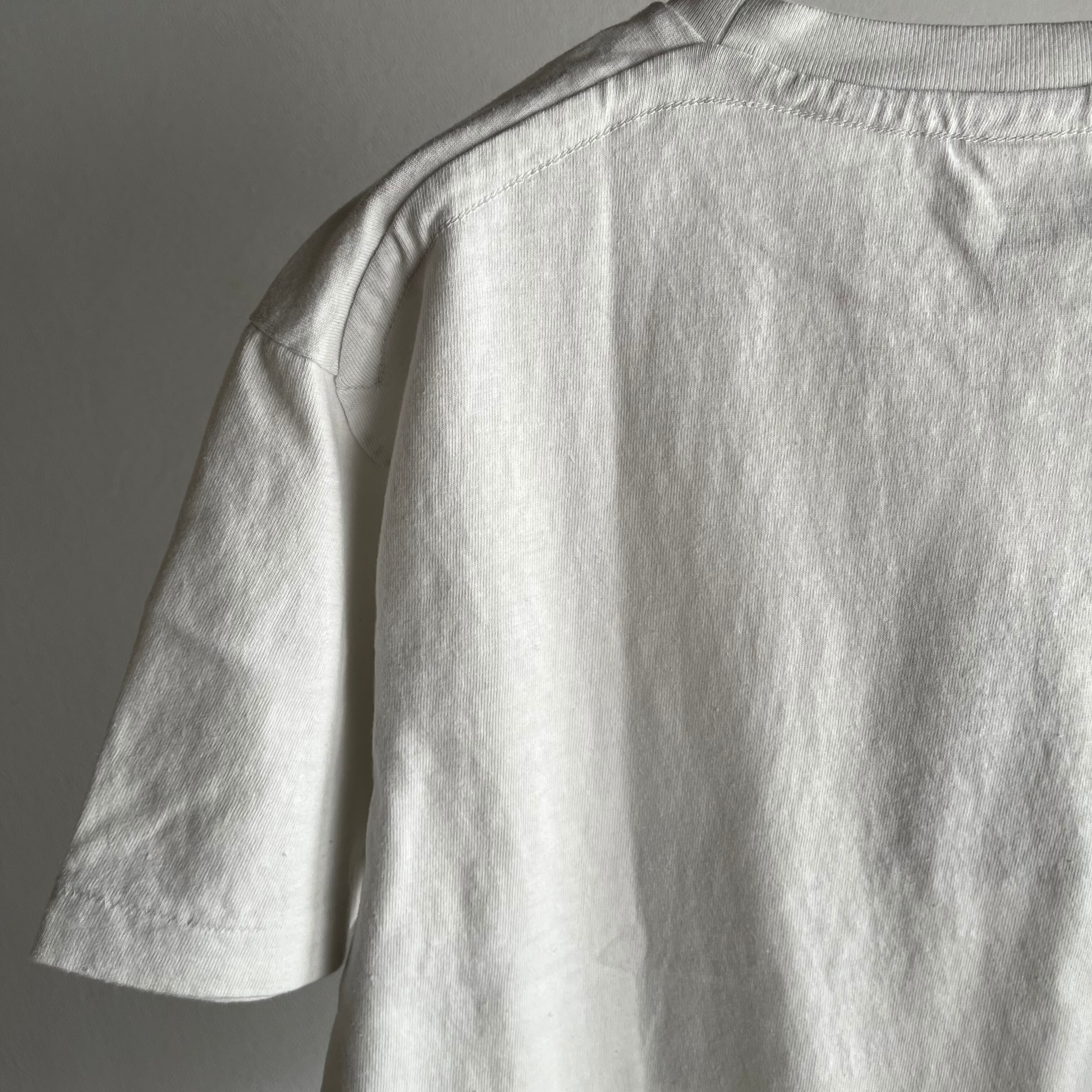 YAECAの定番的半袖Tシャツ。淡い色ながら草木で染めたニュアンスカラーは