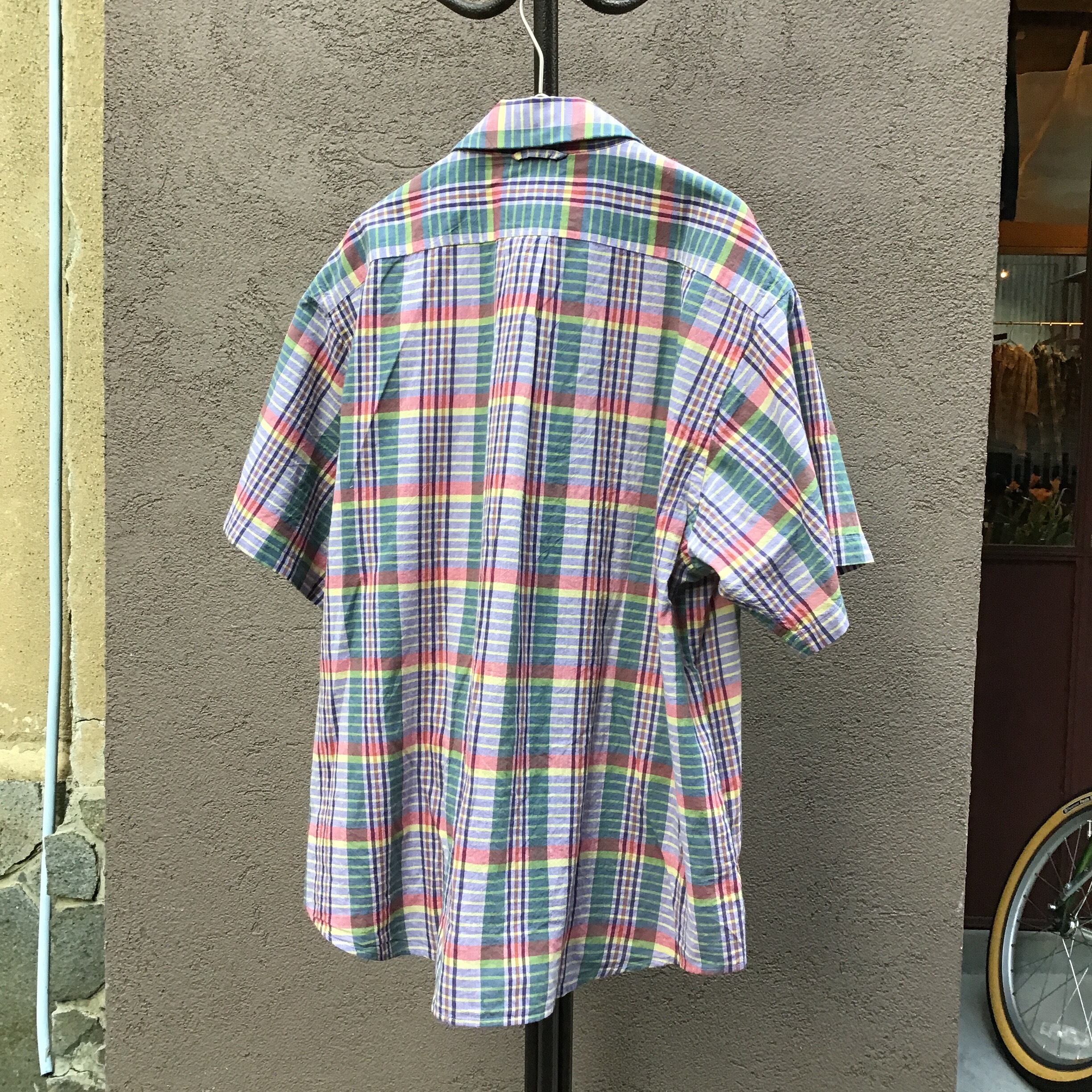 マドラスチェックのゆったりした身頃のワイドシャツ。