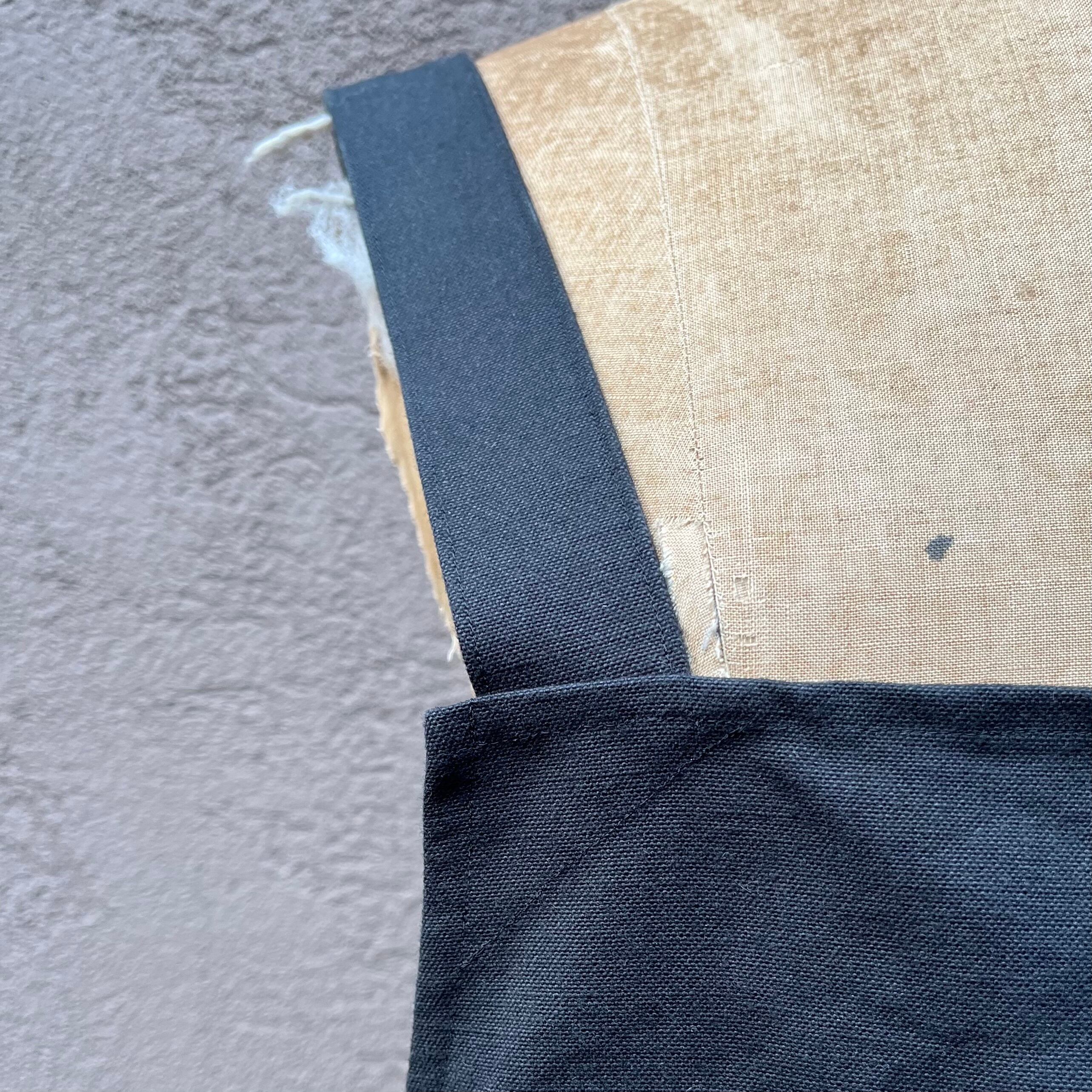 草木染のダークネイビー色の生地で作られたエプロンです。