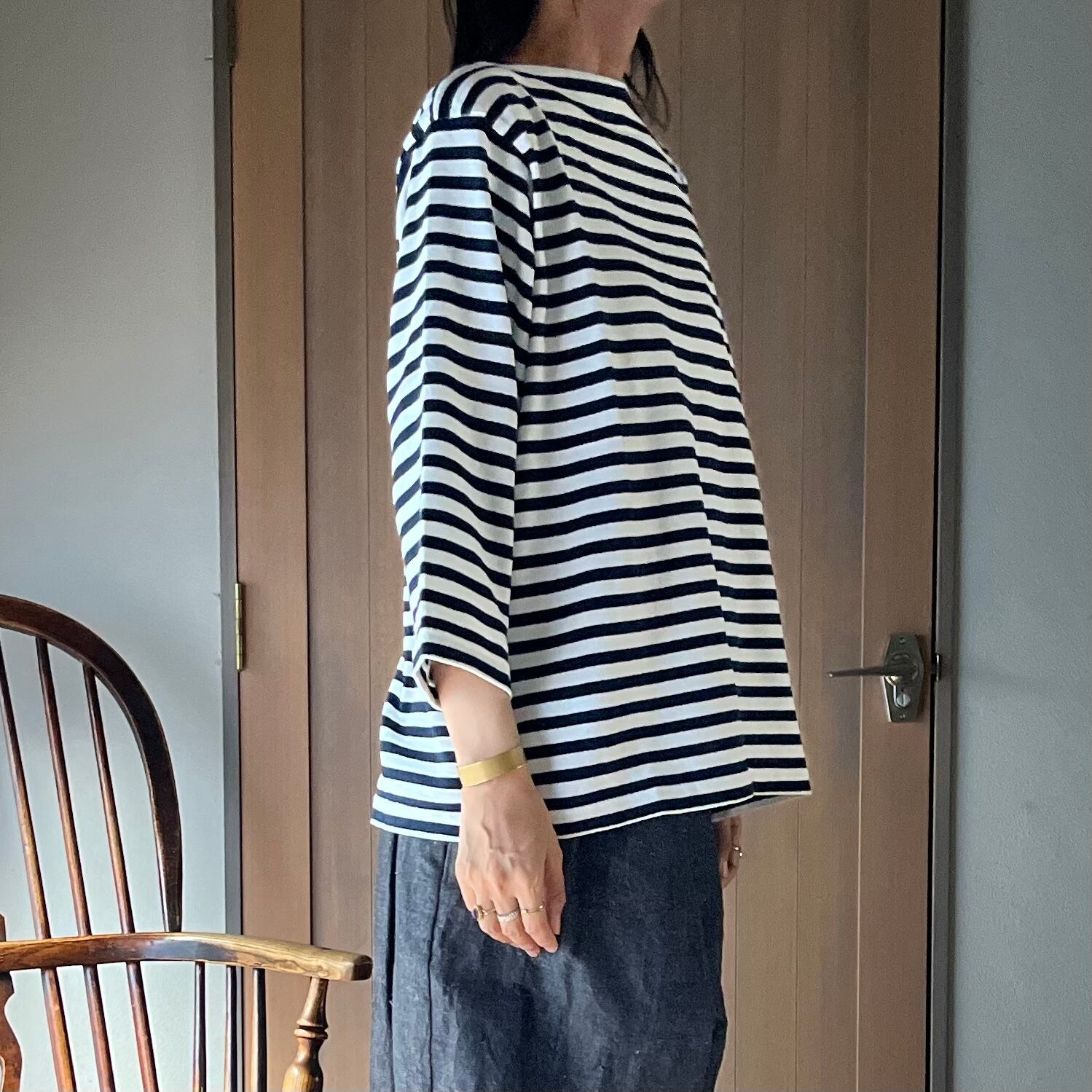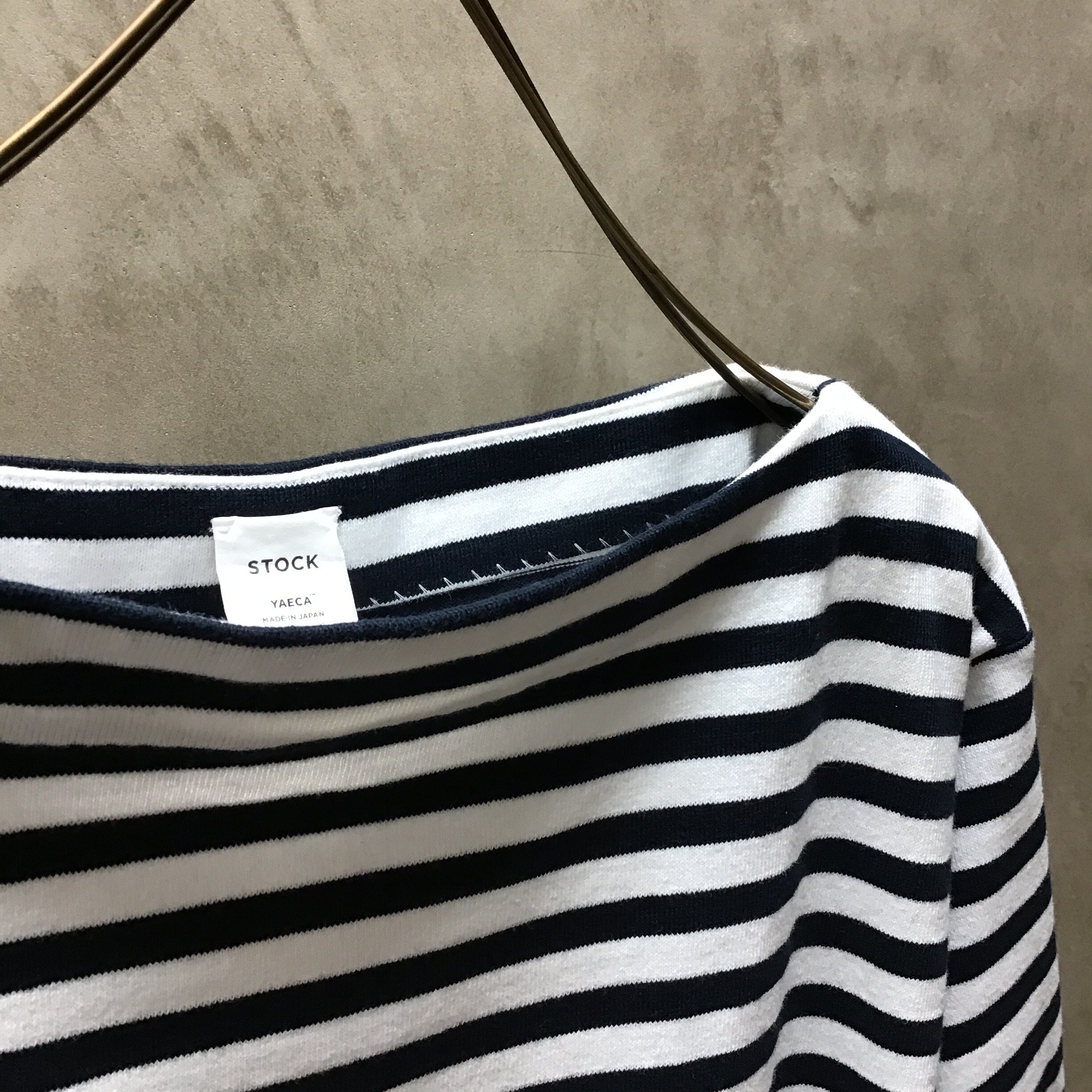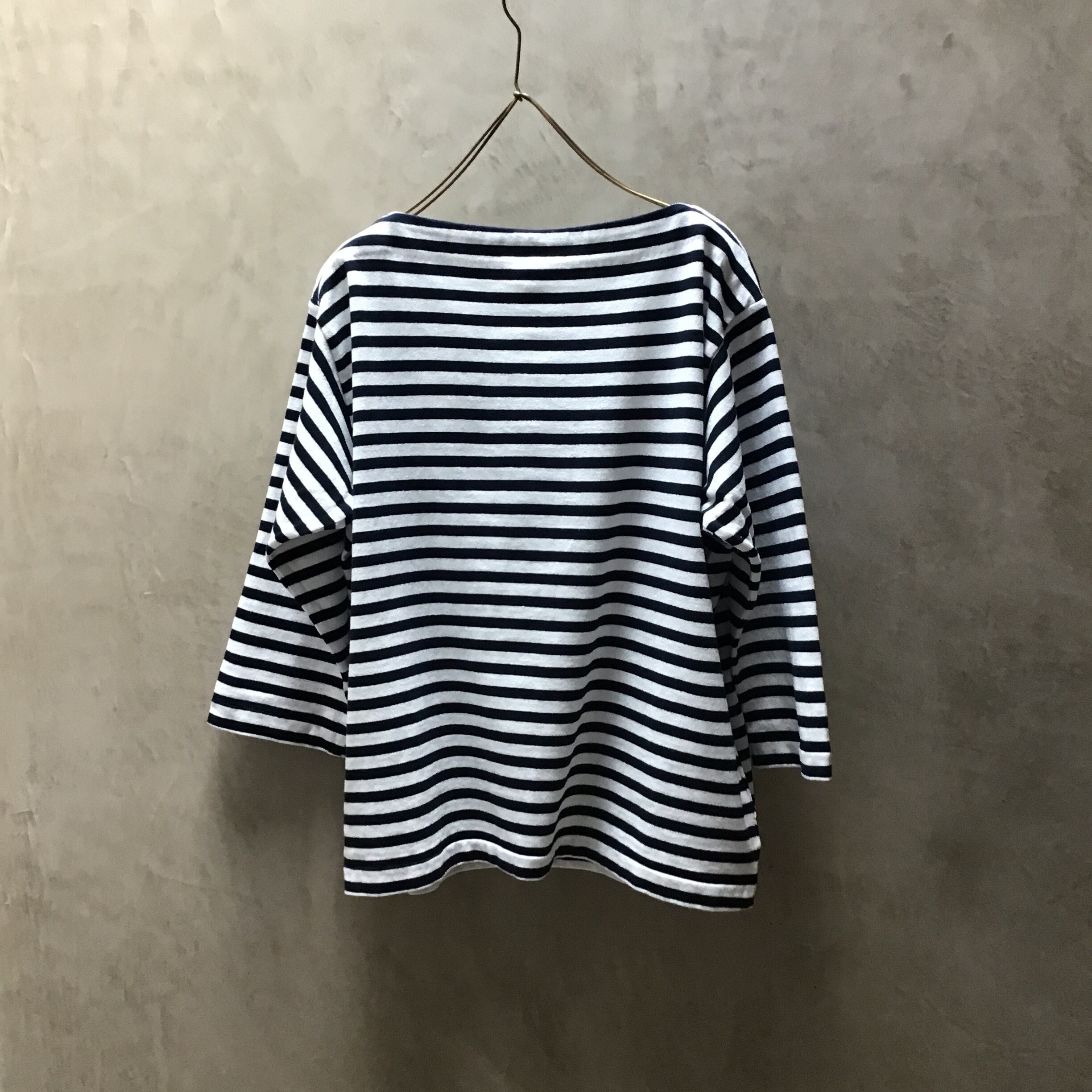 YAECA / ヤエカ バスクシャツ 3/4 sleeve Navy Off white bold st #83041