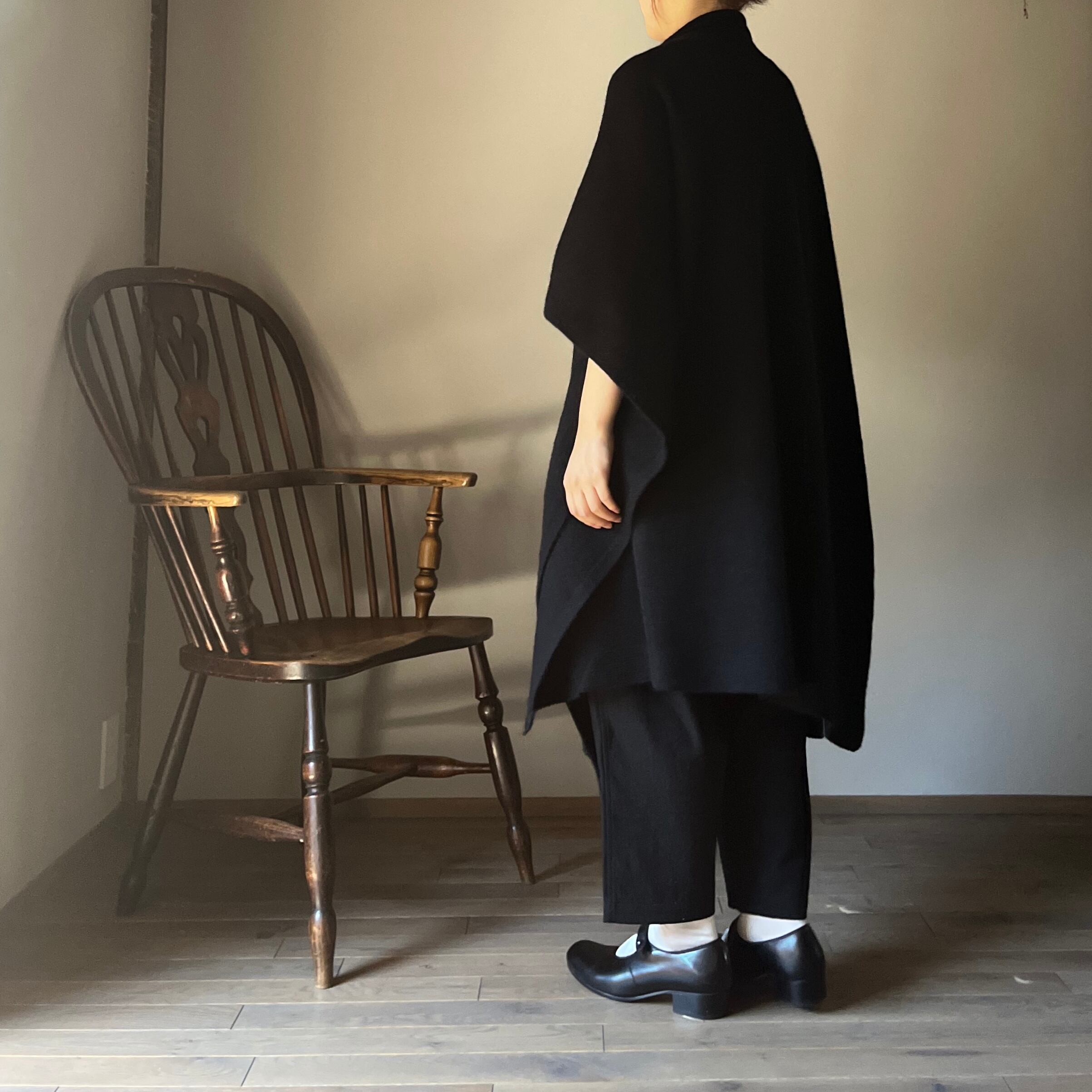 繊細で滑らかなベビーアルパカと柔らかなウールの混紡糸を編み立てています。異なる2色の糸を2本撚り合わせた杢糸を使用することで、色の奥行きを表現しています。ベビーアルパカとウールの双方が優れた保温効果を持ちながら、比較的軽量に仕上がっています。