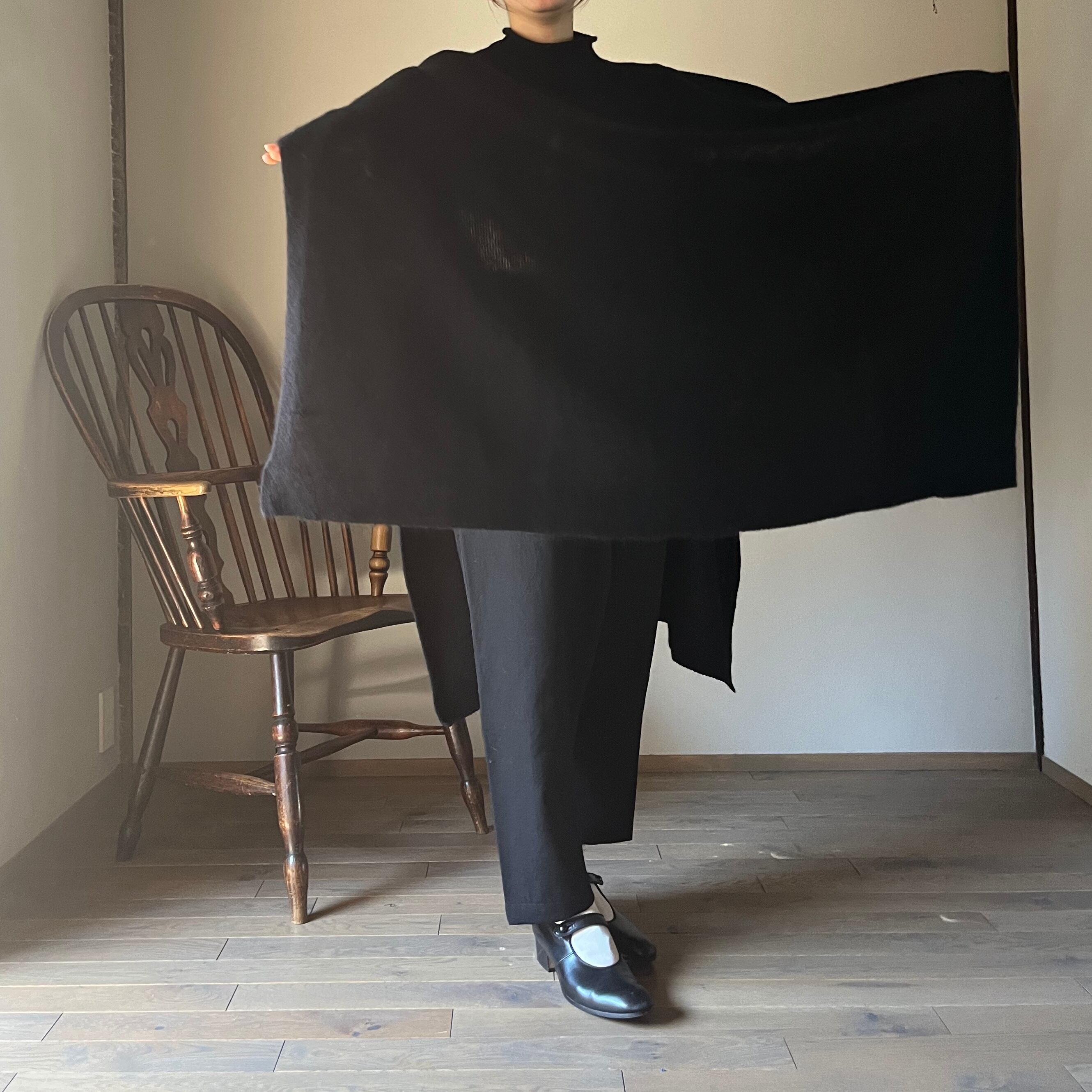 ベストのような重ね着が可能なデザインで、温度調整もし易いのが特徴です。その為、様々な用途に合わせてご利用いただけます。また、首に通したまま服を回転させることで、さまざまな表情を楽しむことができます。生地の端同士を結んでプルオーバー風のスタイルにすることも可能で、ストールとしてもお使いいただけます。