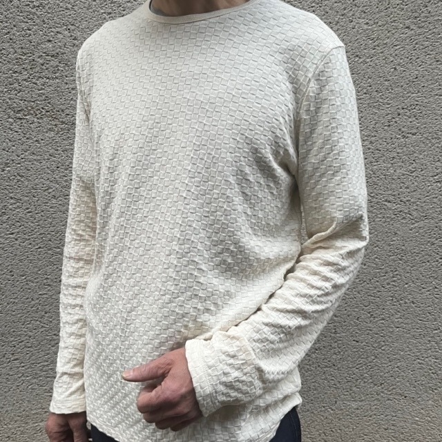 THE HINOKI / ザ・ヒノキ ORGANIC COTTON CHECKER CREW NECK T-SHIRT / チェッカークルーネックTシャツ#23W-30 NATURAL