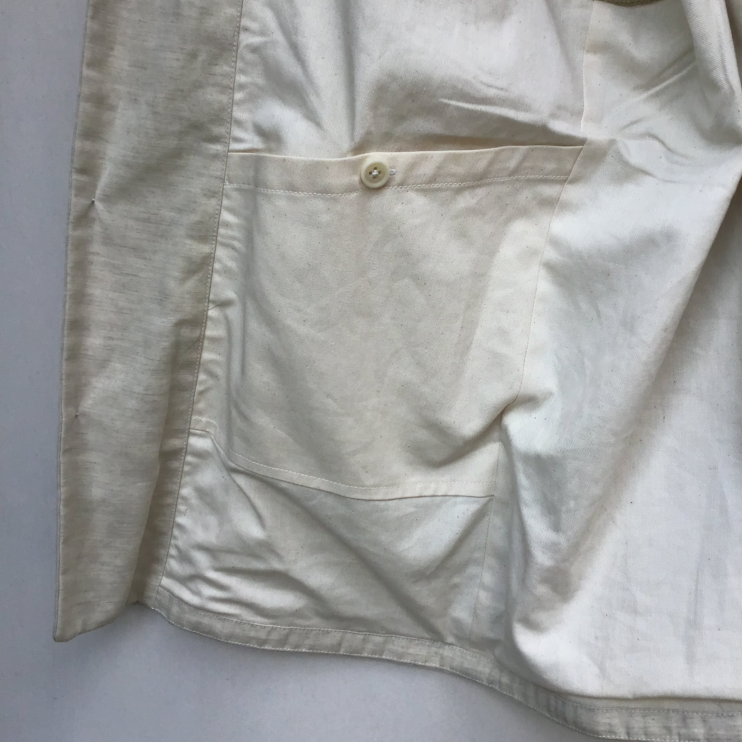 コットンの生成りの裏地がついていて、幅広いシーズンに着ていただけます。