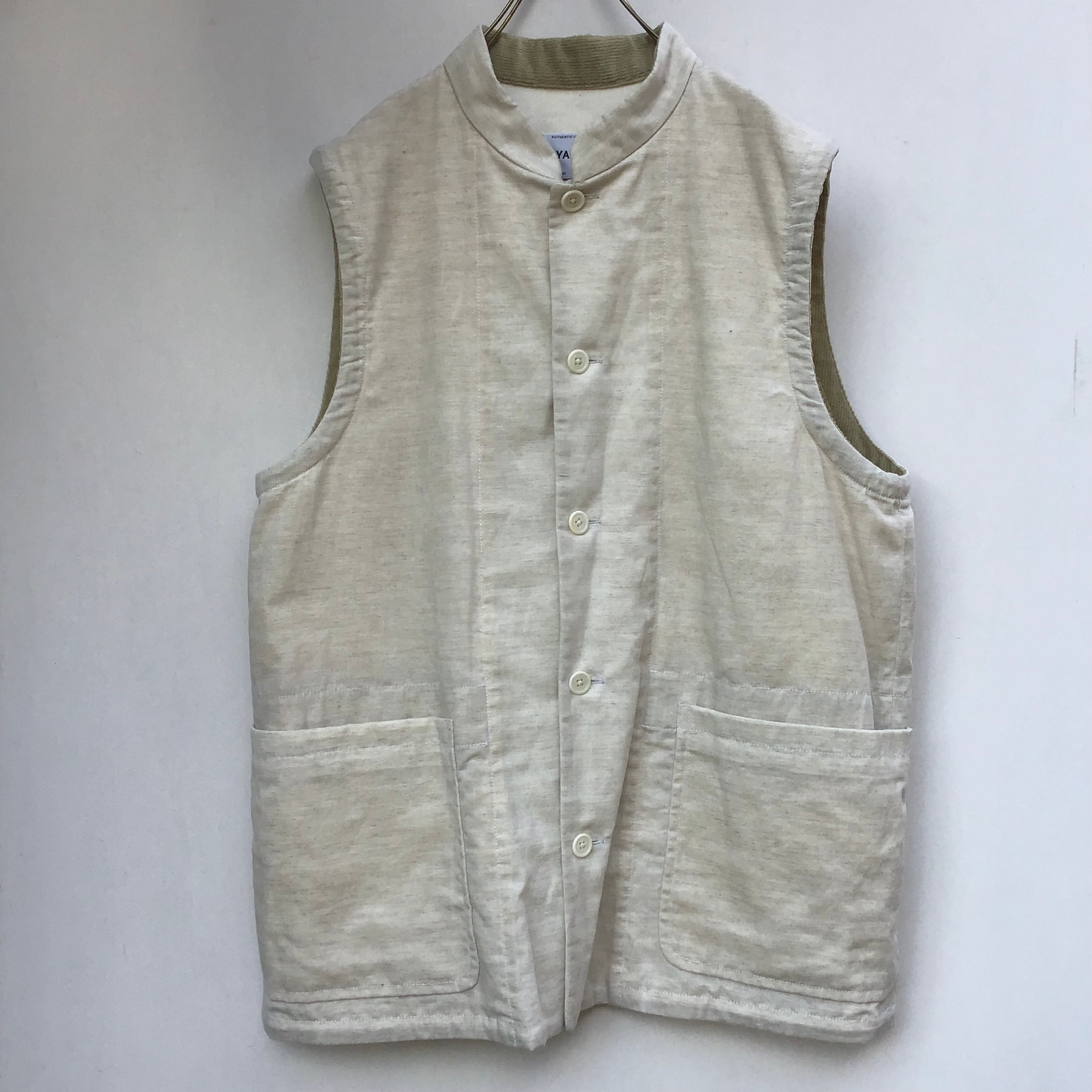 YAECA/ヤエカ コットンリネン スタンドカラーベスト 生成(オイルド) #43558 unisex /Natural(Oiled)