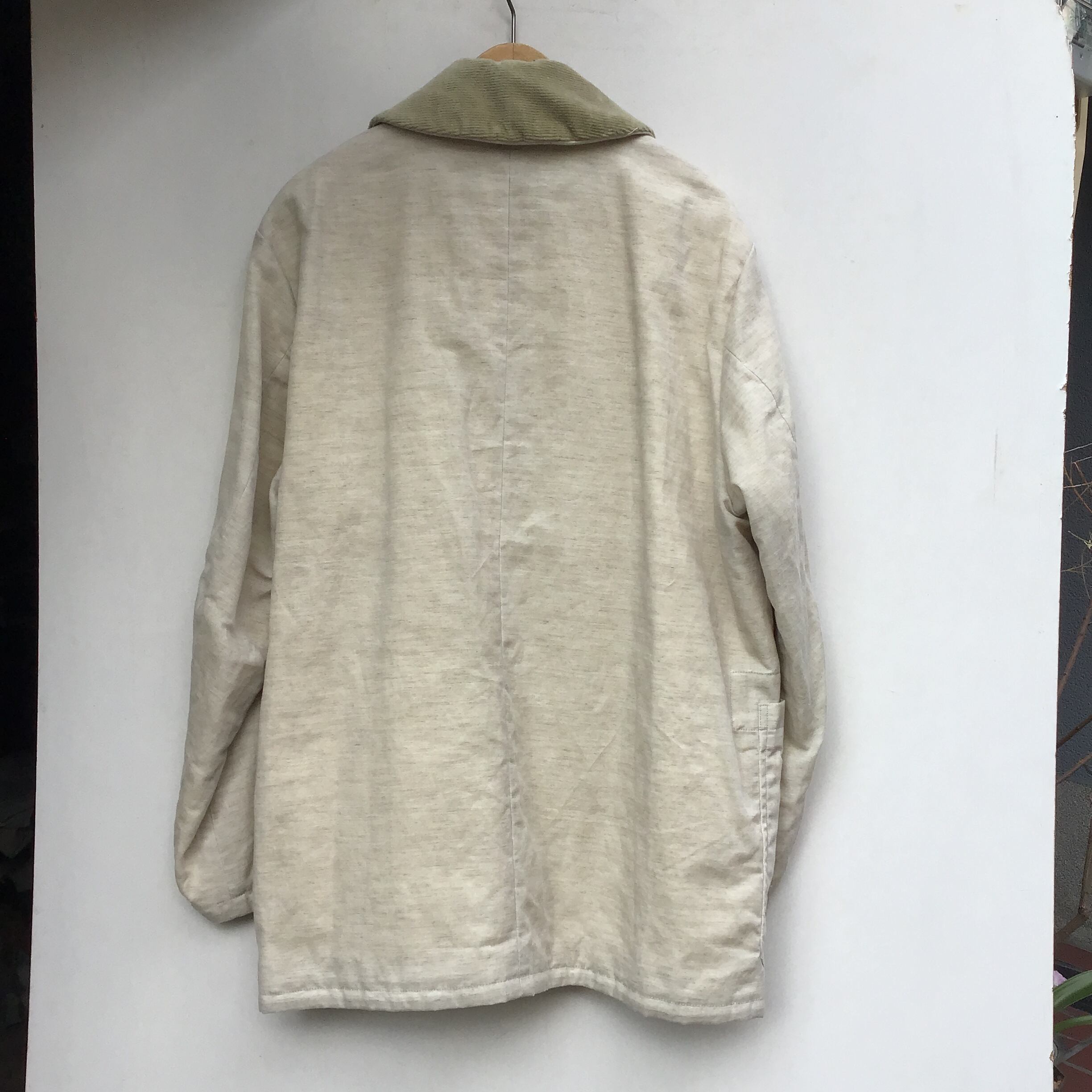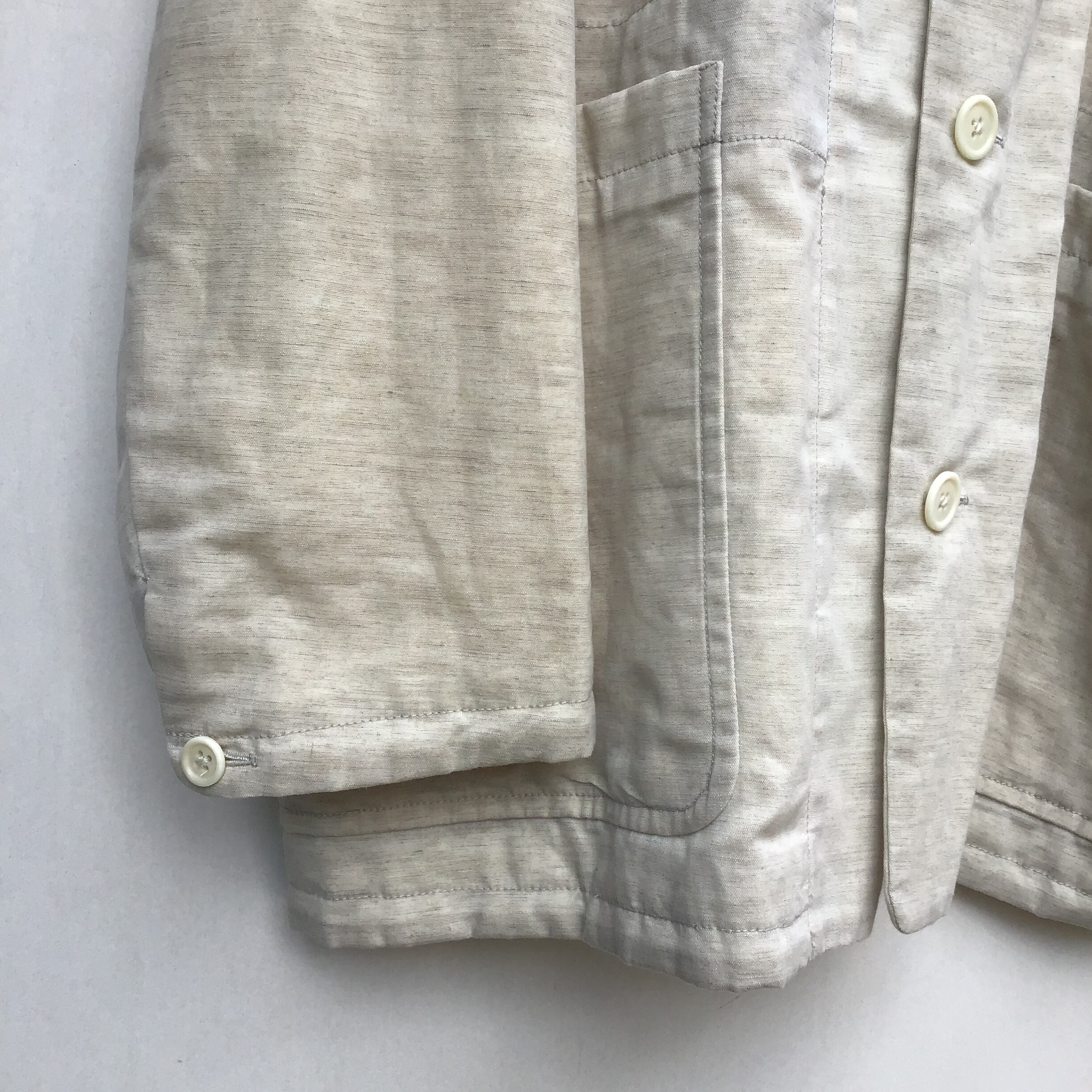 コットン、リネンのオリジナルファブリックにオイルド加工を施した一着。